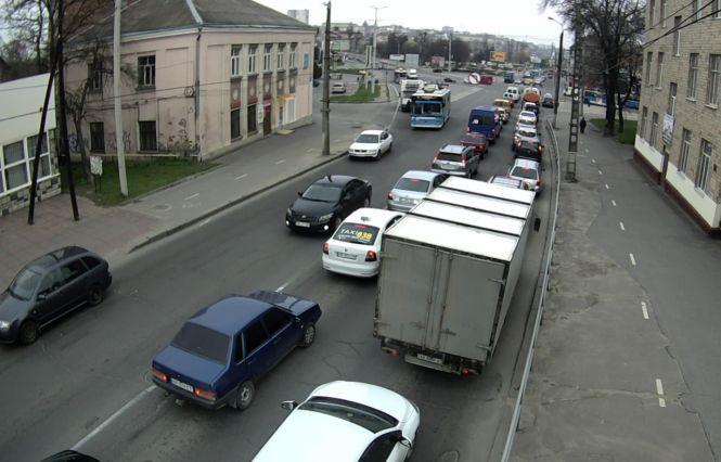 08.39 год — затор на вулиці Брацлавській перед перехрестям з проспектом Коцюбинського та вулицею Київською.