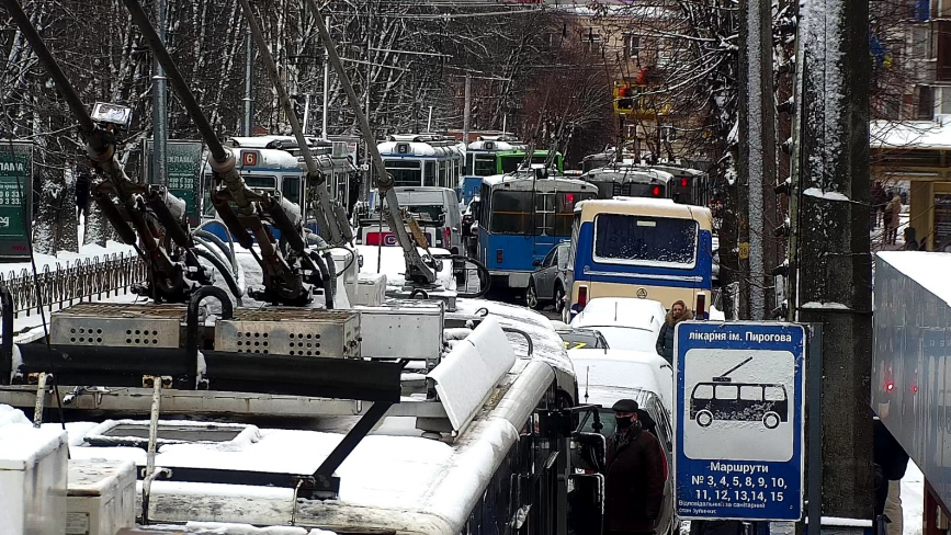 - Сьогодні, 31 січня, рух у центрі Вінниці паралізувався. На Соборній сталася аварія, а на Замості пошкодилась контактна мережа.