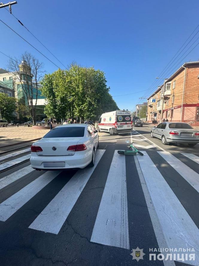 - За попередньою інформацією, водійка Volkswagen не надала переваги жінці на електросамокаті, яка переїжджала пішохідний перехід.