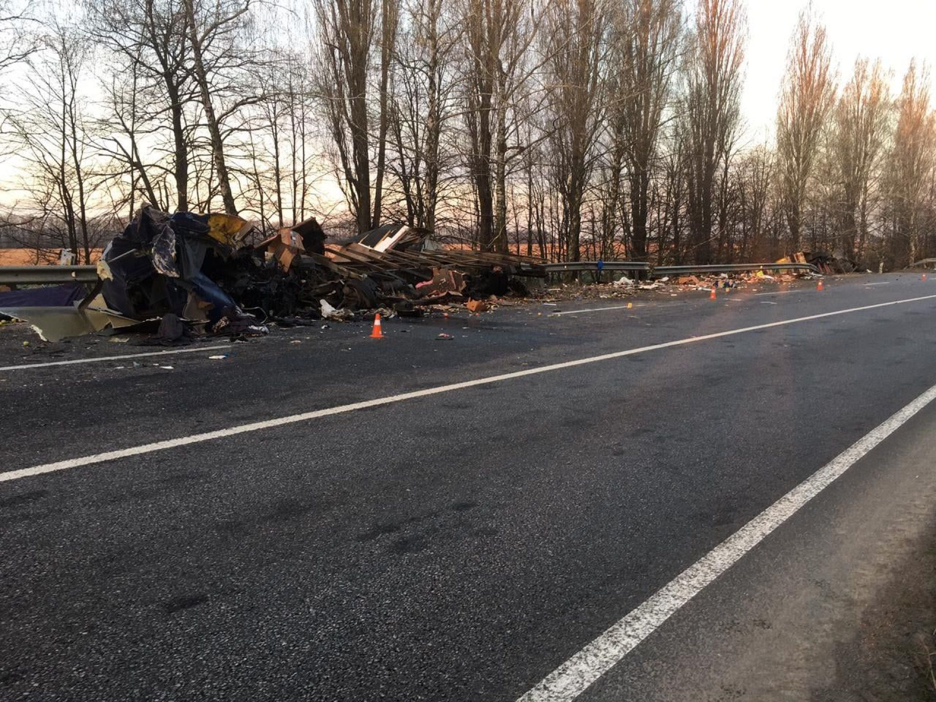— Сталося лобове зіткнення двох вантажних автомобілів «Мерседес» та «ДАФ». Внаслідок аварії обидва водії загинули на місці події. Пасажир «Мерседесу» з тілесними ушкодженнями госпіталізований, — йдеться у повідомленні поліції. — За інформацією слідчого управління ГУНП у Вінницькій області, проведеними на місці події першочерговими слідчими діями встановлено, що водій ввантажівки «ДАФ» виїхав на смугу зустрічного руху, внаслідок чого сталося лобове зіткнення двох автомобілів.