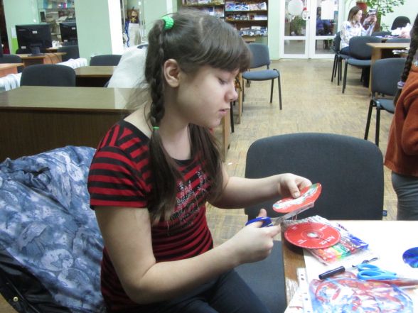 В центральній міській бібліотеці імені Бевза сьогодні, 26 грудня юних відвідувачів вчили робити прикрасу на ялинку з використаних дисків. «Майстерні Діда Мороза» працюють в бібліотеках міста до 14 січня з 15 до 17 години дня.