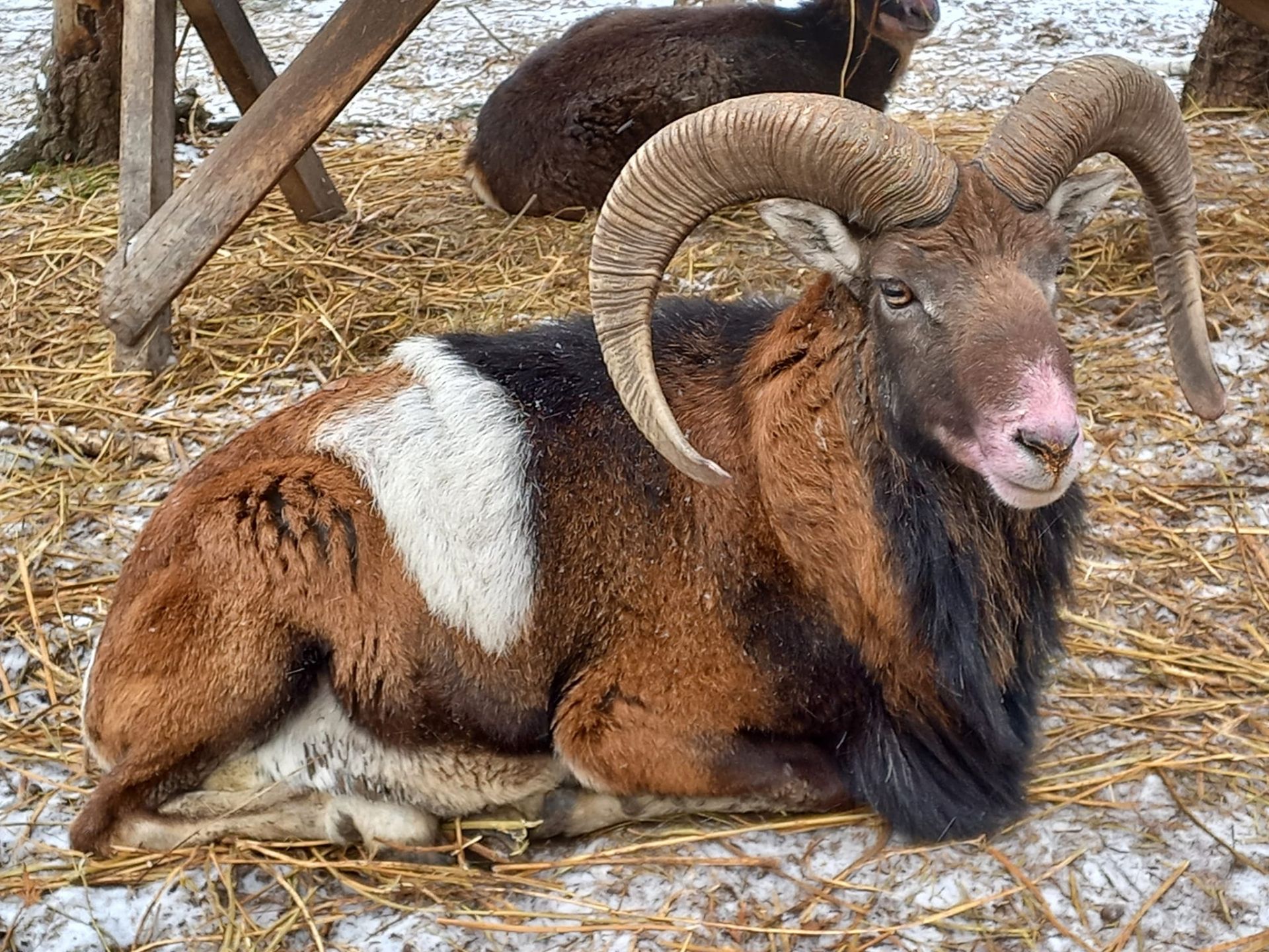 Біля паркану в очікуванні гостей, вже за звичкою, барани чотирирогі.