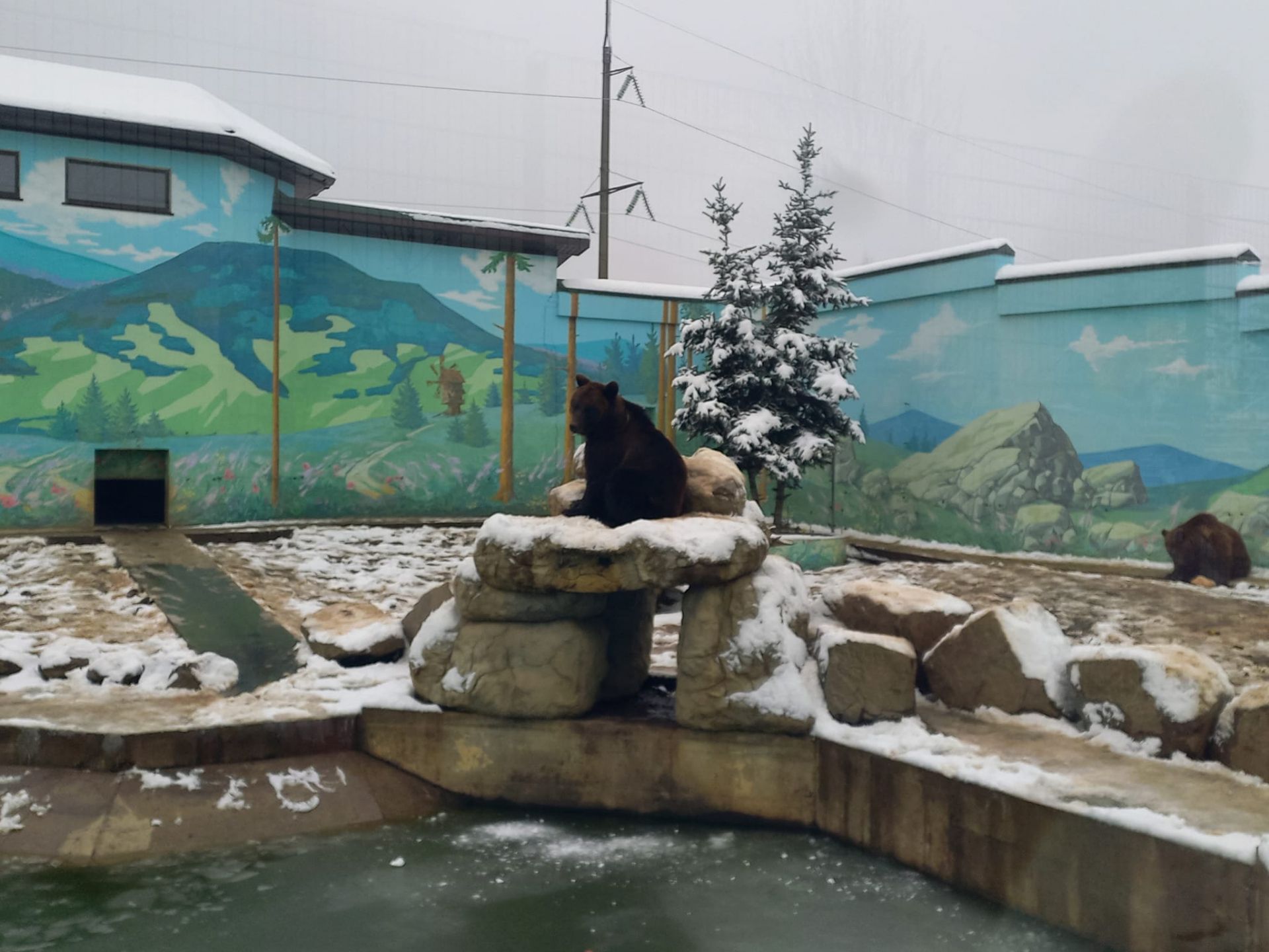 У вольєрі поряд свою першу зиму у Подільському зоопарку зимує молода рись. Дівчинка вже відчутно підросла і зміцнішала. З приходом холодів її хутро погустішало. Як на своїй історичній батьківщині відчувають себе полярні вовки. Їх шуби все більше набувають білосніжного відтінку.