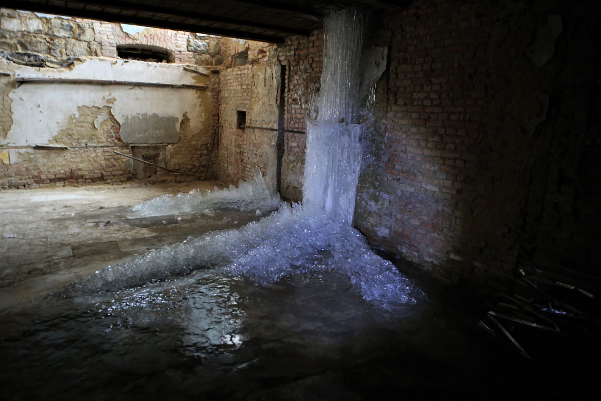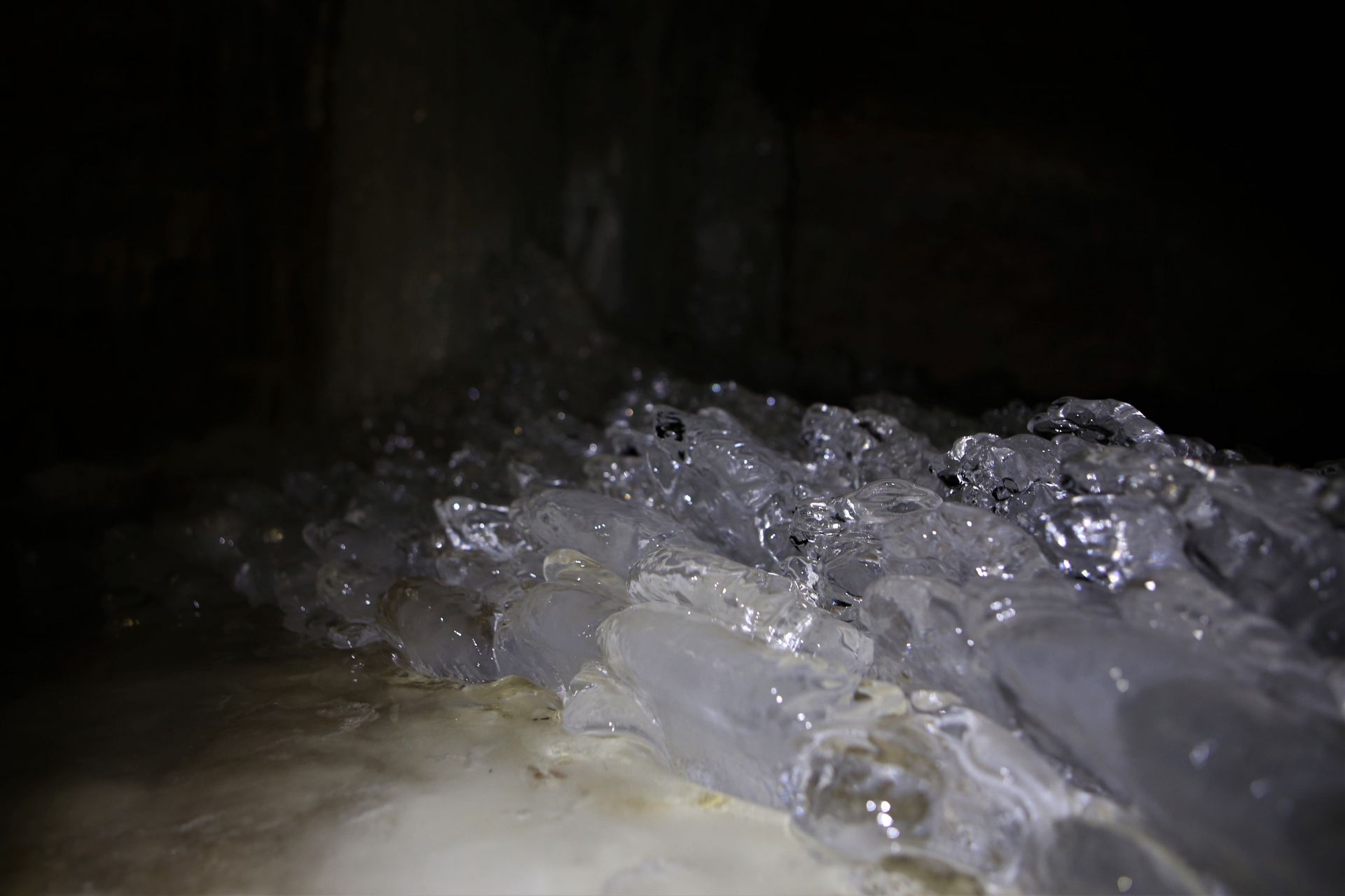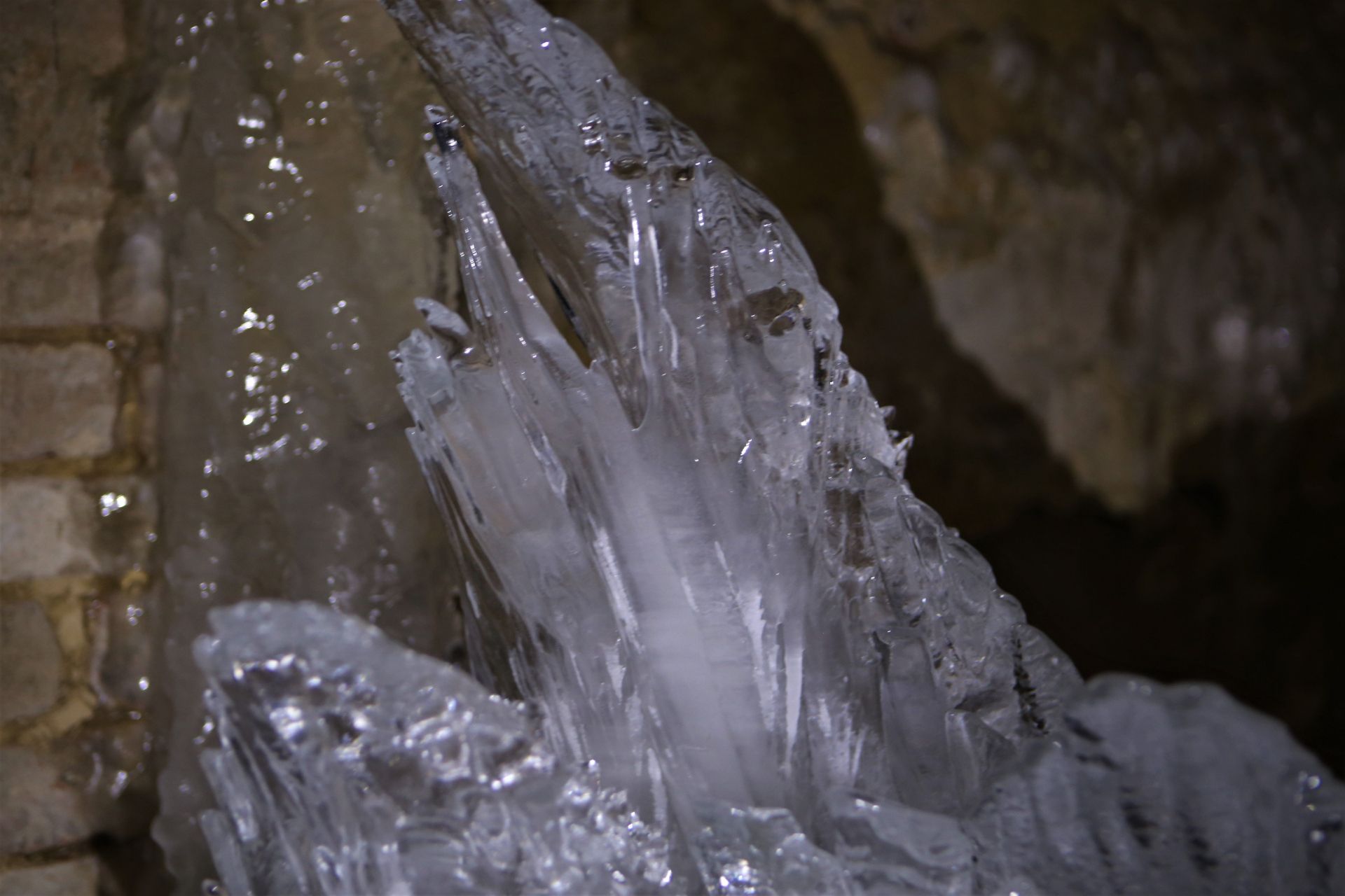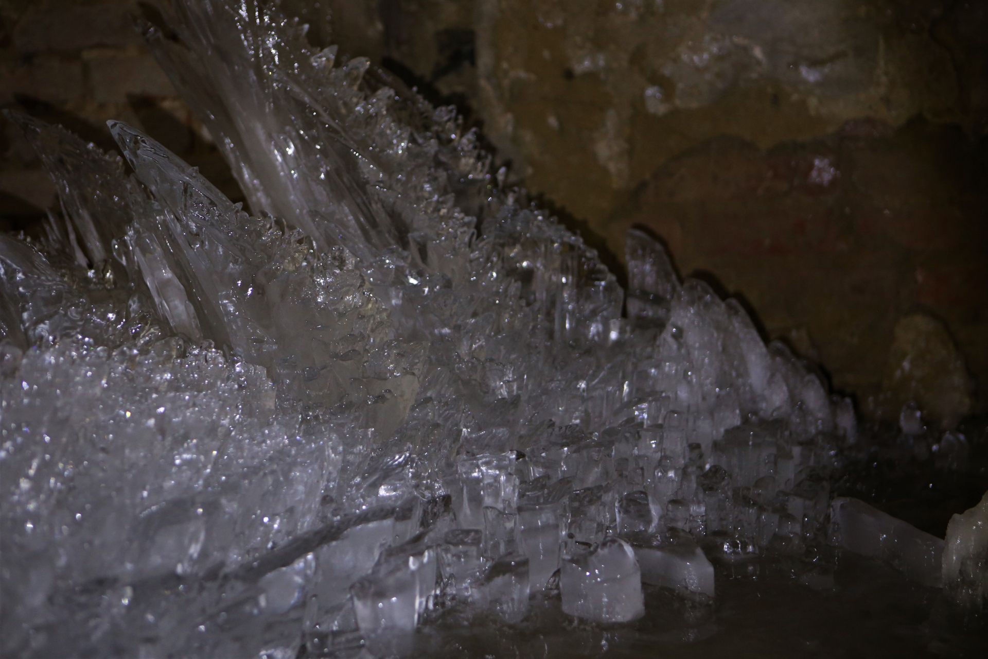 «Вода, просочившись через перекриття, при низьких температурах на цокольному поверсі формує такі цікаві утворення. Підсвічені виглядають просто казково», — пише фотограф.