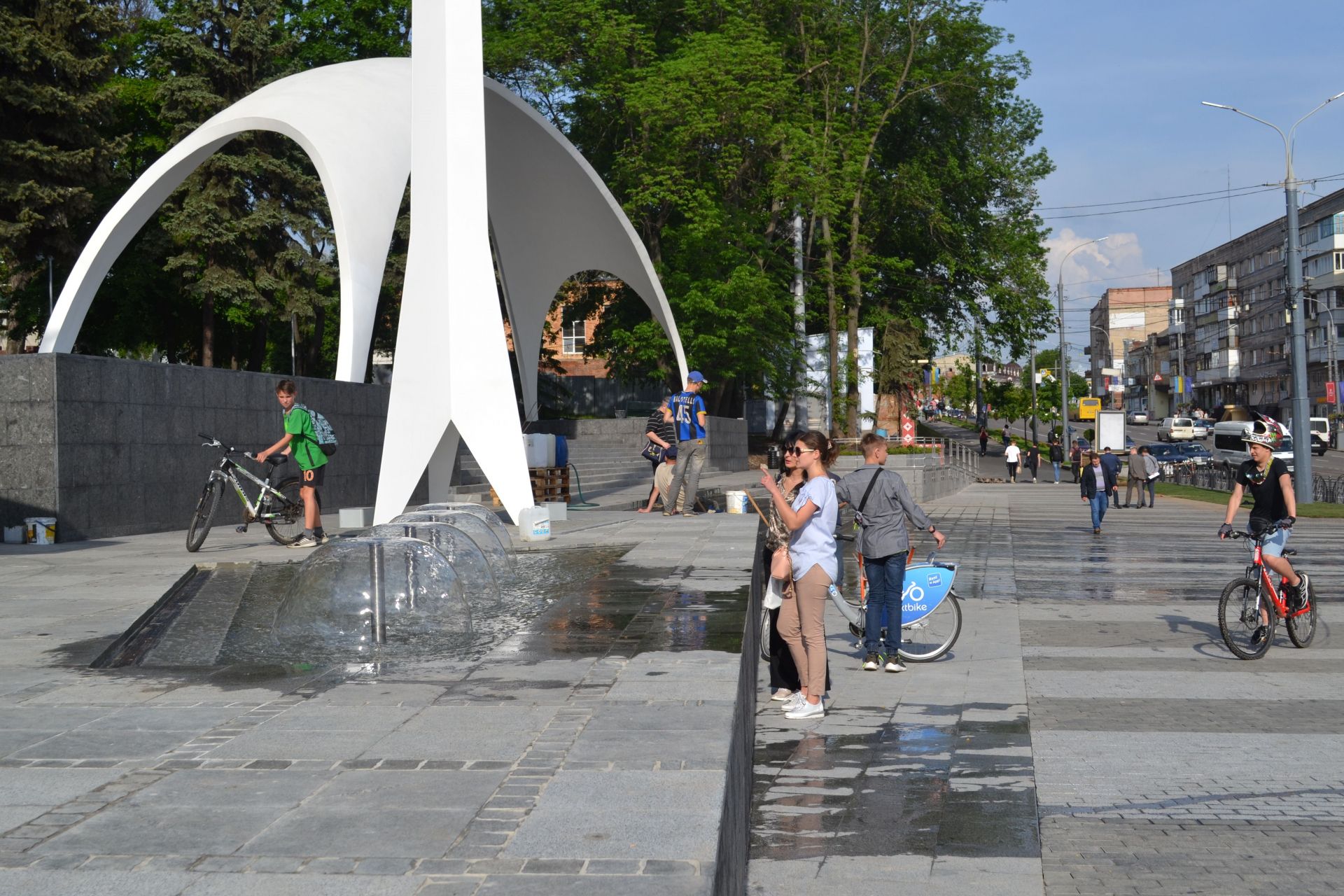 Сьогодні протягом дня робочі «причепурювали» площу перед входом до центрального парку. Там раніше встановили нові лавки, які розмістили безпосередньо на сходах. Крім того, з'явився новий пандус. Днями встановили новий невеликий фонтан, де вже збираються діти та фотографуються вінничани. Не складно припустити, що у спекотну погоду у цьому фонтанчику опиниться чимало дітей.