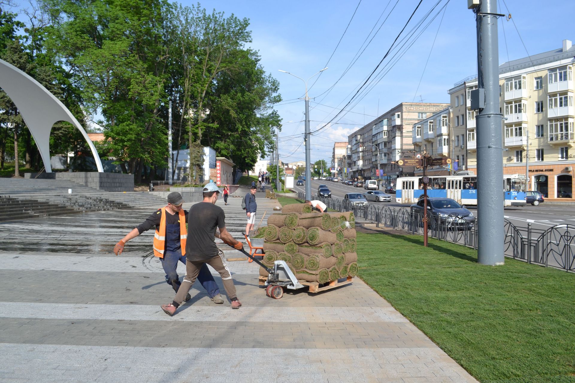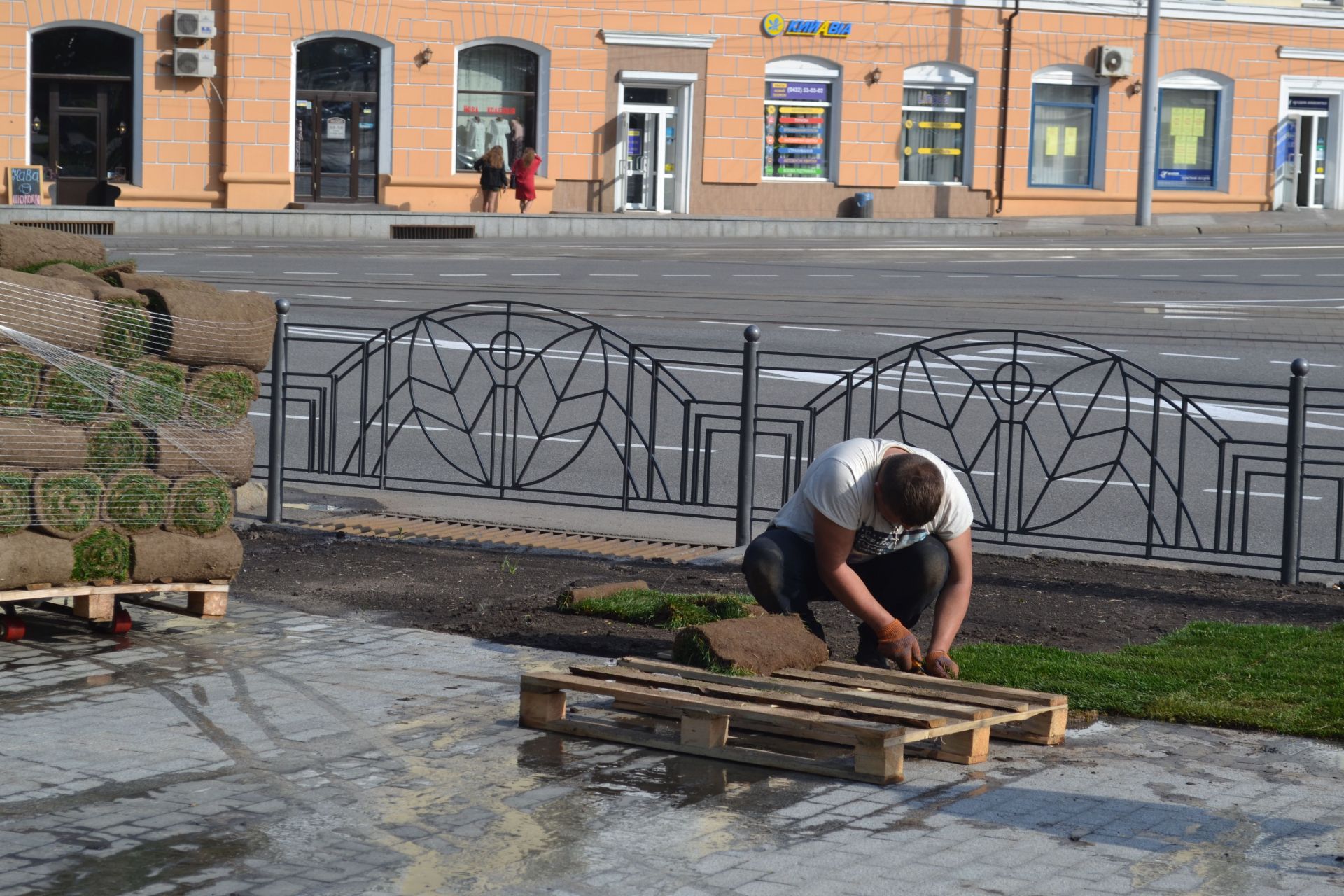 Крім того, навпроти робочі викладають газон. Не сіють та вирощують, а саме викладають невеликі трав'яні килими. Тому до Дня Європи площа буде повністю готова і всі охочі зможуть там відпочити і зробити красиві фото.