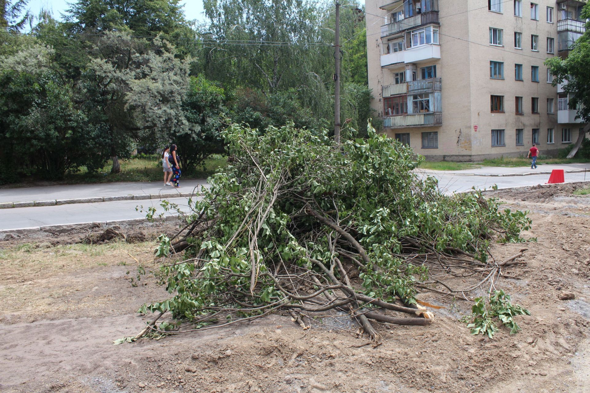 Рубати дерева на третій черзі Космонавтів почали ще в середині червня. Незважаючи на те, що міські чиновники обіцяли їх залишити, а зрубати тільки «аварійні».