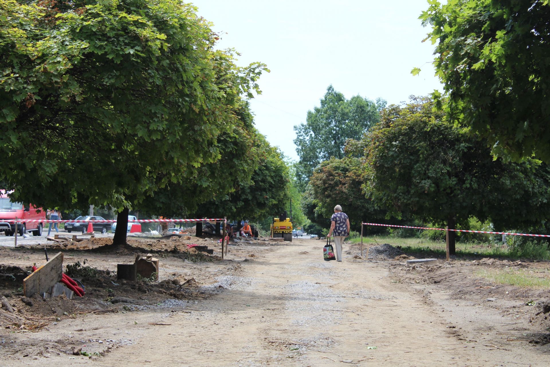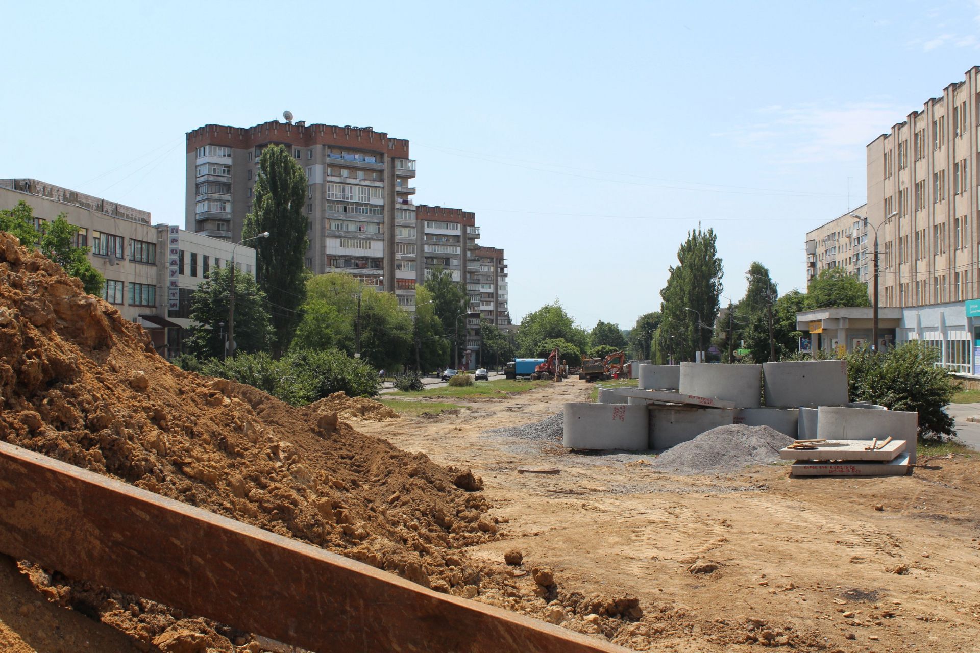 А як тепер виглядає третя черга проспекту? Якщо коротко, то її можна назвати «алеєю» пеньків. Із 80 дерев, що раніше тут росли, залишилося не більше 20. Серед них клени, одна ялинка та кущі самшиту. Будівельники, що працювали на алеї, побачивши журналіста, одразу почали «заспокоювати».