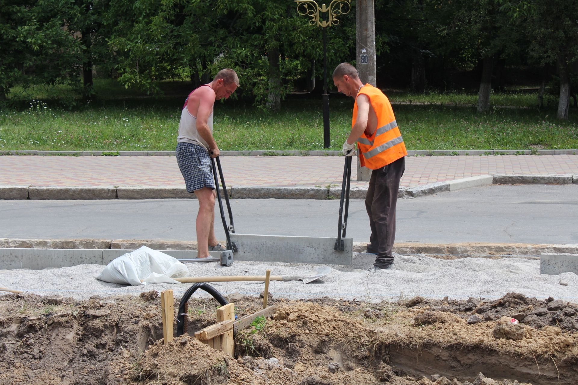 — Усе буде, все! Найгарніший проспект зробимо. Тут велодоріжку облаштуємо, а там де ви стоїте, буде бруківка. А ще лавки будуть класні. Он, щоб врятувати ті дерева, навіть дроти протягнули з іншого боку, — розказує Григорій. Але далі він каже, що не є «звичайним робочим». Тому його слова про сакури не треба сприймати всерйоз.
