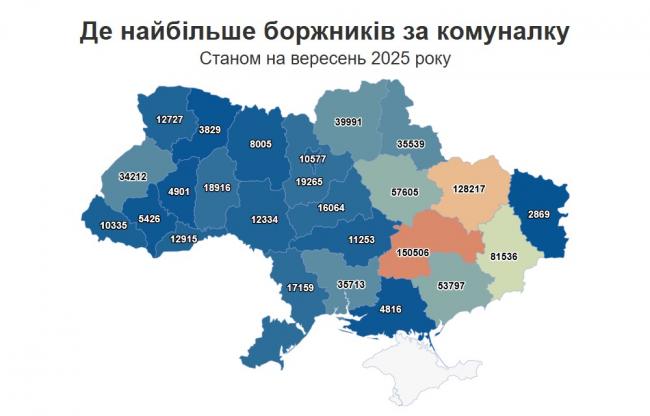 У Вінницькій області борги мають 12 334 мешканці. Найбільше боржників за комуналку в країні зафіксовано у прифронтових регіонах — Дніпропетровській, Харківській та Донецькій областях. Українці найчастіше заборговують за тепло та воду.