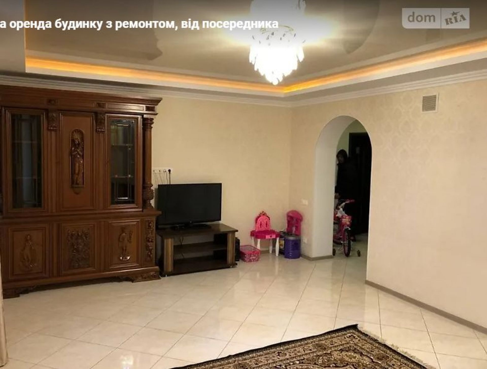 Чотири кімнати і, як йдеться в оголошені, авторський ремонт. На світлинах бачимо світлі кімнати, довгі коридори, прибудинкову територію з газоном, гараж.