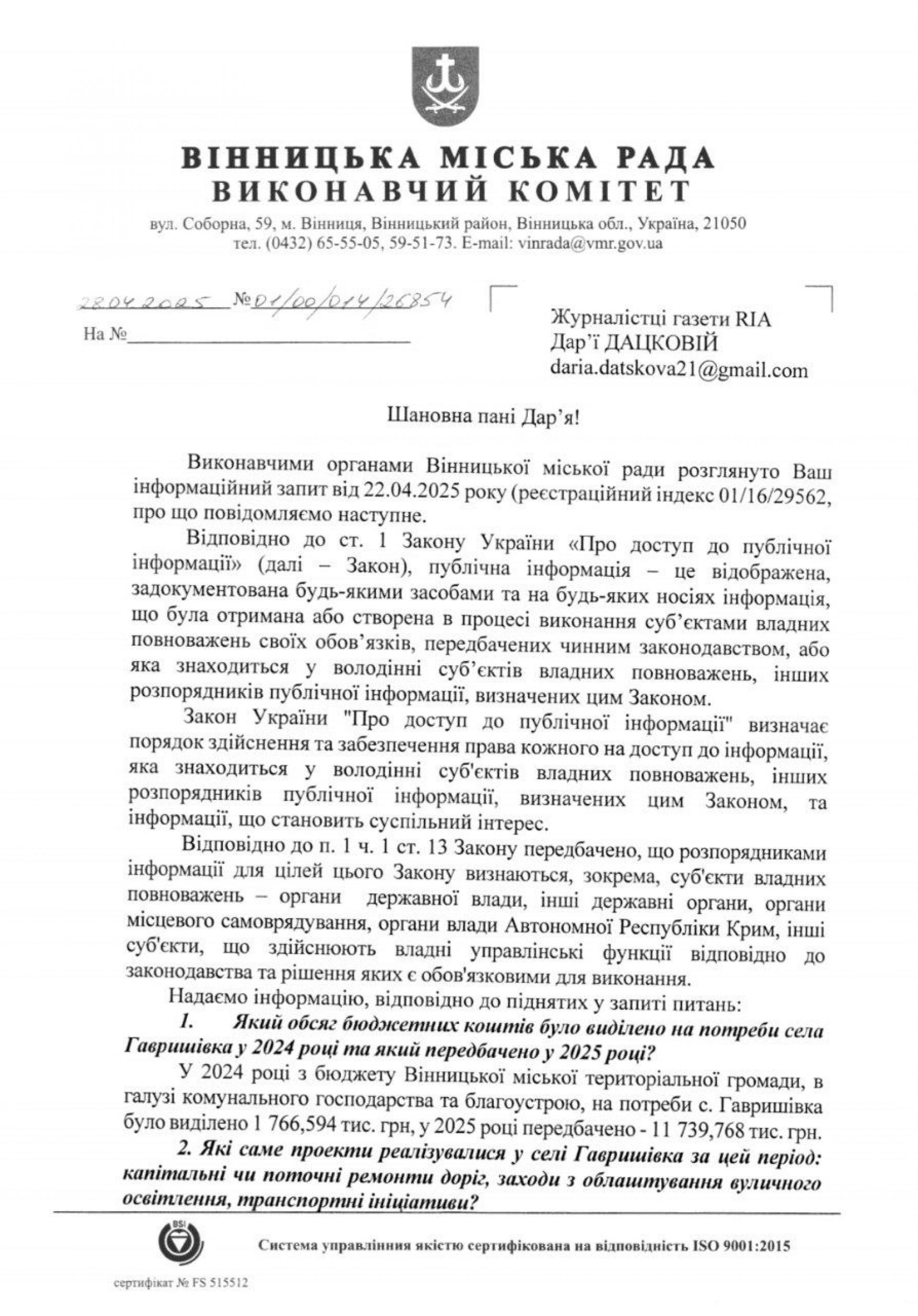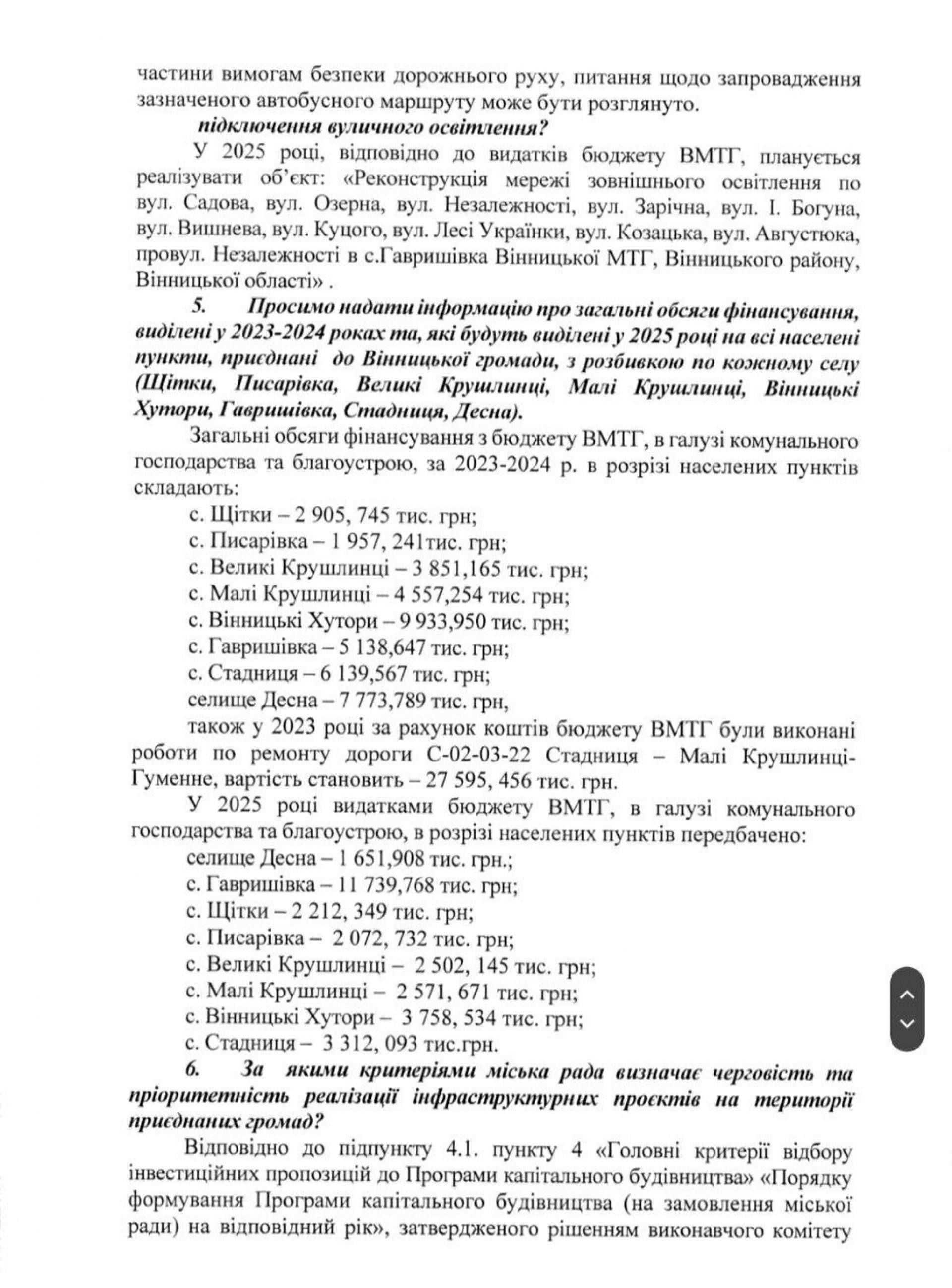- Вінницька міська рада надала відповідь на ключові запитання та розповіла про фінансування села.