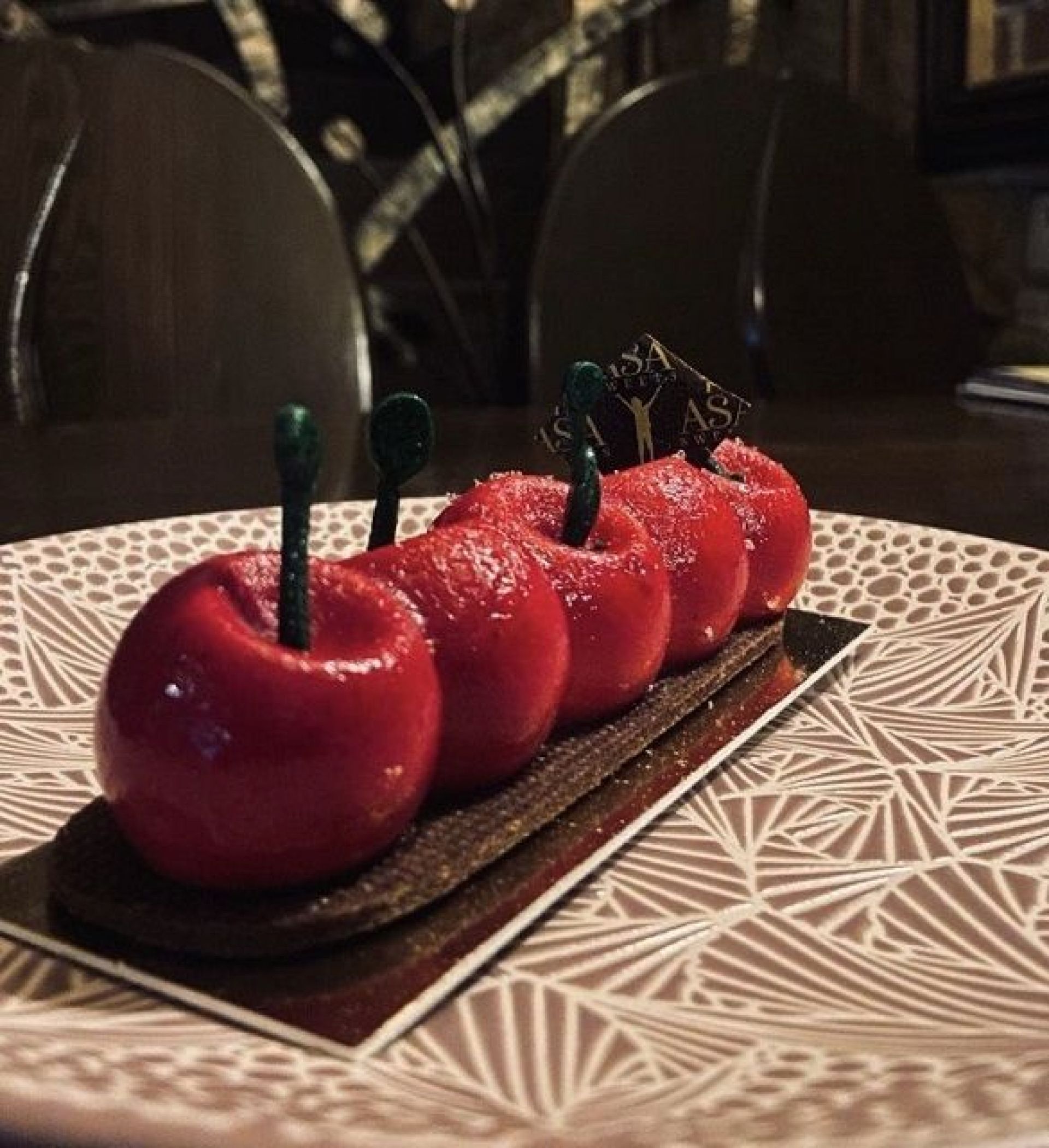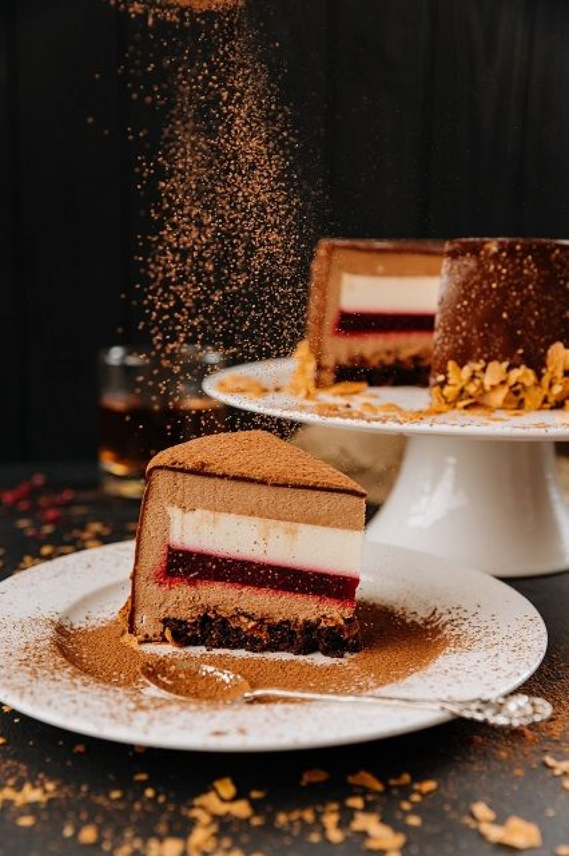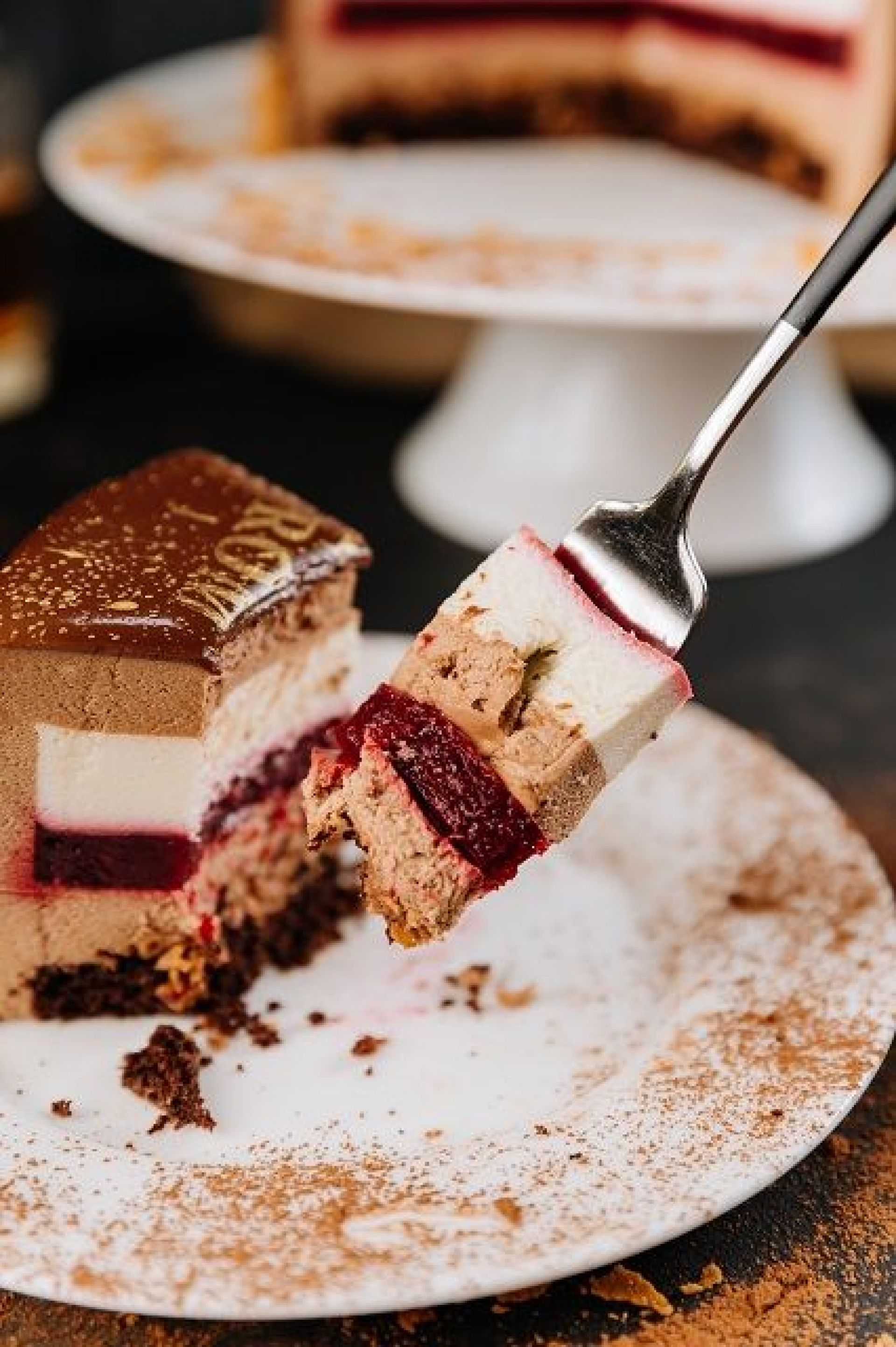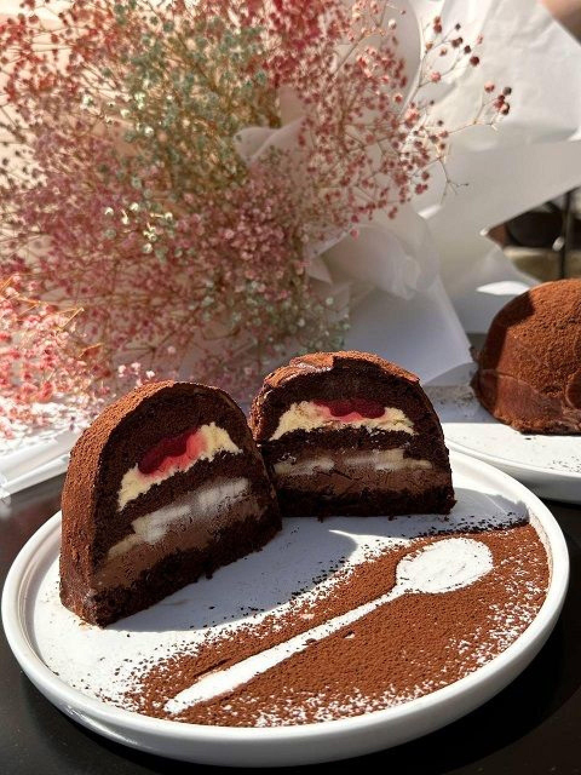 - Шоколад вишня - шоколадний бісквіт з крем-чизом, вишневим кюлі та вишневим мусом.