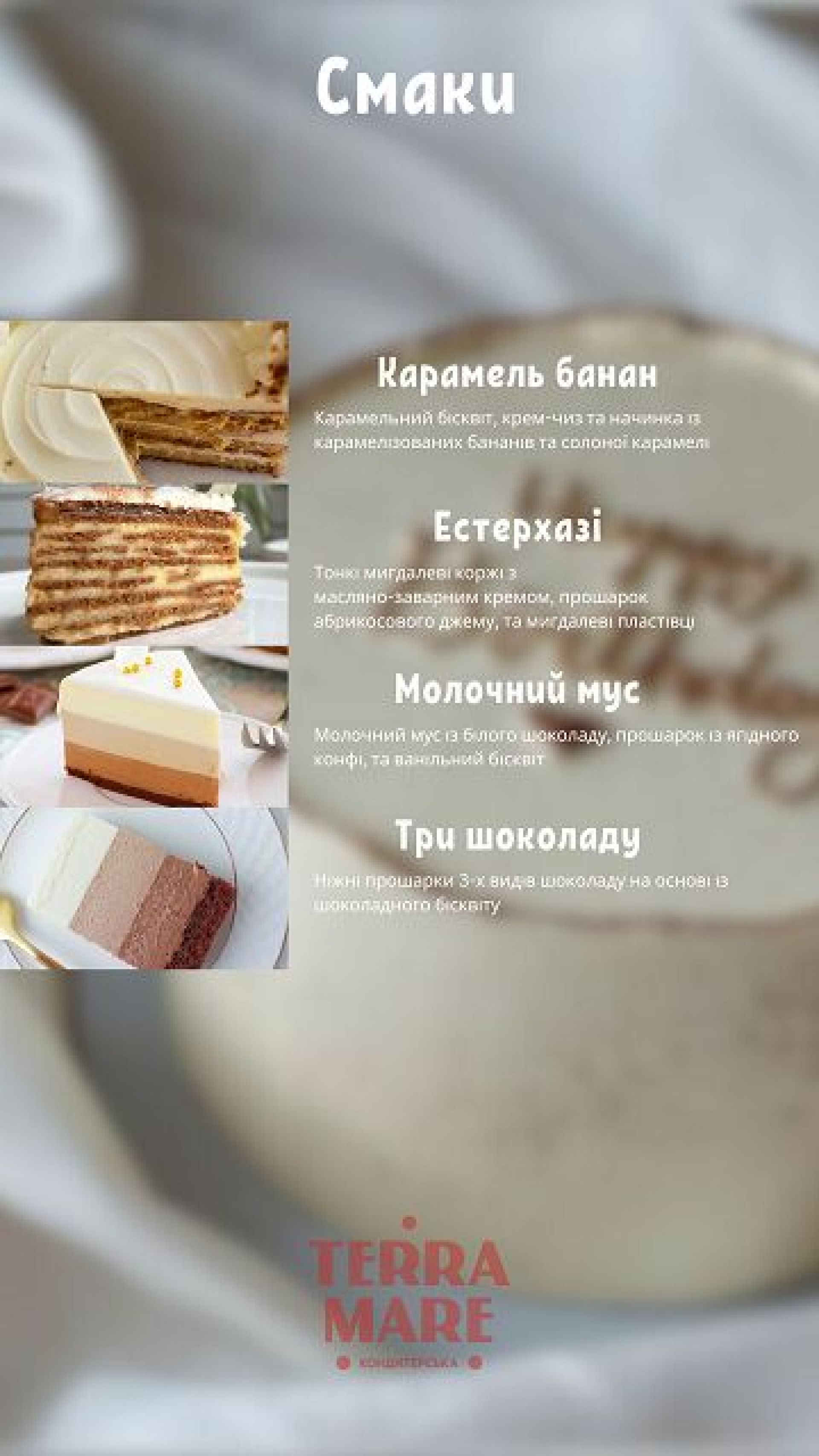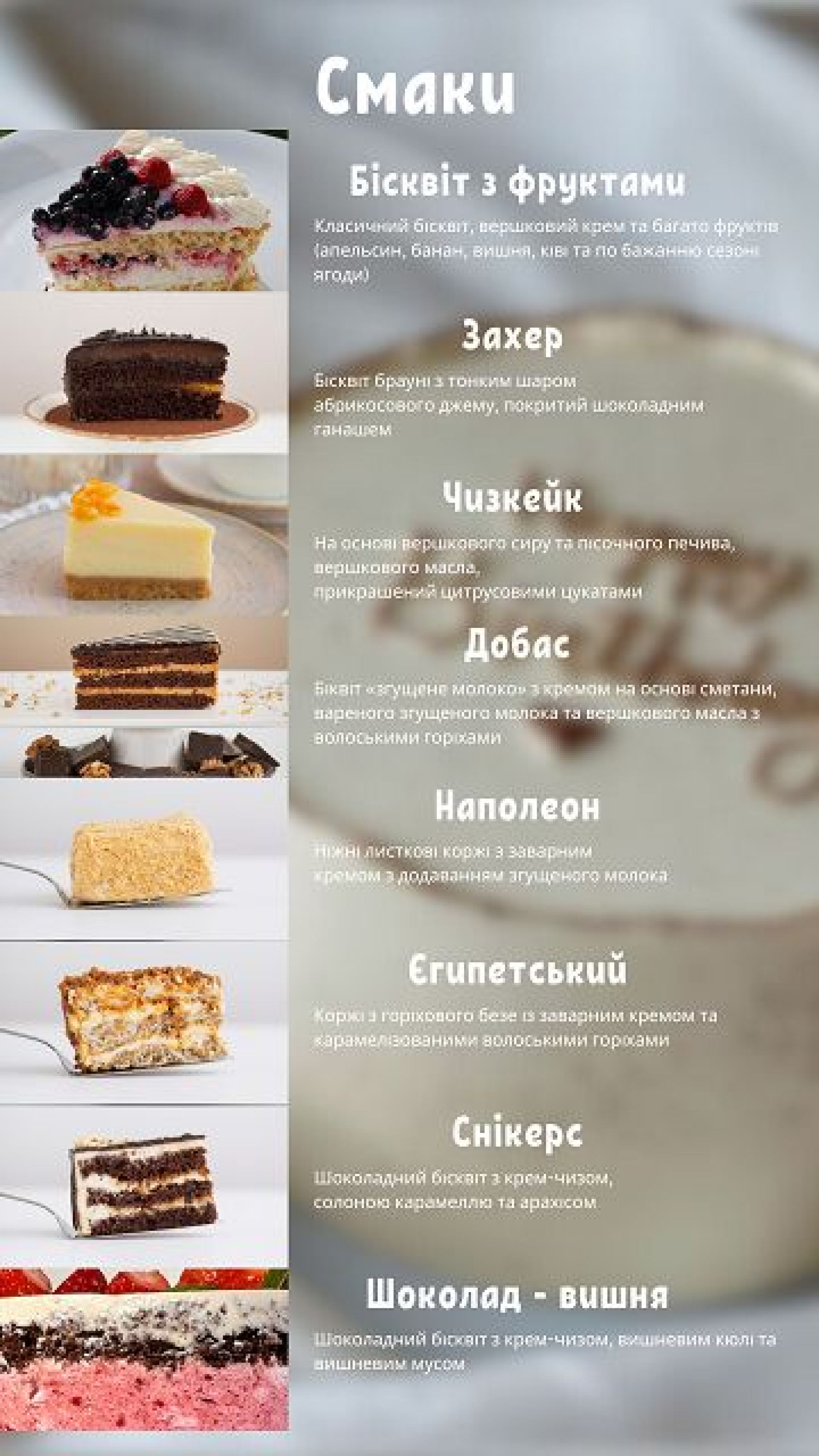 Меню тортів та варіанти оформлення завжди на нашому сайті musmus.com.ua