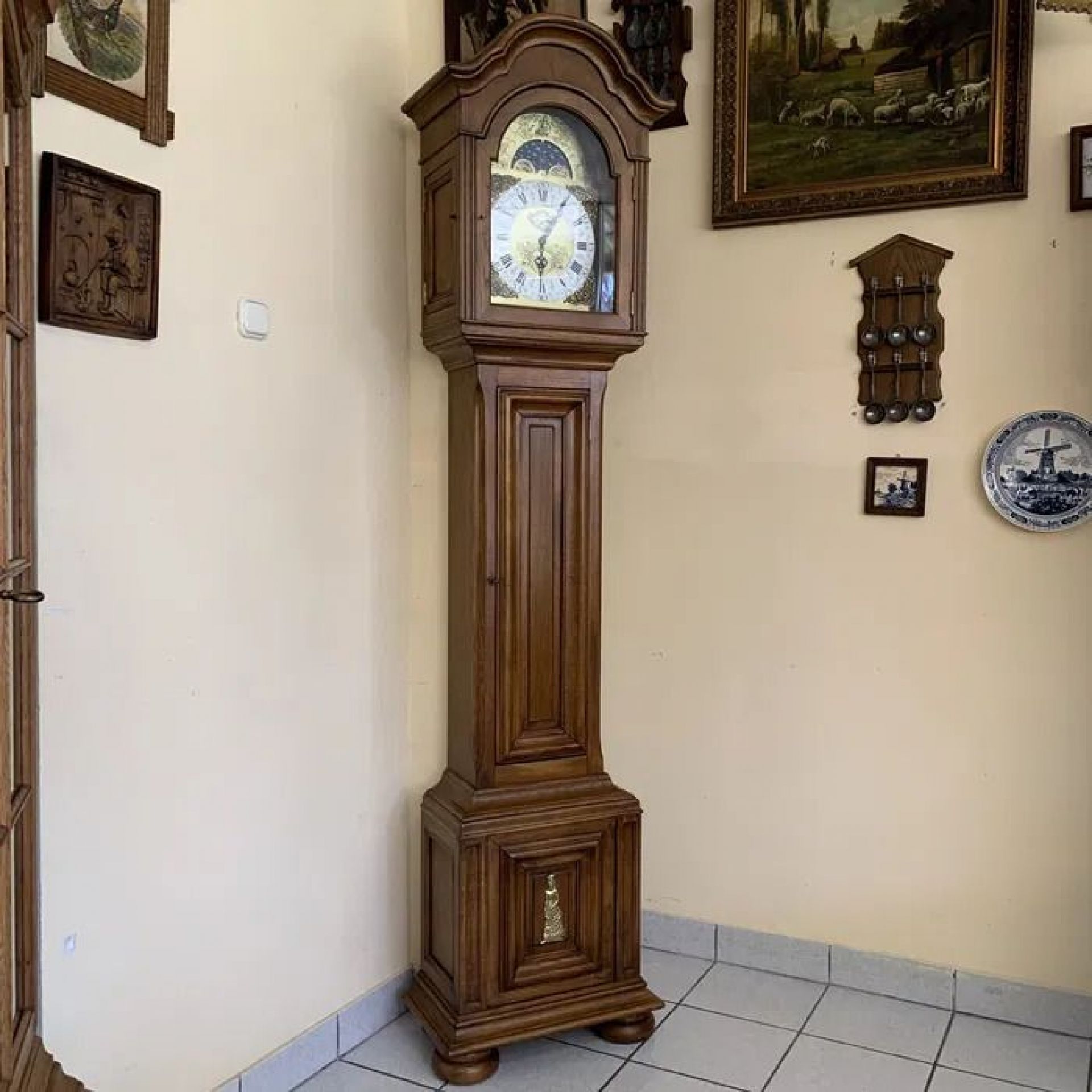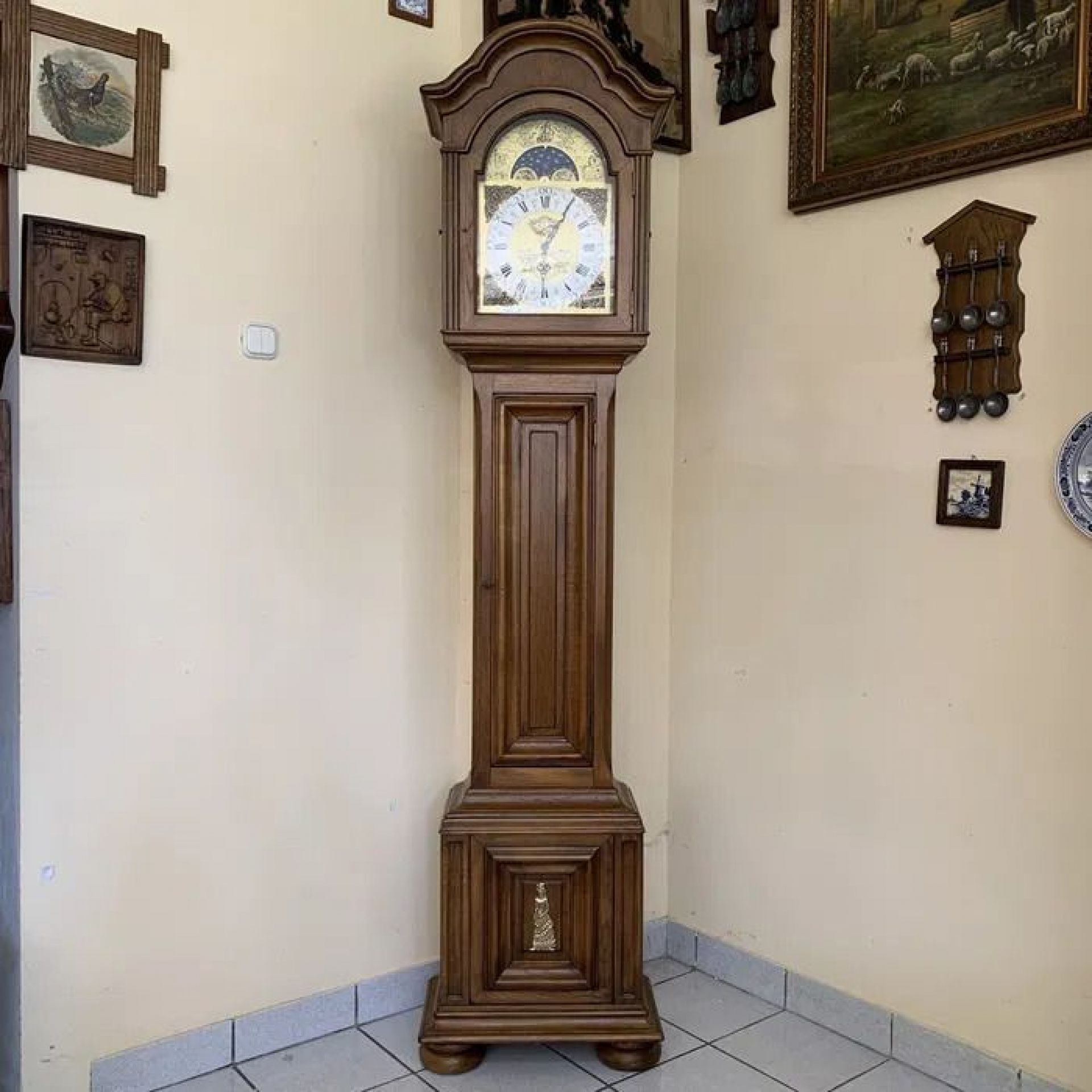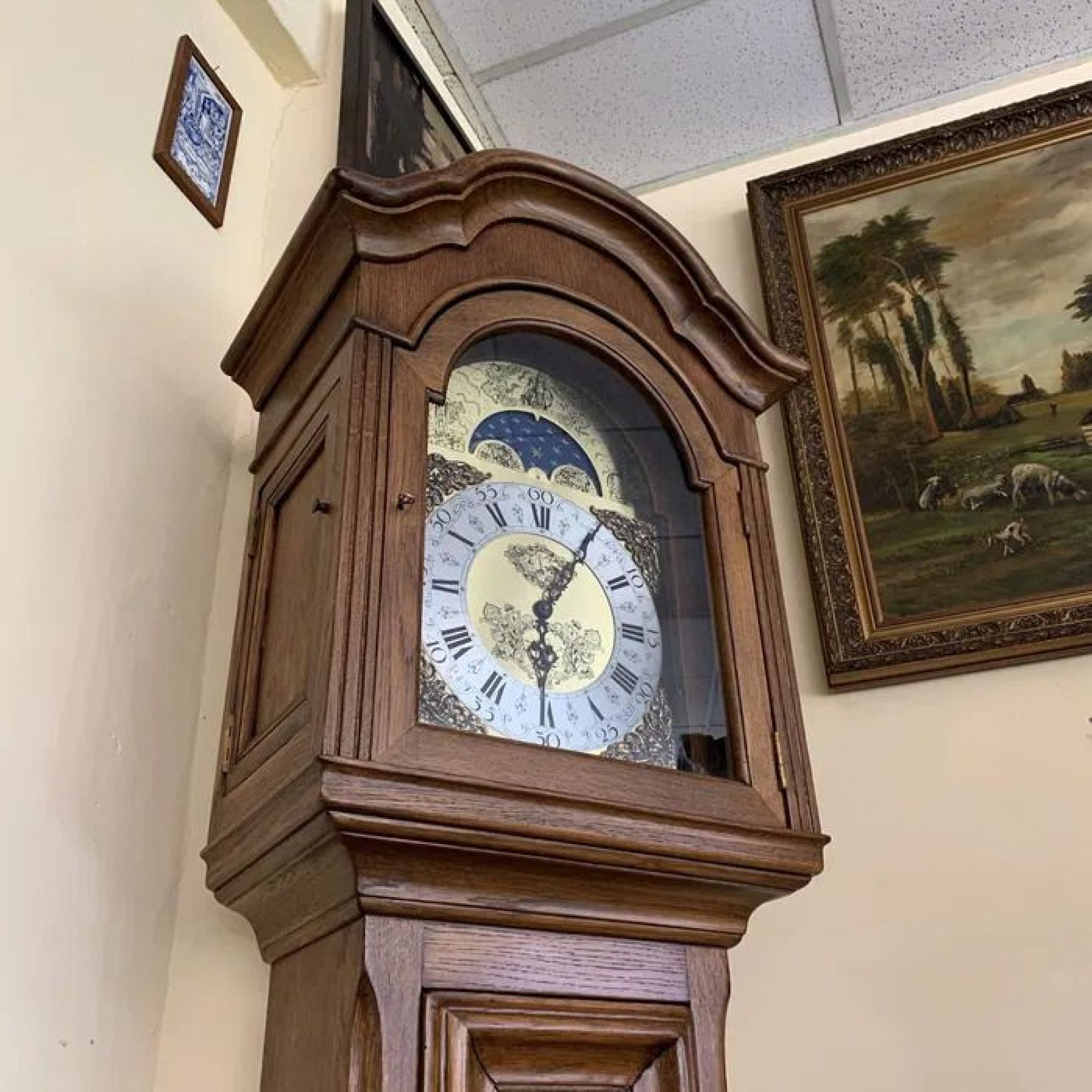 «Підлоговий гирьовий годинник з четвертним боєм і мелодією. Каркас годинника з масиву дуба виробництво Голландії, механізм Німеччина», — йдеться в описі до цього антикваріату.
