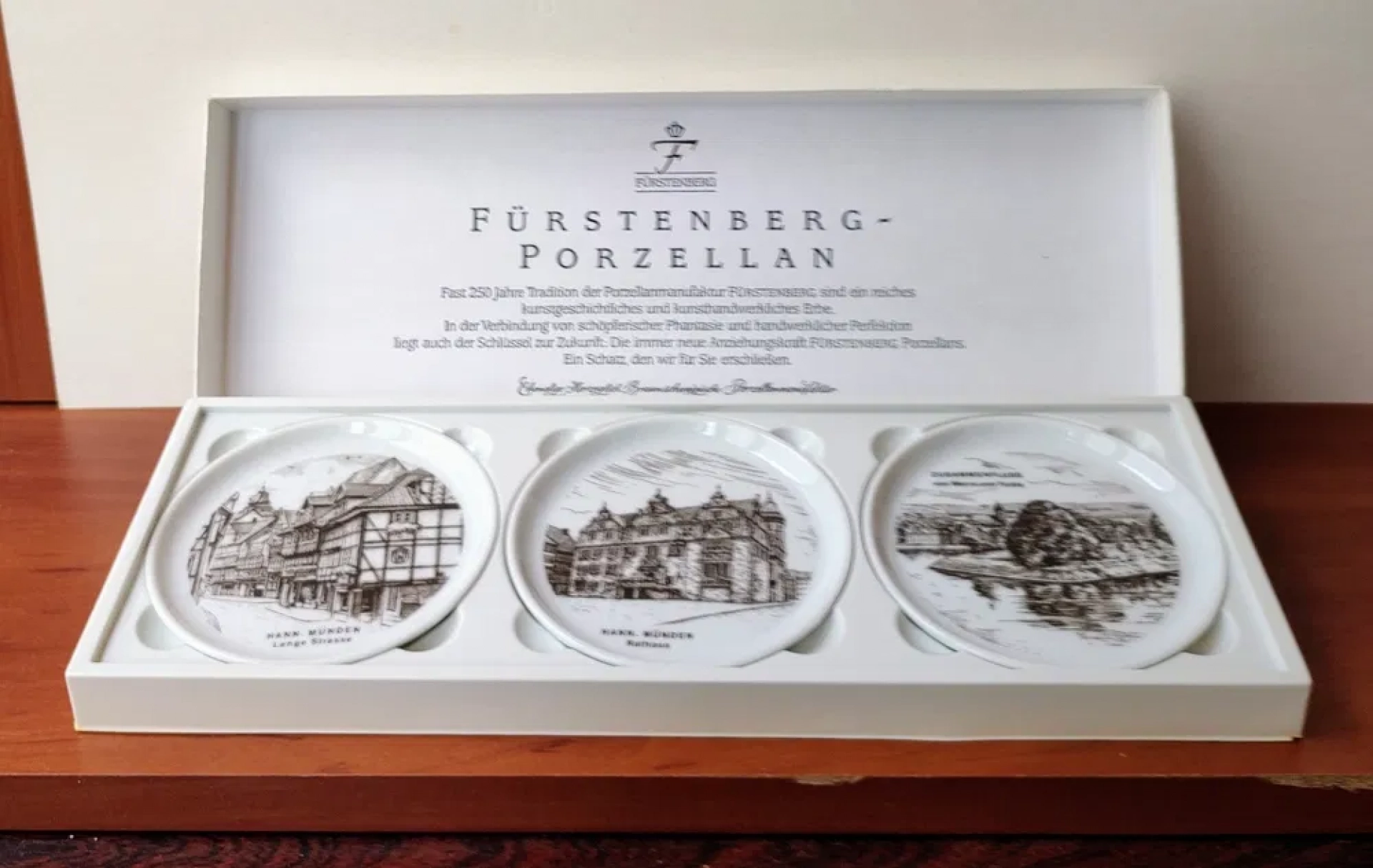«Продам цей подарунок, оригінал, отриманий на честь 250-річчя музею порцеляни у Фюрстенберзі в 1997 році. Цей подарунок випущений малим тиражем зроблений, належить до антикваріату. Розмір фірмової коробки 32*12 см. Три предмети», — пише автор оголошення з Вінниці.