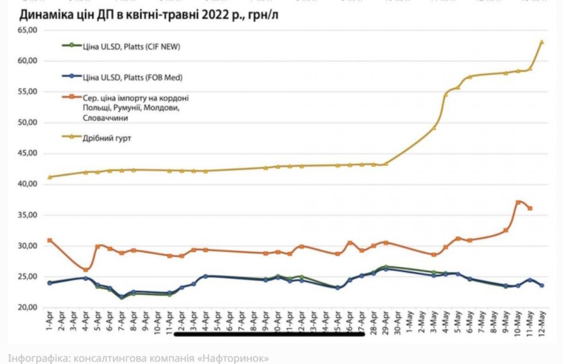 Аналітик «Нафторинку» Олександр Сіренко прогнозує, що ціни рости стрімко не будуть: «Можлива тільки невелика корекція через зміни цін на нафту». Однак він припускає, що вартість 60 гривень за літр залишиться, адже закупівельна ціна 55 гривень.