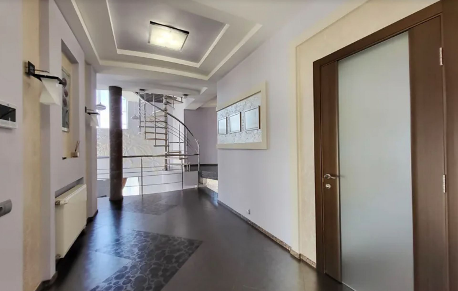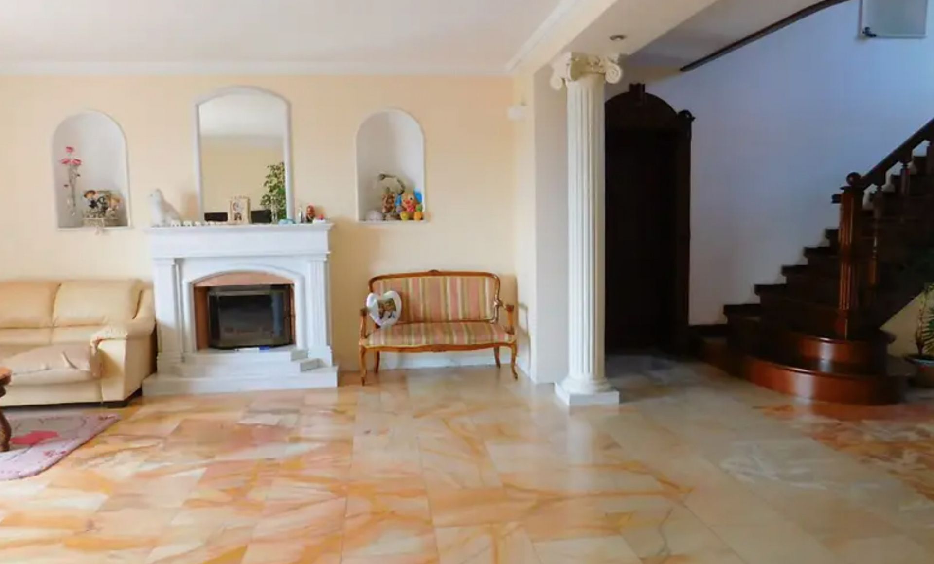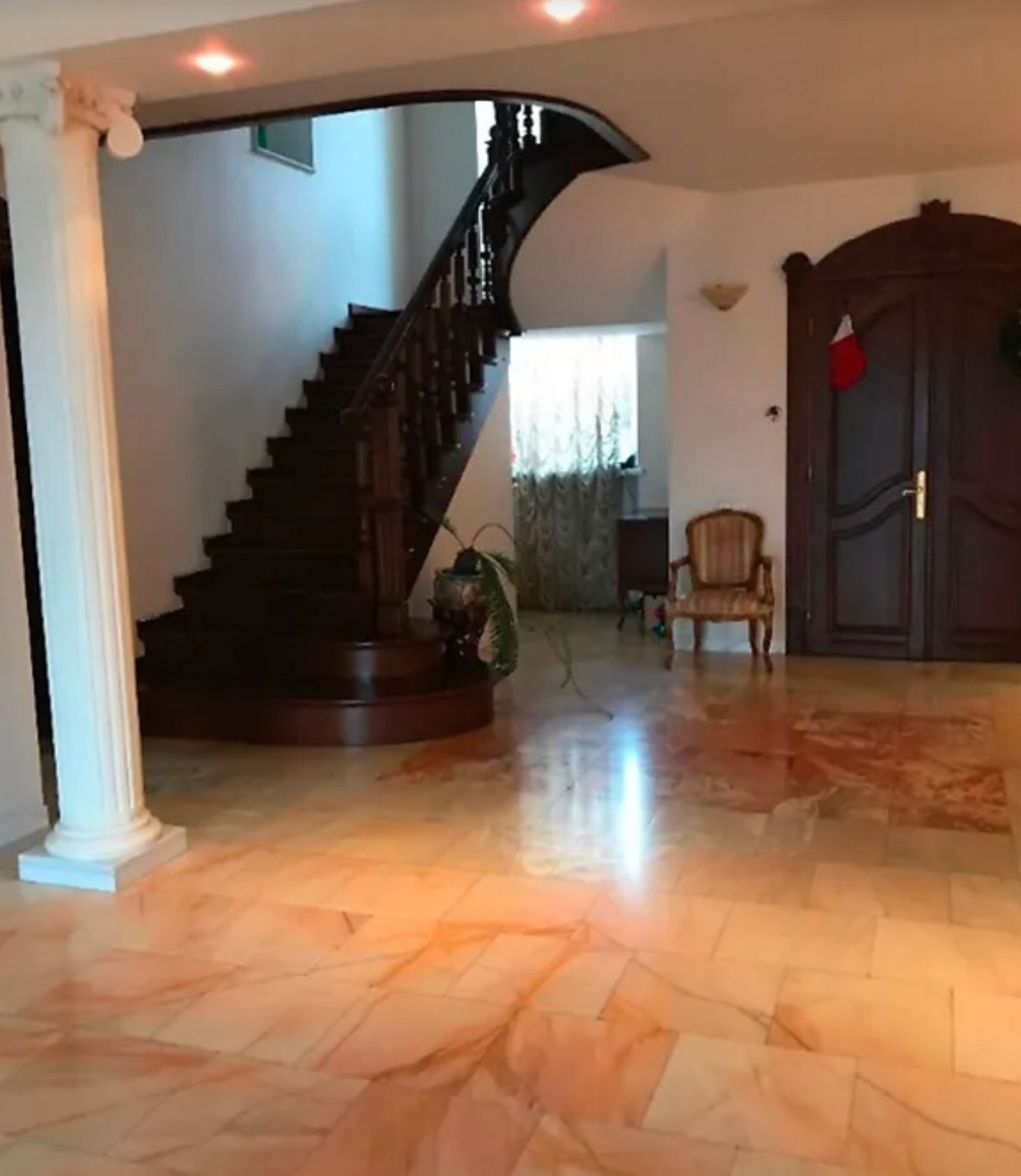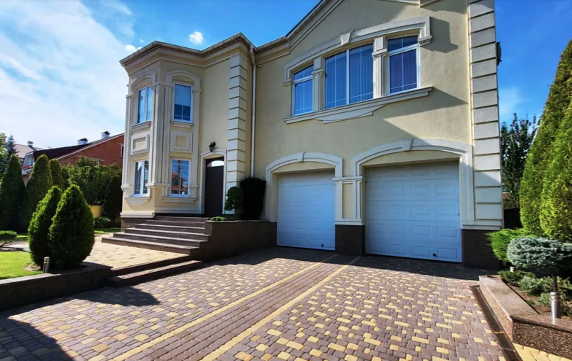 Триповерховий будинок у центрі міста має площу 387,3 м² і розташований на ділянці 16 соток. Усередині виконаний євроремонт, зокрема мармурова підлога з підігрівом і сходи з натурального дуба. У будинку є камінний зал, простора кухня та якісно облаштовані житлові кімнати.