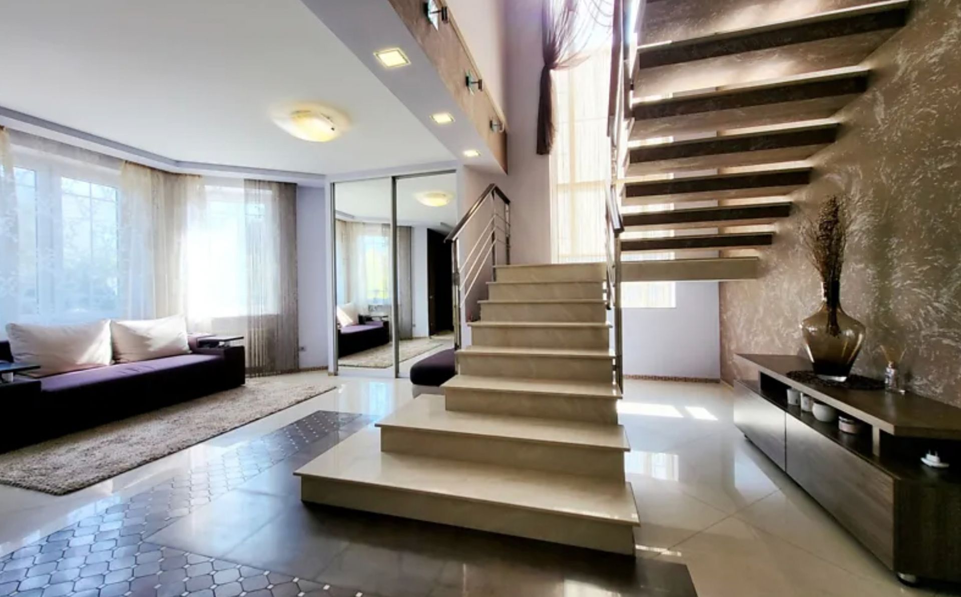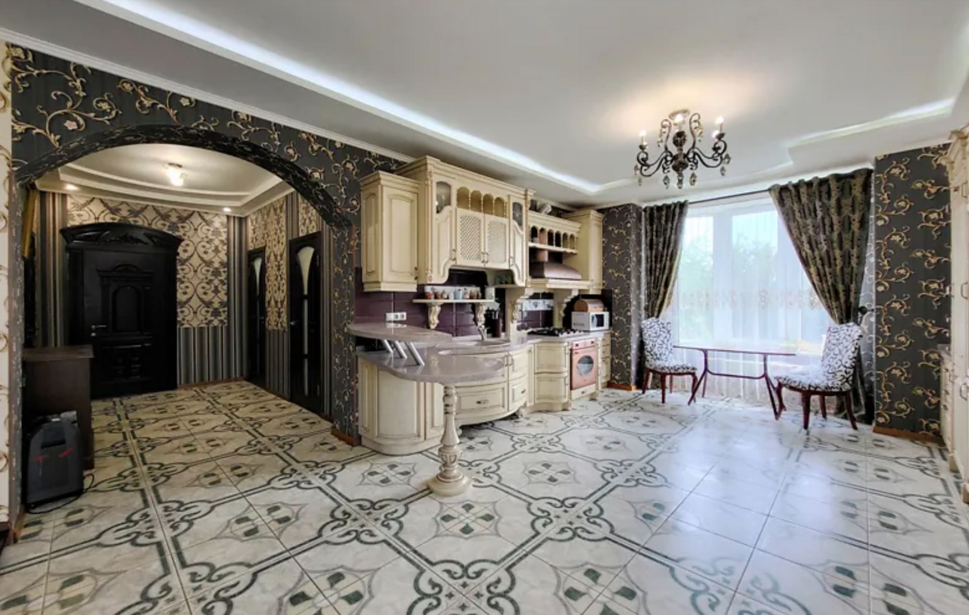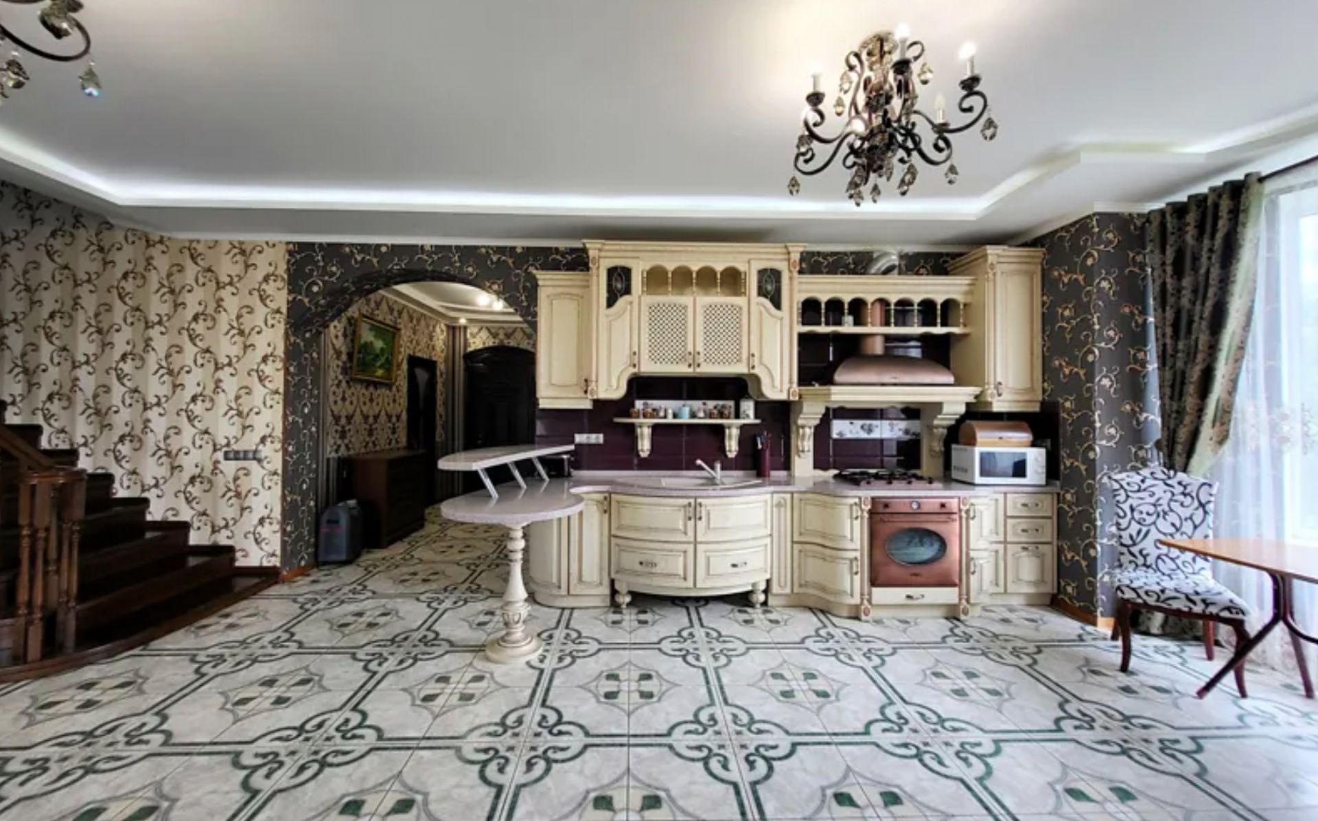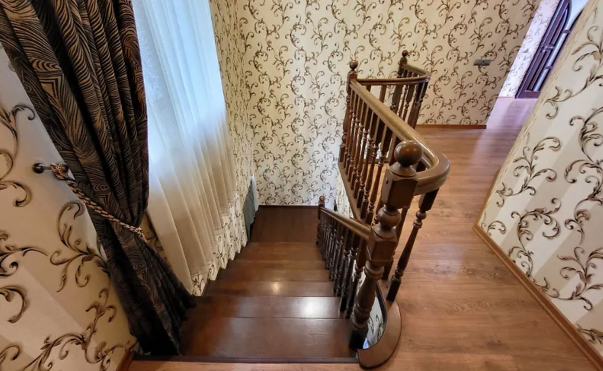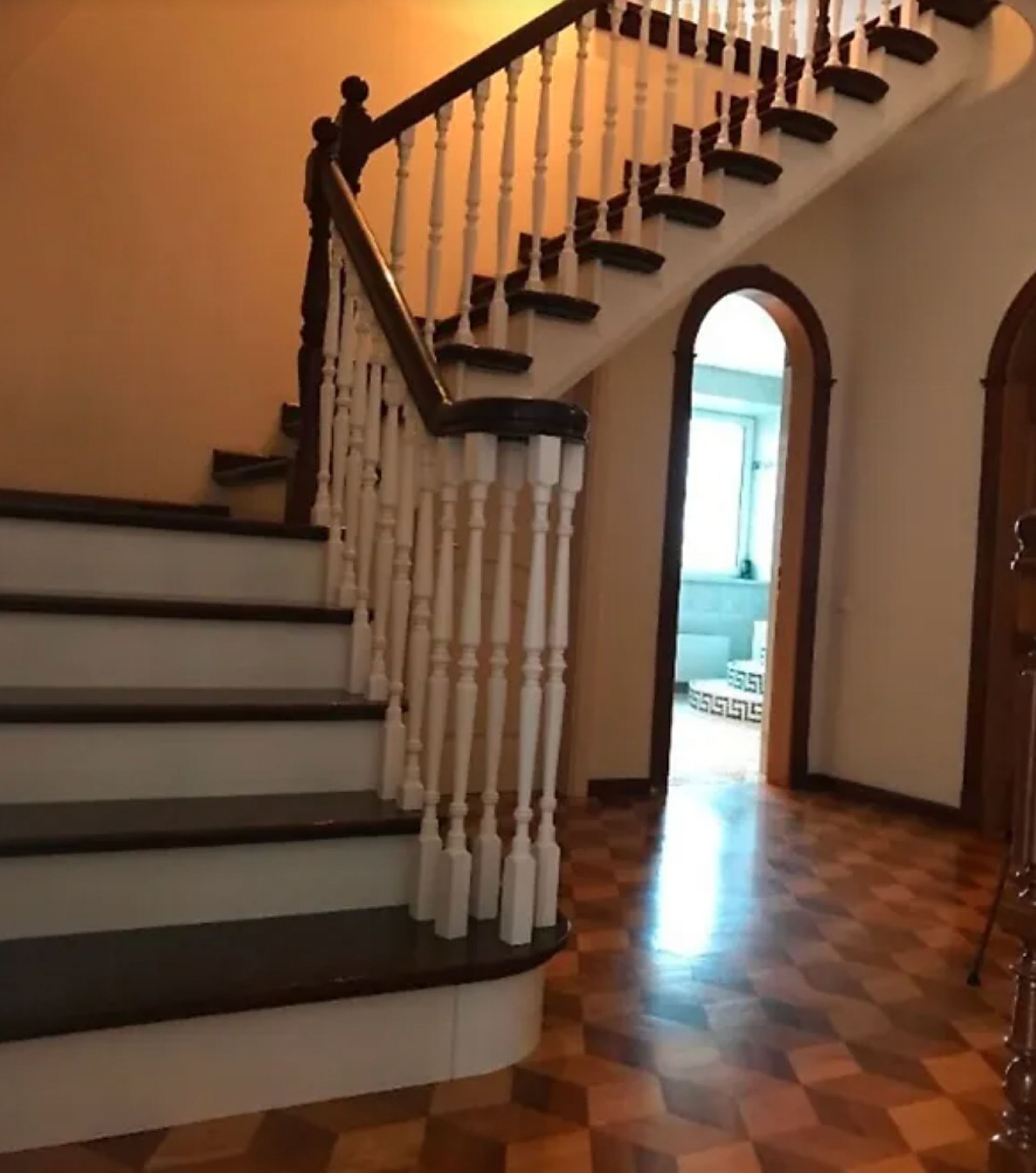 Триповерховий будинок у центрі міста має площу 387,3 м² і розташований на ділянці 16 соток. Усередині виконаний євроремонт, зокрема мармурова підлога з підігрівом і сходи з натурального дуба. У будинку є камінний зал, простора кухня та якісно облаштовані житлові кімнати.