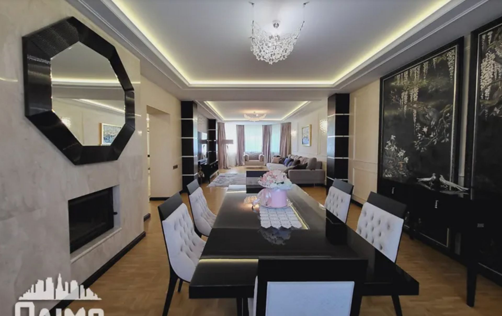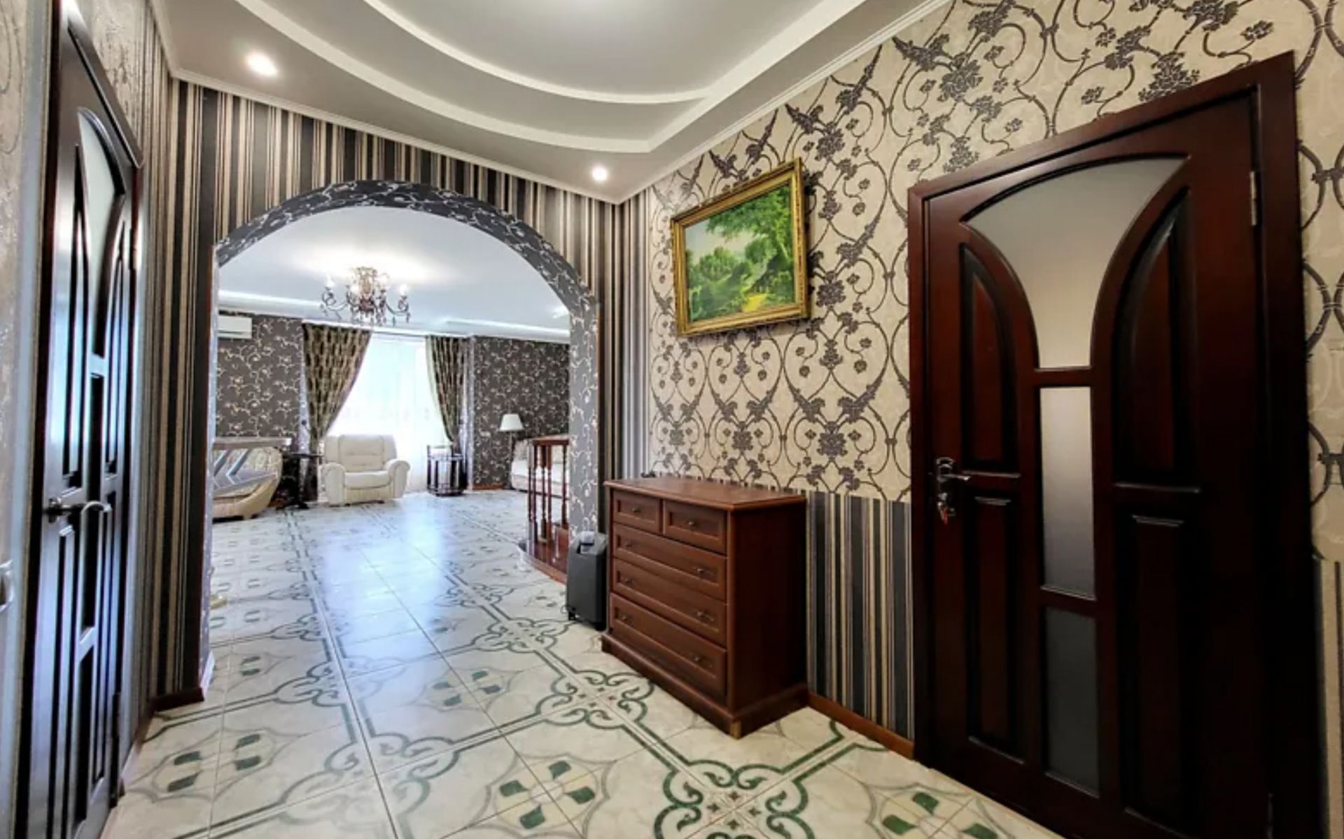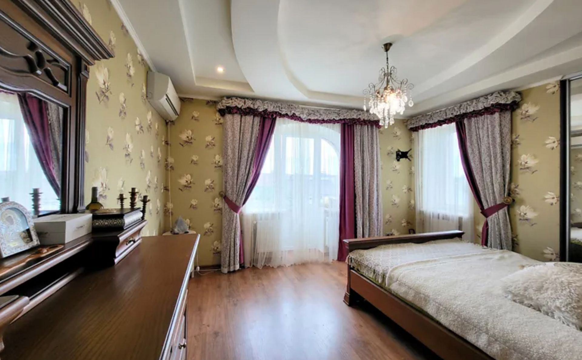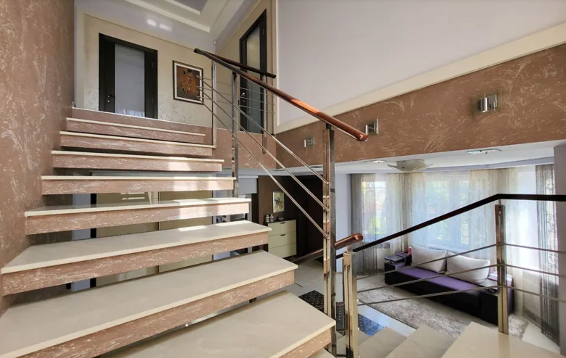 Триповерховий будинок у центрі міста має площу 387,3 м² і розташований на ділянці 16 соток. Усередині виконаний євроремонт, зокрема мармурова підлога з підігрівом і сходи з натурального дуба. У будинку є камінний зал, простора кухня та якісно облаштовані житлові кімнати.