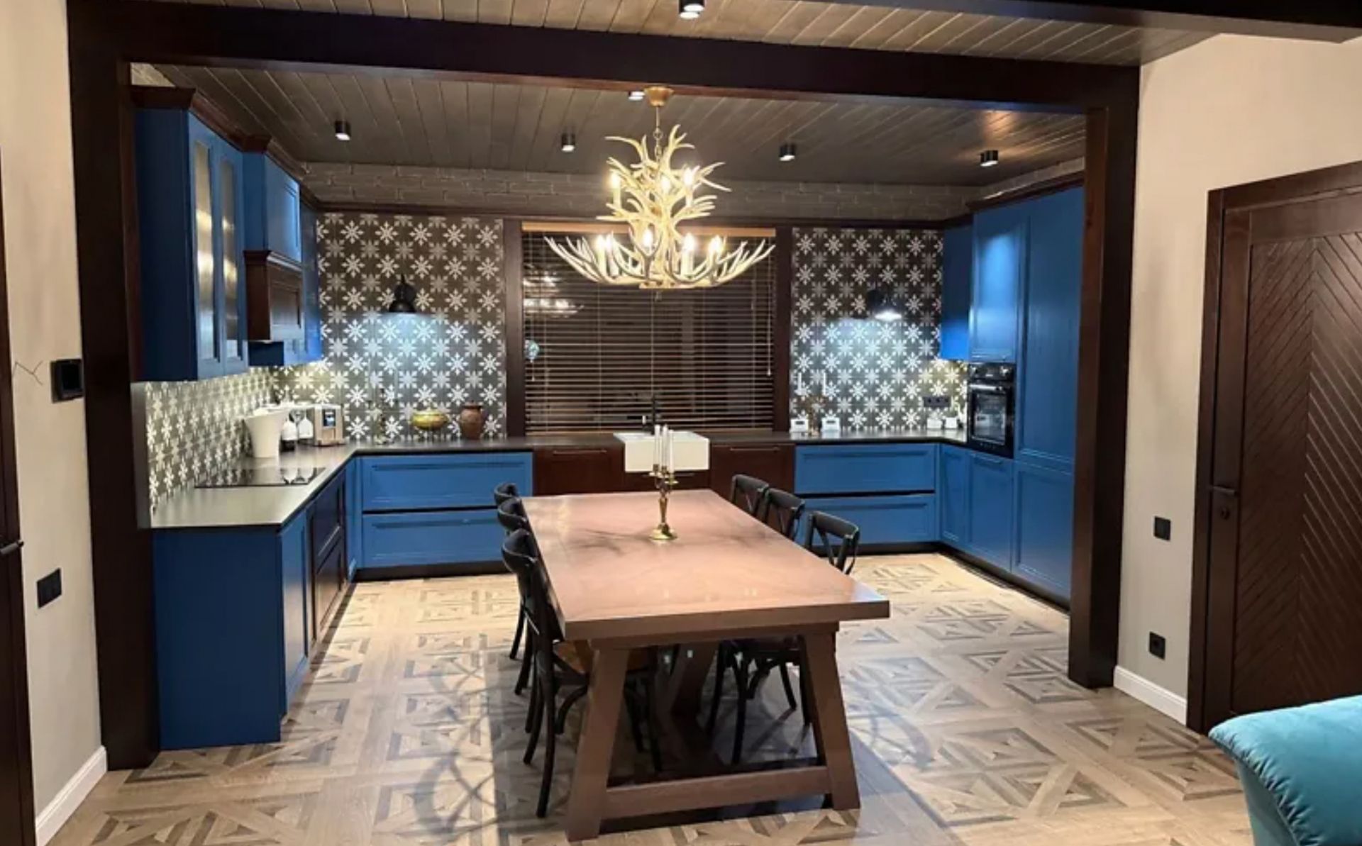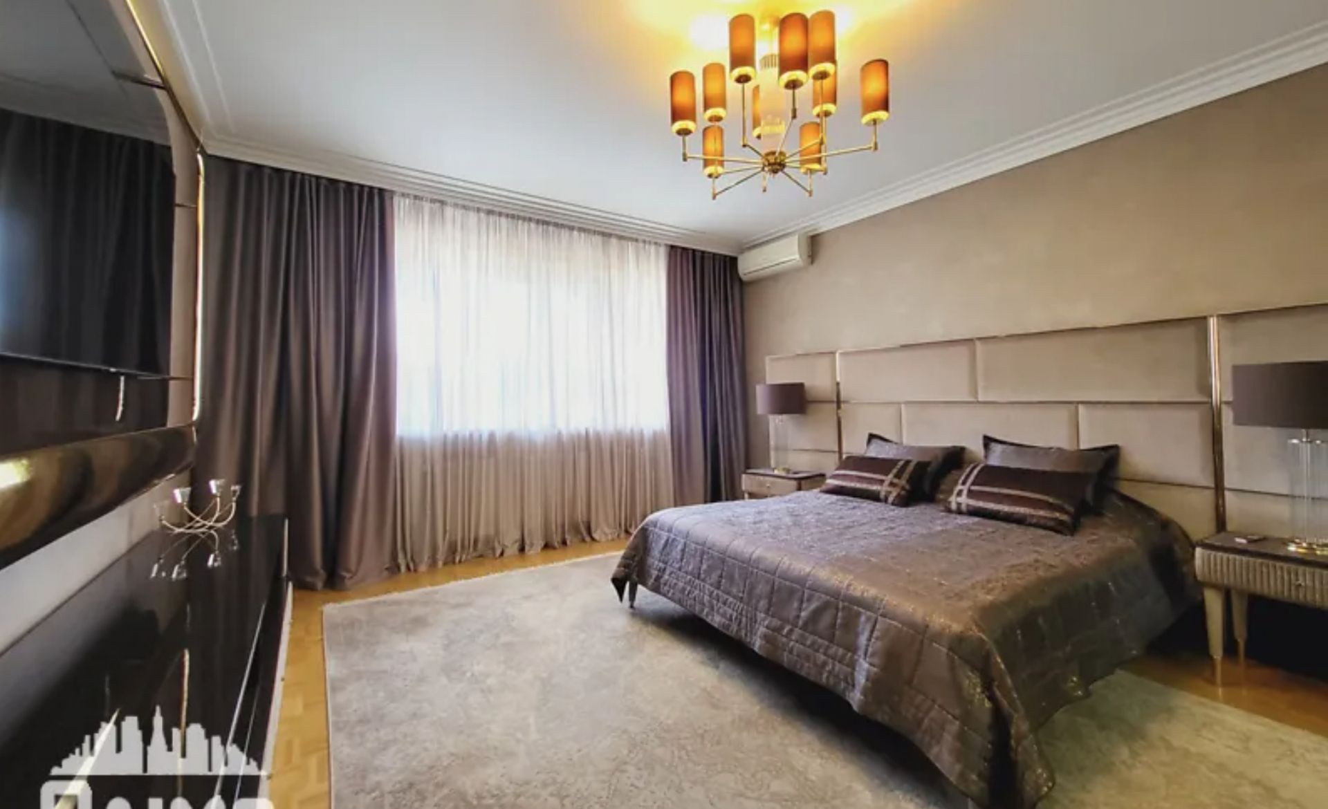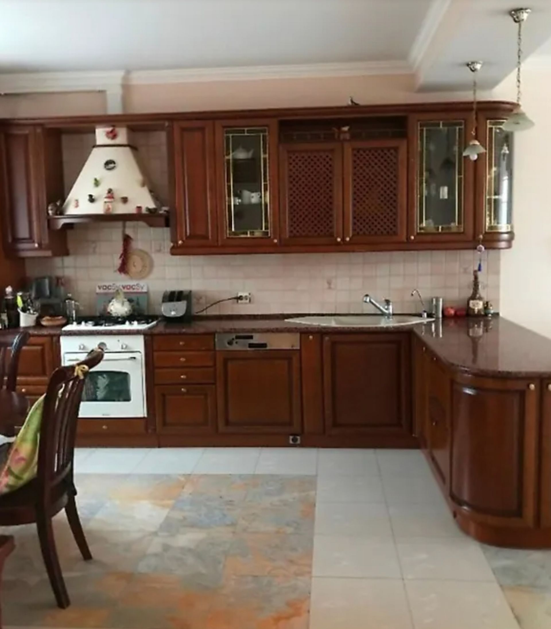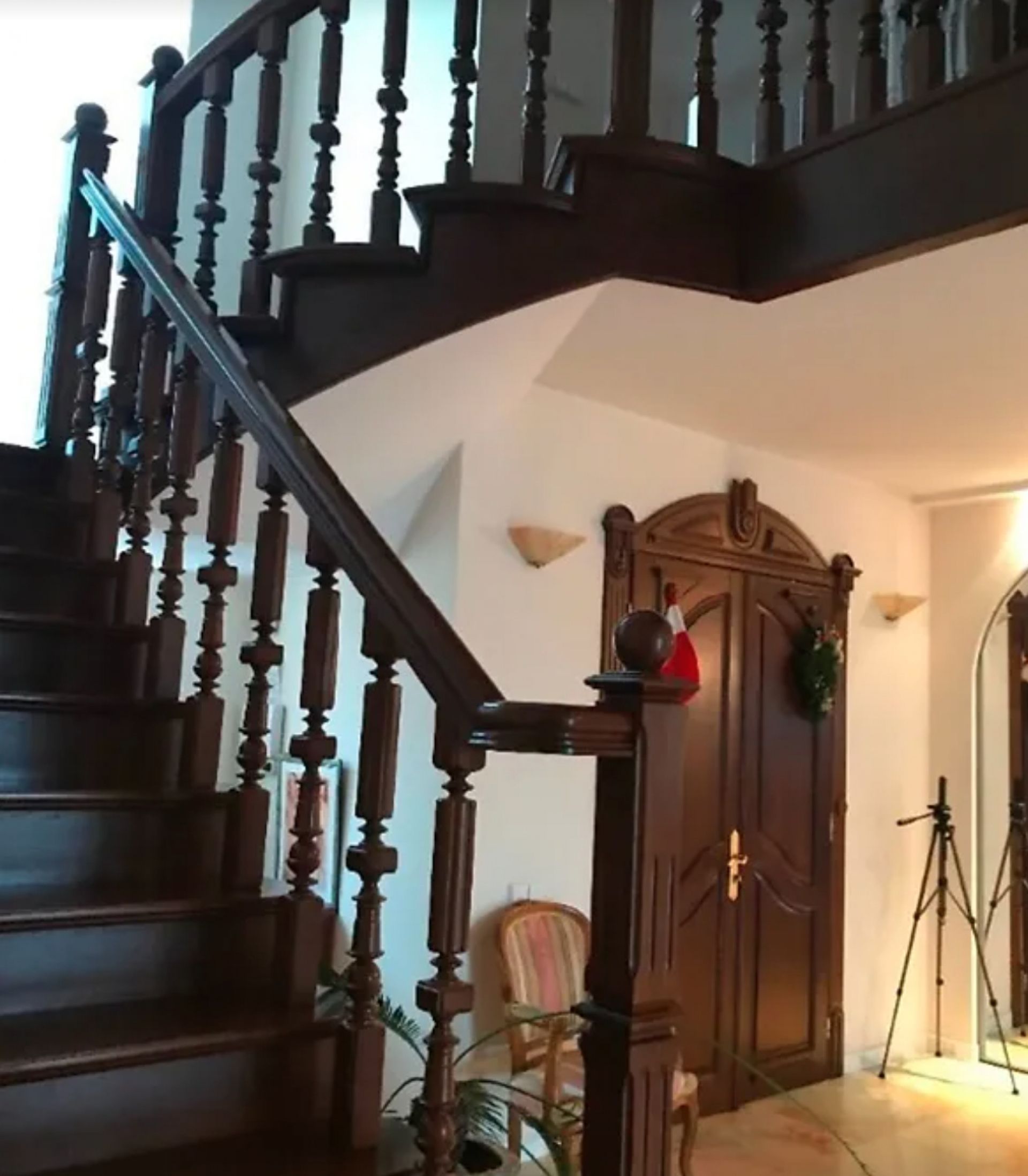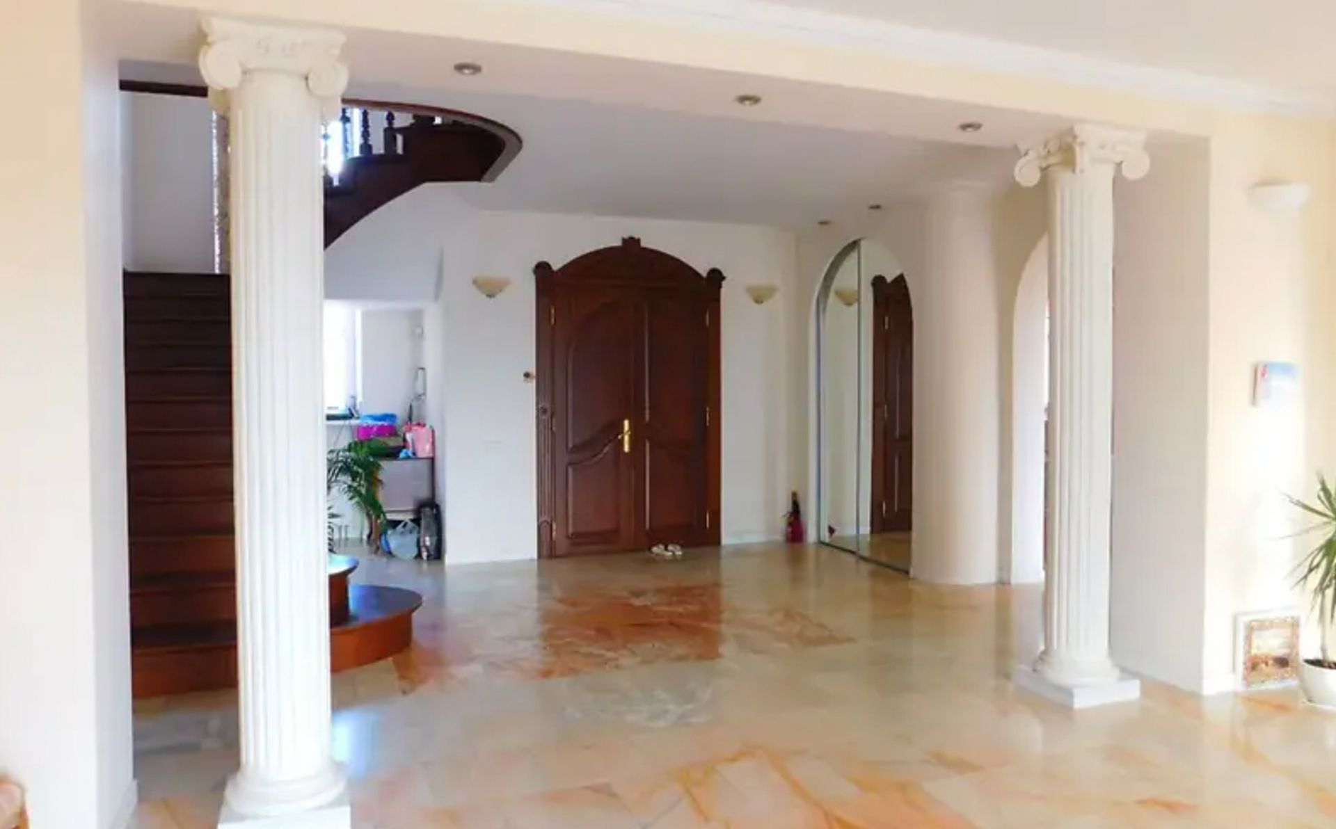 Триповерховий будинок у центрі міста має площу 387,3 м² і розташований на ділянці 16 соток. Усередині виконаний євроремонт, зокрема мармурова підлога з підігрівом і сходи з натурального дуба. У будинку є камінний зал, простора кухня та якісно облаштовані житлові кімнати.