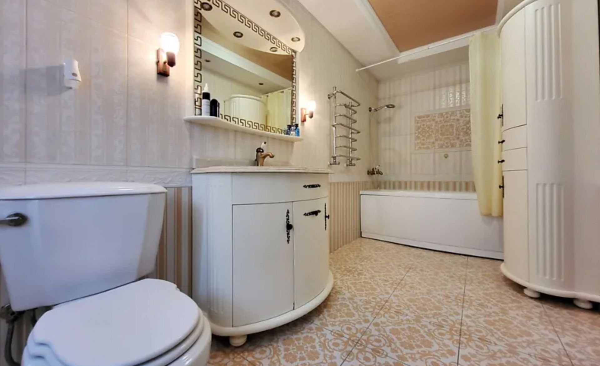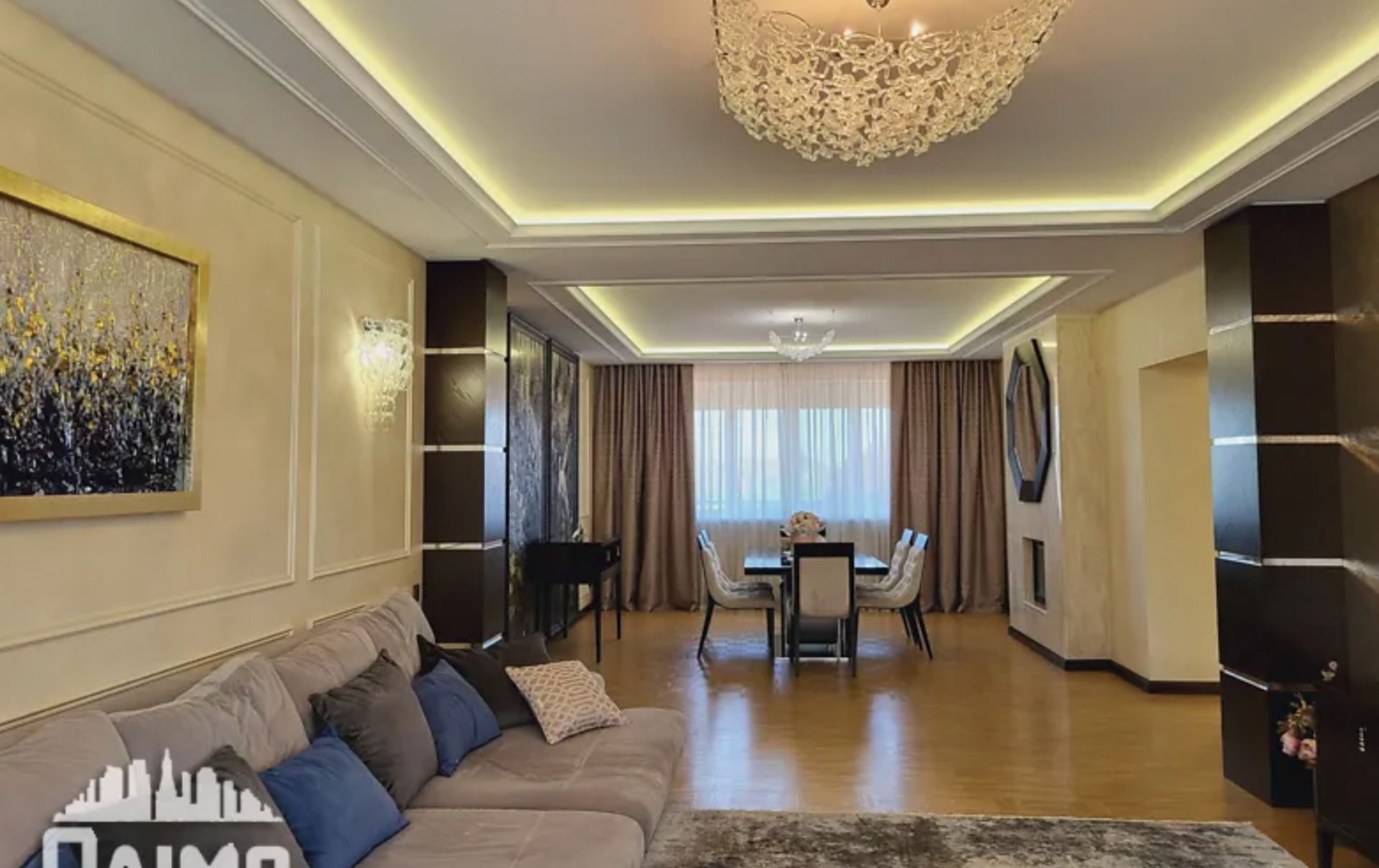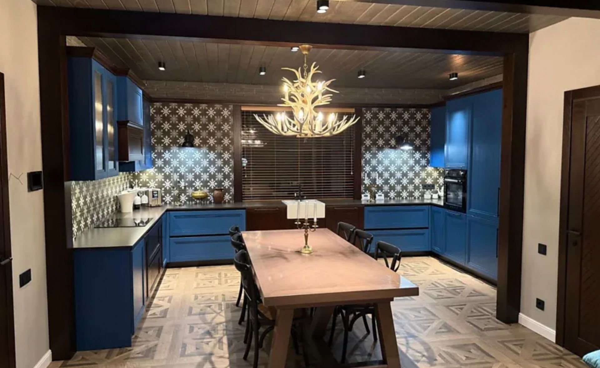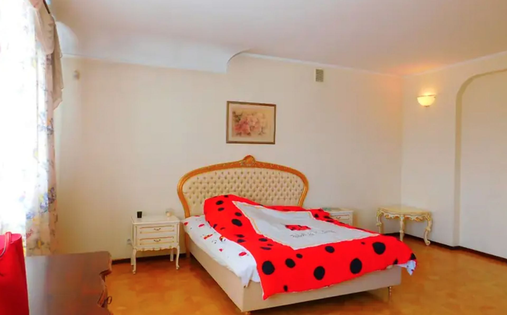 Триповерховий будинок у центрі міста має площу 387,3 м² і розташований на ділянці 16 соток. Усередині виконаний євроремонт, зокрема мармурова підлога з підігрівом і сходи з натурального дуба. У будинку є камінний зал, простора кухня та якісно облаштовані житлові кімнати.
