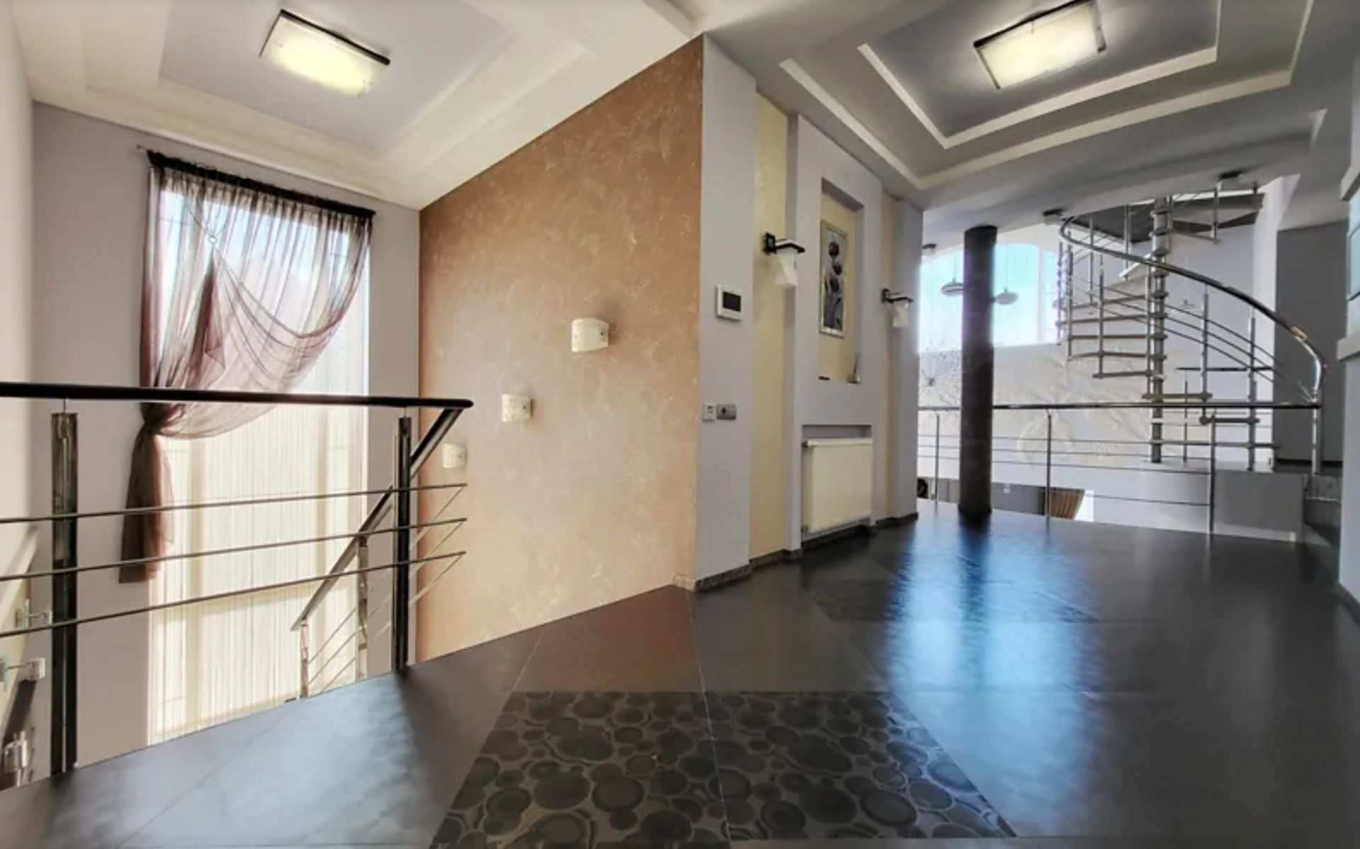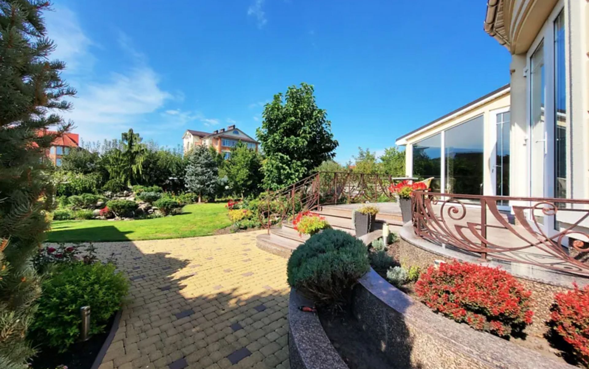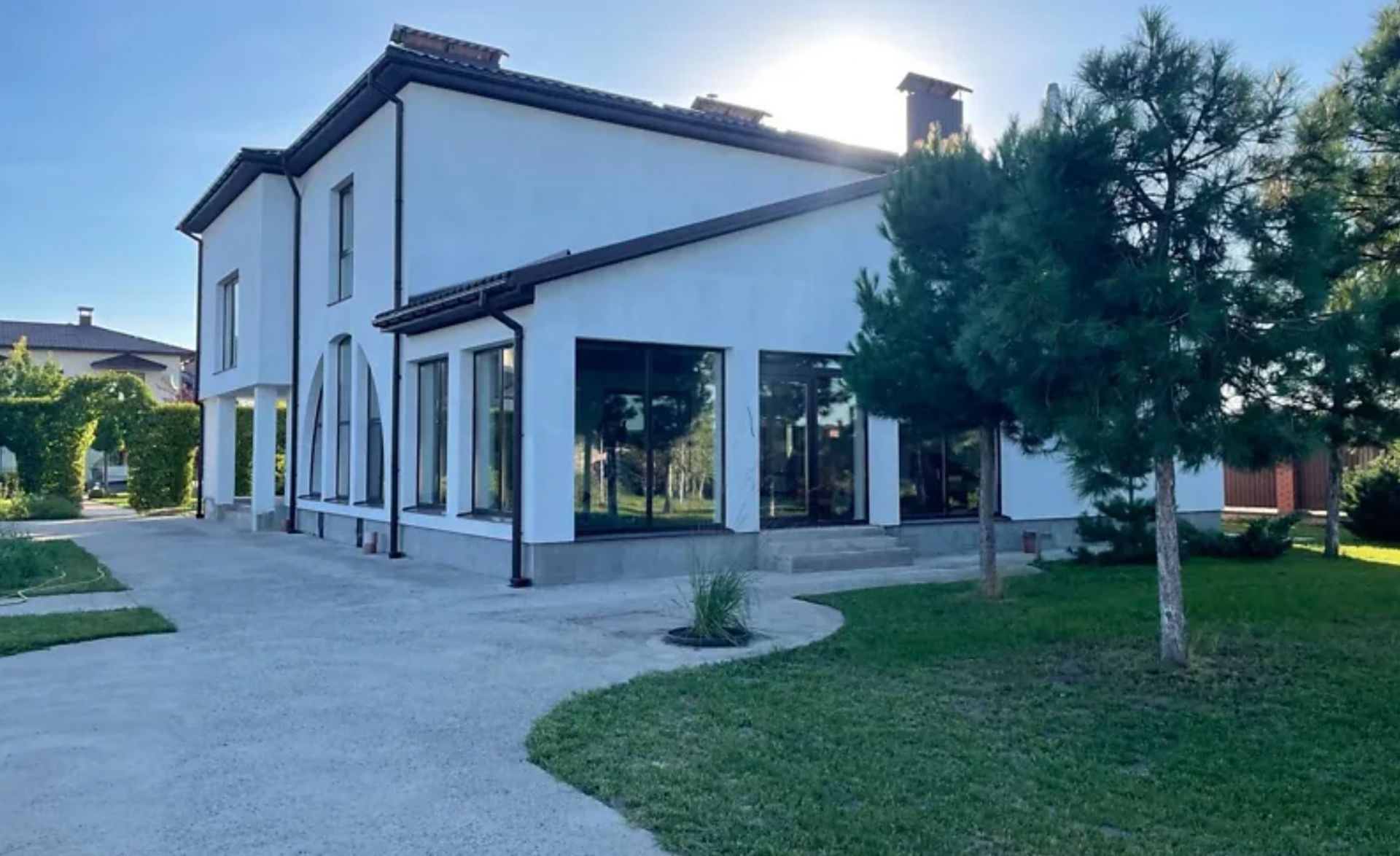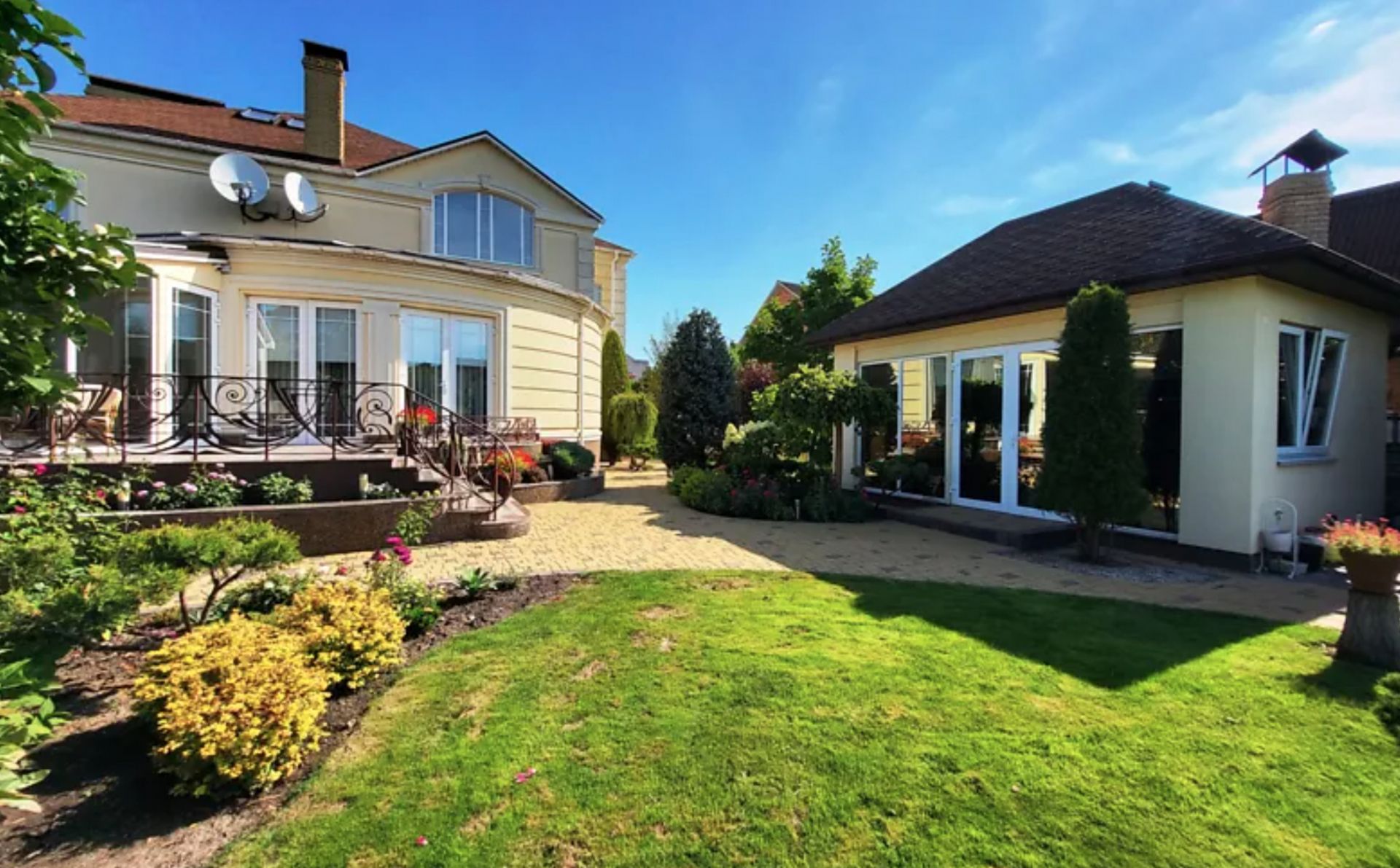 Цей будинок площею 495 м² розташований у престижному районі біля лісу та збудований за індивідуальним проєктом із використанням сучасних технологій. У ньому два житлові поверхи та цоколь, загалом передбачено п’ять житлових кімнат, серед яких три спальні та кабінет. Усередині облаштовані сауна, басейн, три санвузли, гардеробна і комора, що формує повноцінний простір для комфортного проживання.
