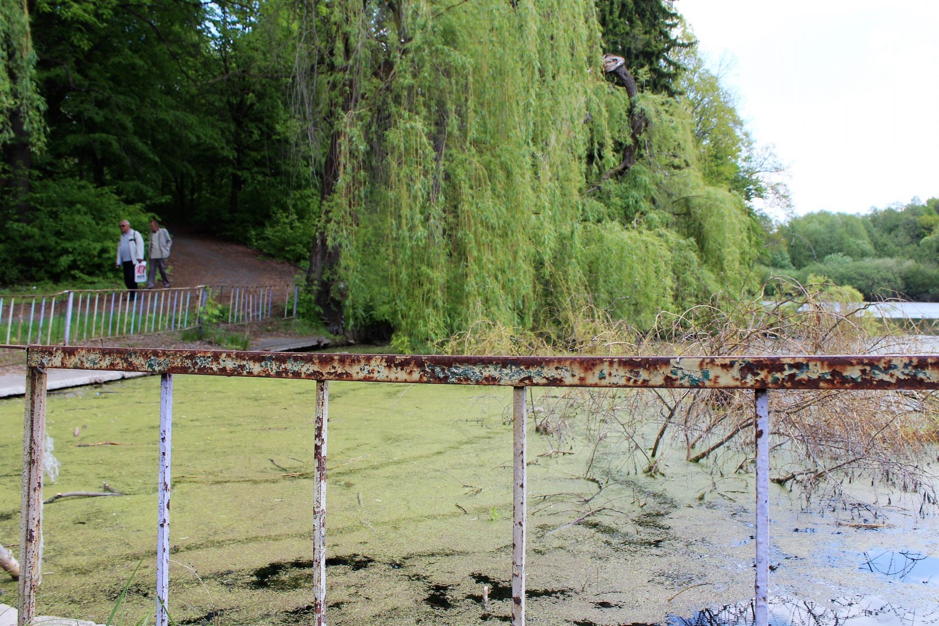Охоронець провів коротку екскурсію санаторієм. Алеї заросли чагарниками, потрощені лавочки, скрізь купи сміття. Поблизу два стави, які вже давно не чистили від намулу. Вікна закинутих корпусів забиті дошками. З хащів визирають пошарпані скульптури.