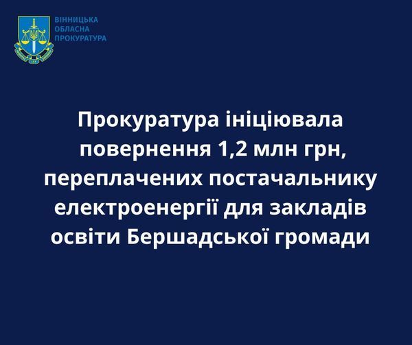 Господарський суд Вінницької області задовольнив позов Гайсинської окружної прокуратури щодо визнання недійсними десять додаткових угод до договору про постачання електроенергії для закладів освіти Бершадської громади. Постачальника зобов’язали повернути 1,2 мільйона гривень надмірно сплачених коштів.