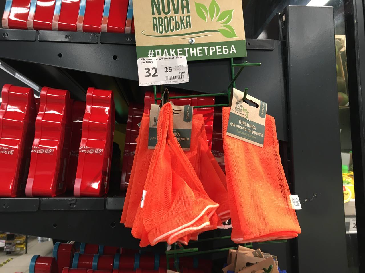 У магазині, додамо, можна придбати багаторазові торбинки. За мішечок для овочів/фруктів доведеться заплатити від 32 до 42 гривень.
