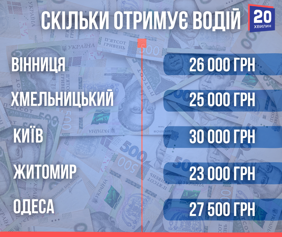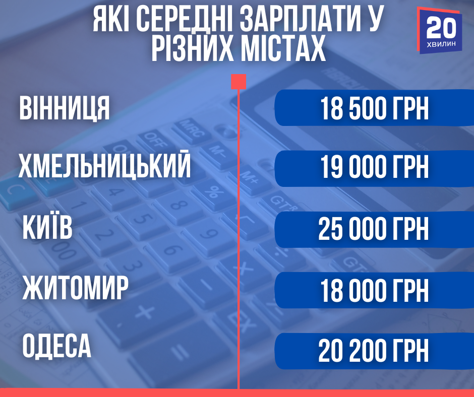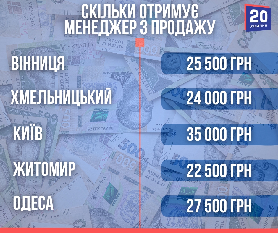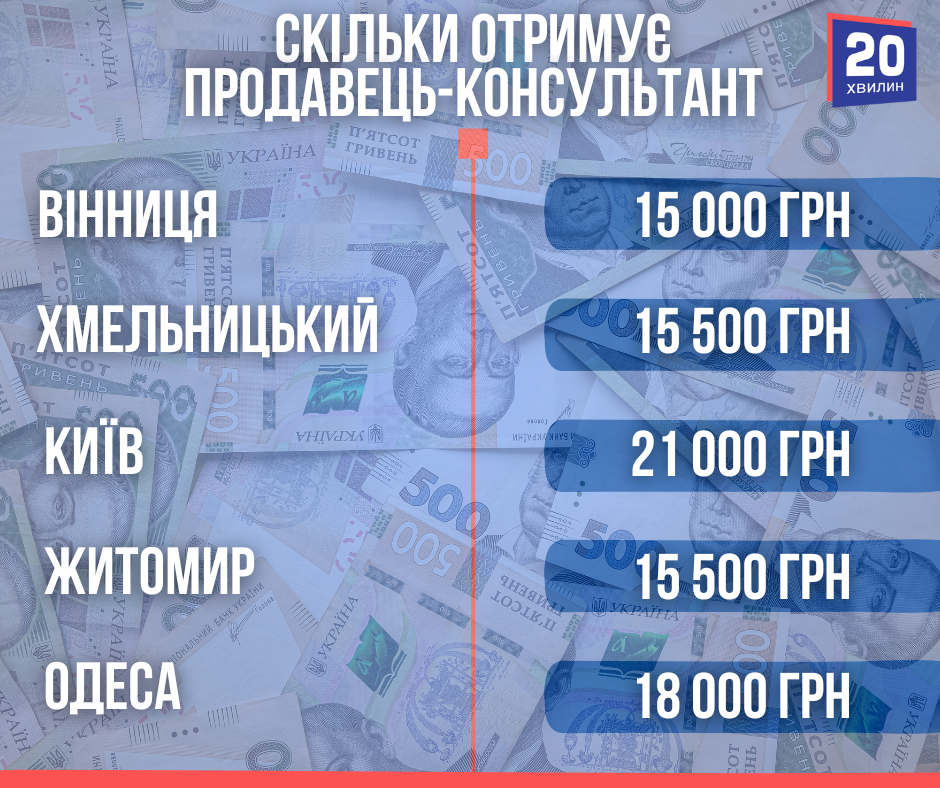 У Вінниці продавець-консультант отримував — 13 500 гривень, а зараз 15 000. Менеджер з продажу заробляв — 21 000 гривень, а зараз 25 500. Адміністратор — 14 500 гривень, тепер — 16 500. Водіям у середньому платили 23 000, а сьогодні вже 26 000. Бухгалтери зазвичай отримували 16 000 гривень, наразі їхня платня складає в середньому 18 800 гривень.