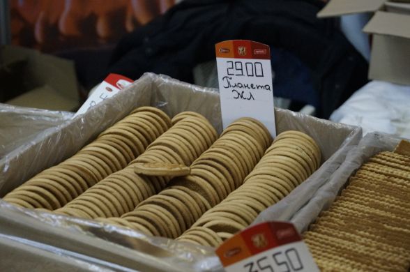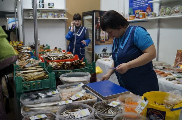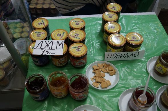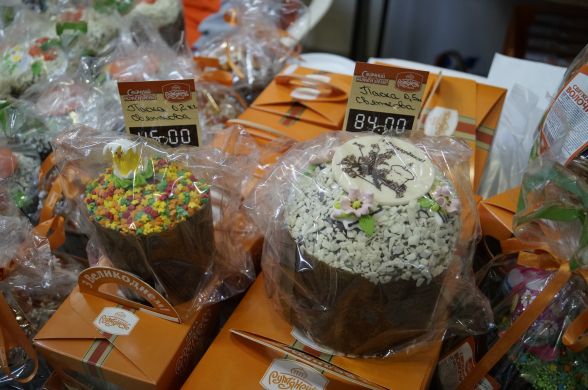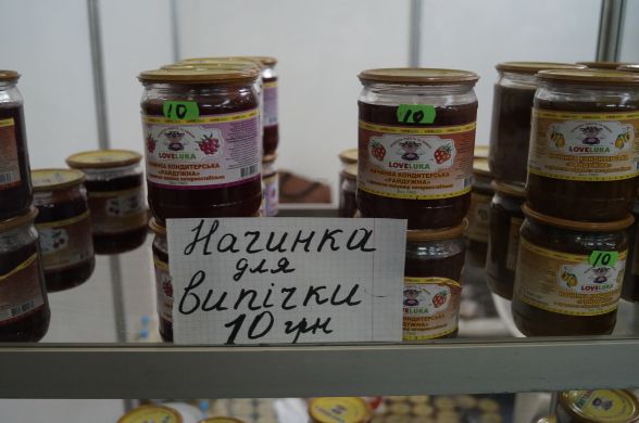 Близько 13.00 покупців в Експоцентрі багато. У перший день ярмарку між прилавками місцями черги. Вінничани скуповуються до Великодня.