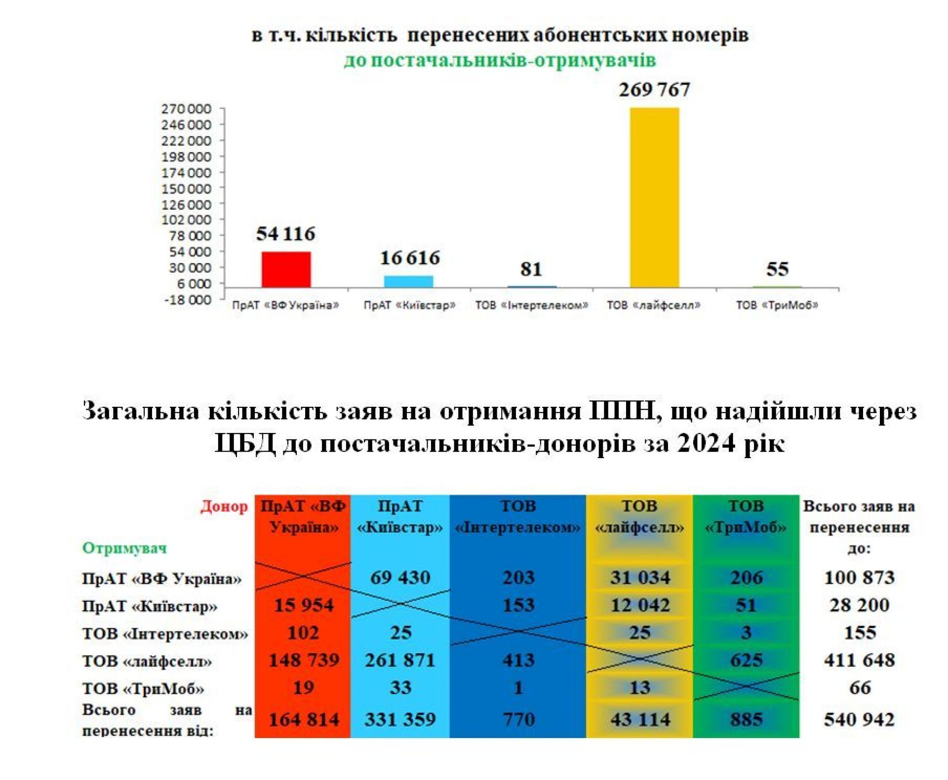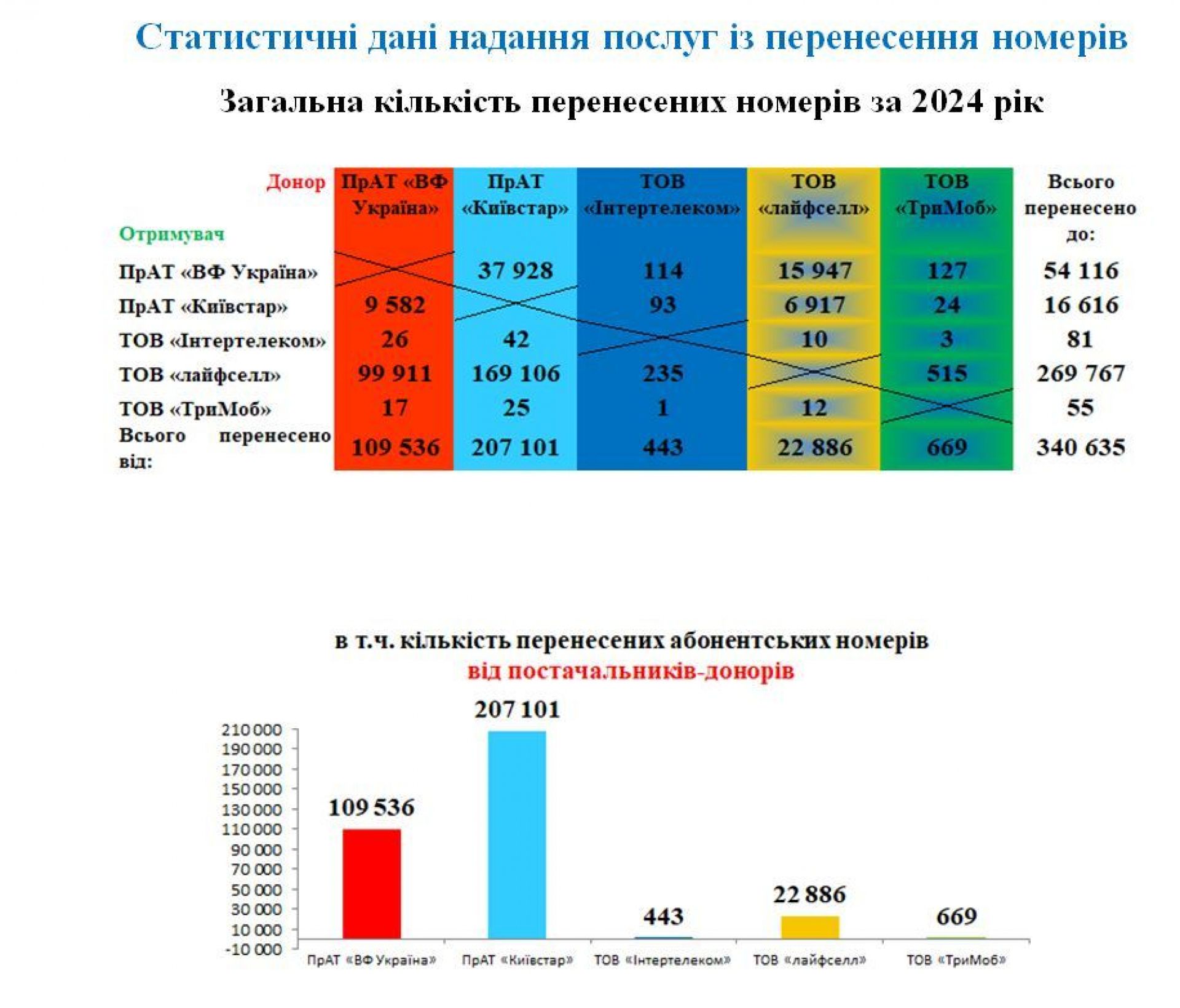 Як свідчать статистичні дані комісії, за 2024 рік 207,1 тисячі номерів було перенесено від Київстару. Водночас перейшли в Київстар від інших операторів усього 16,6 тисячі абонентів.