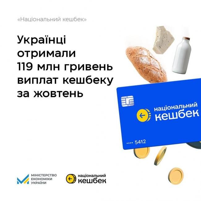 - Накопичений в жовтні за купівлю українських товарів кешбек уже отримали усі українці. А це більше одного мільйона чоловік, які приєднались до програми національного кешбеку. Сума виплати склала 119,2 мільйона гривень.