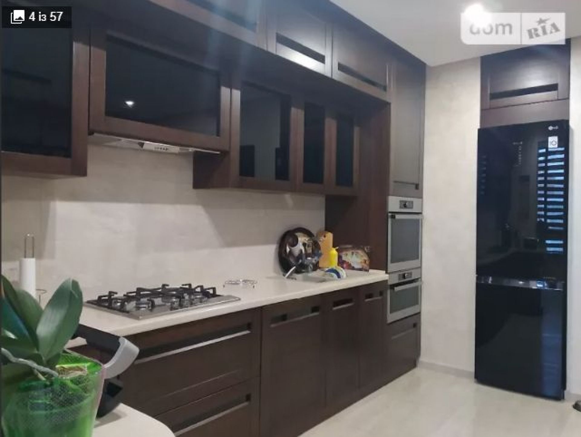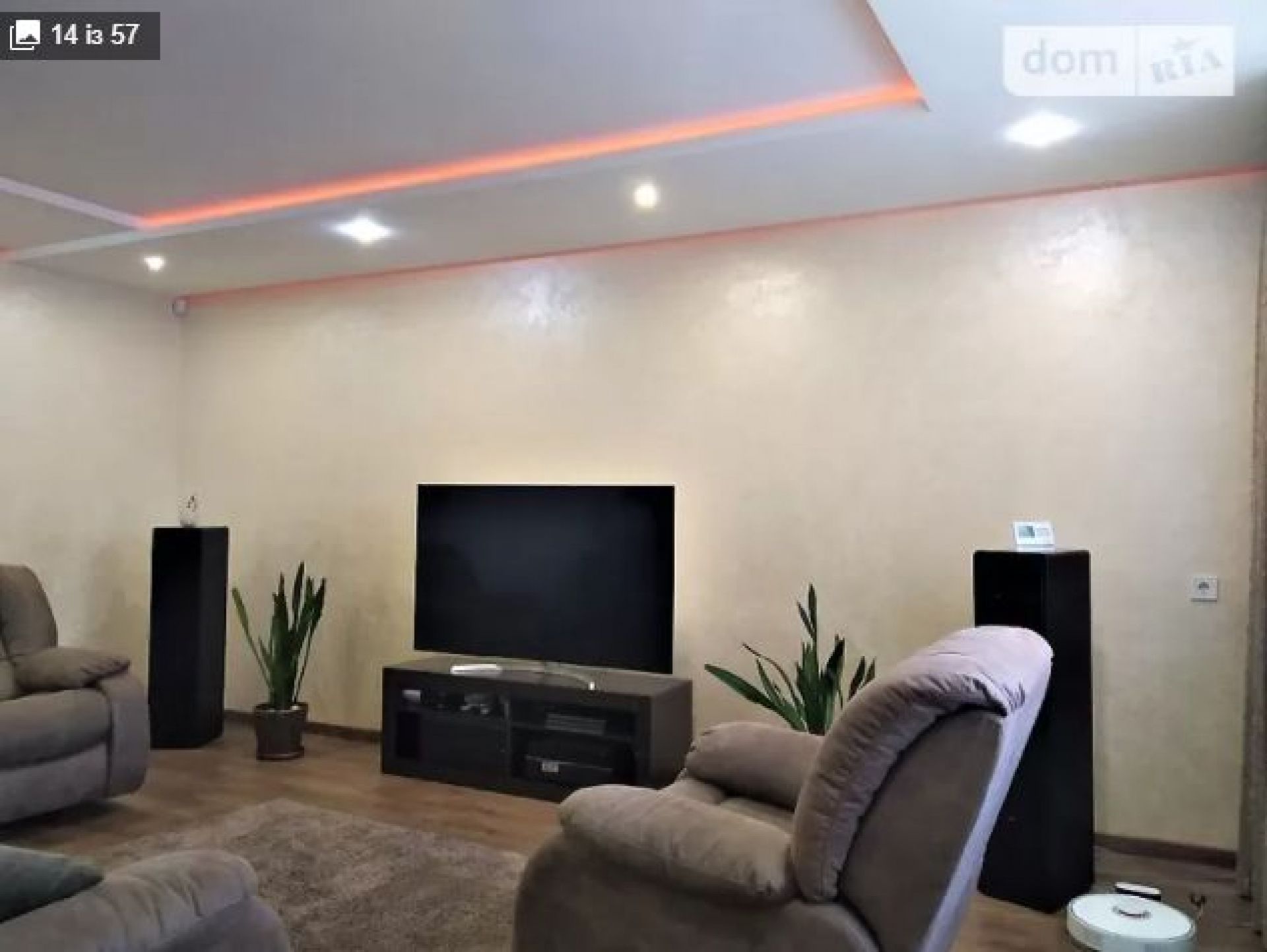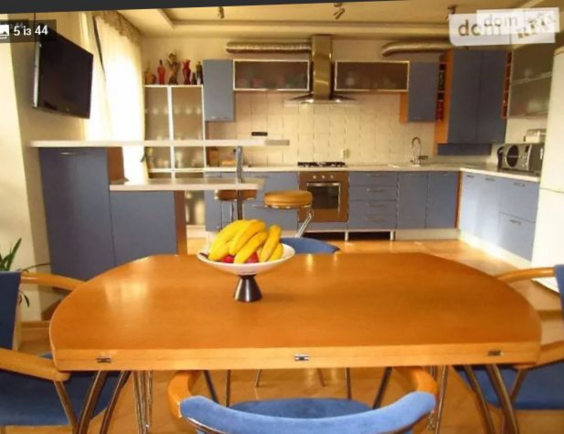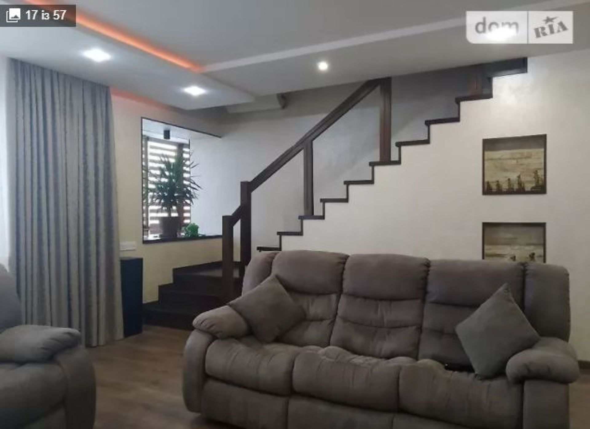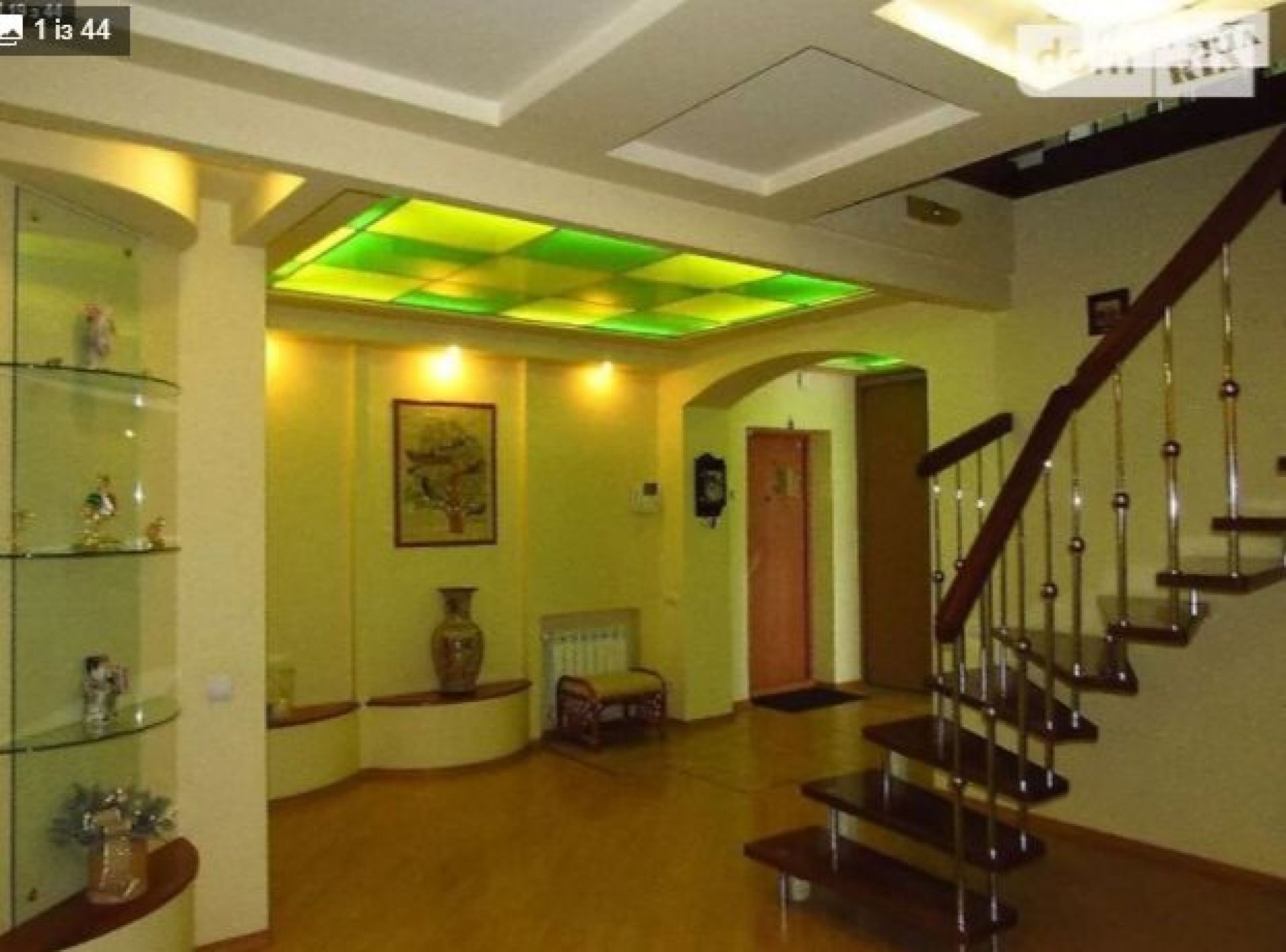 Квартира має не лише п’ять кімнат, але й три поверхи. Усі кімнати з ремонтом, плюс є власний закритий двір з альтанкою і сауною. Житло продається з меблями і технікою.
