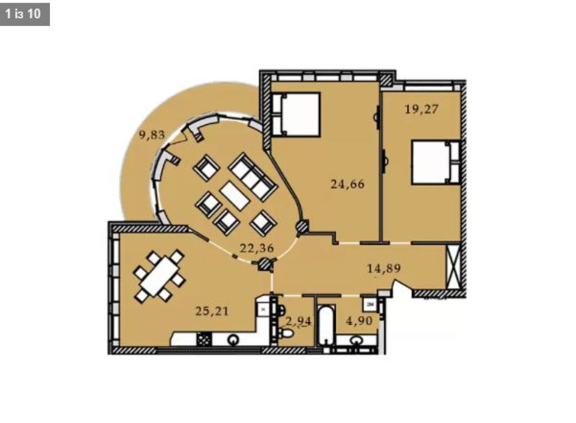 Квартира комфорт-класу у ЖК Park Tower. Житло пропонують придбати у чорновому варіанті. Пишуть, що місцерозташування — унікальне. Є закритий двір з охороною та відеоспостереженням. У вартість включено паркомісце в підземному паркінгу. У під’’їзді є вахтер.