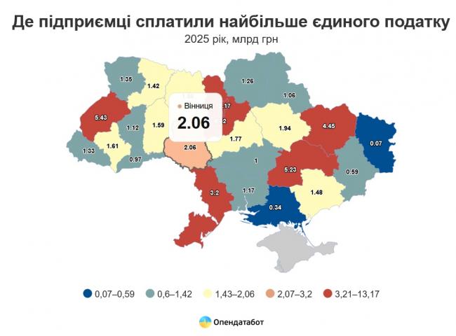 На Вінниччині бізнес торік сплатив 2,06 мільярда гривень єдиного податку, що свідчить про стабільну активність місцевих підприємців.