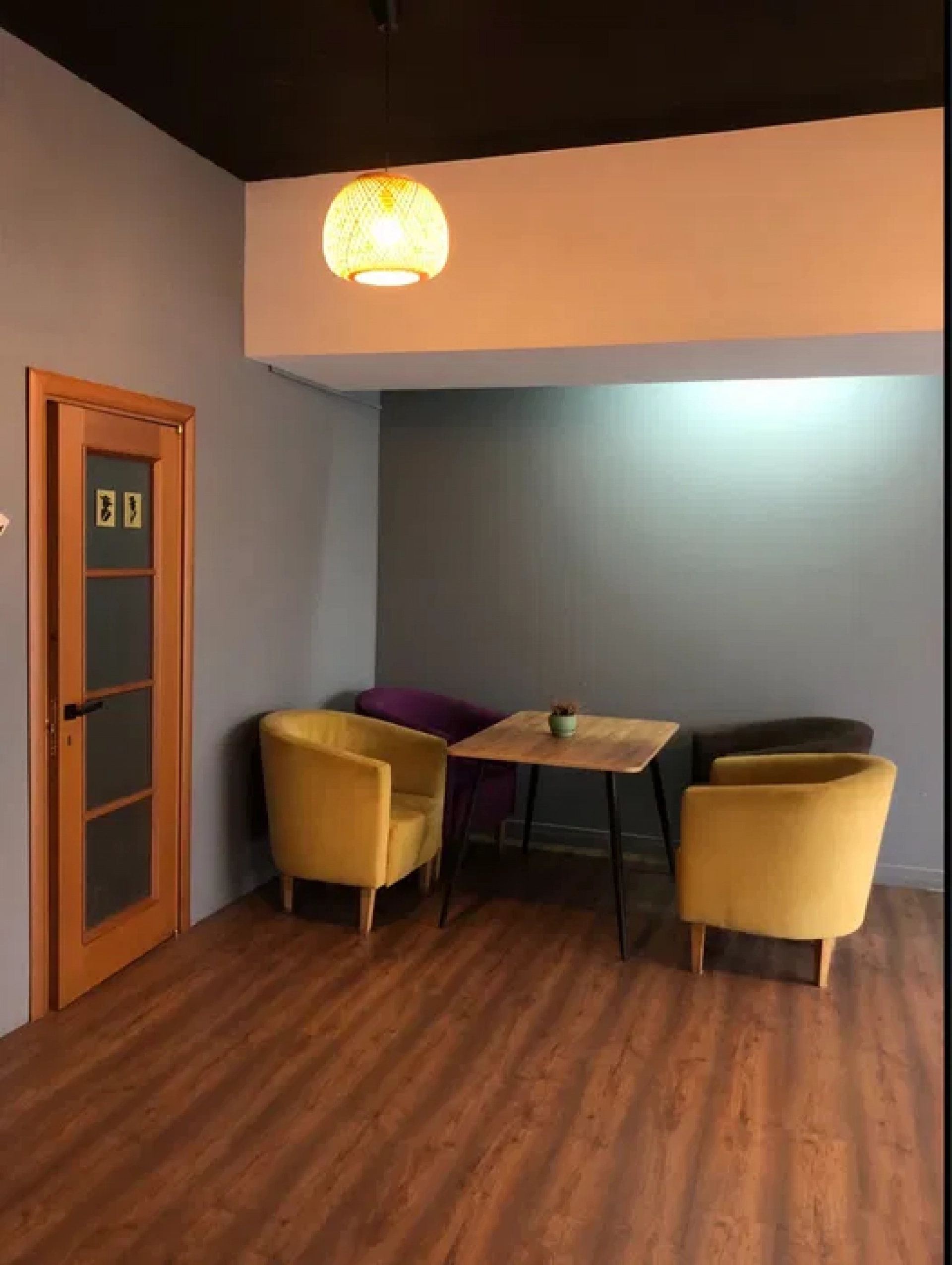 Приміщення знаходиться біля вежі, у самісінькому центрі Вінниці. Має дві кімнати, санвузол з душем, комору. З обладнання там масажний стіл, стілець, кокон для заколисування, обладнання для йоги, шафи, диван, столи тощо.