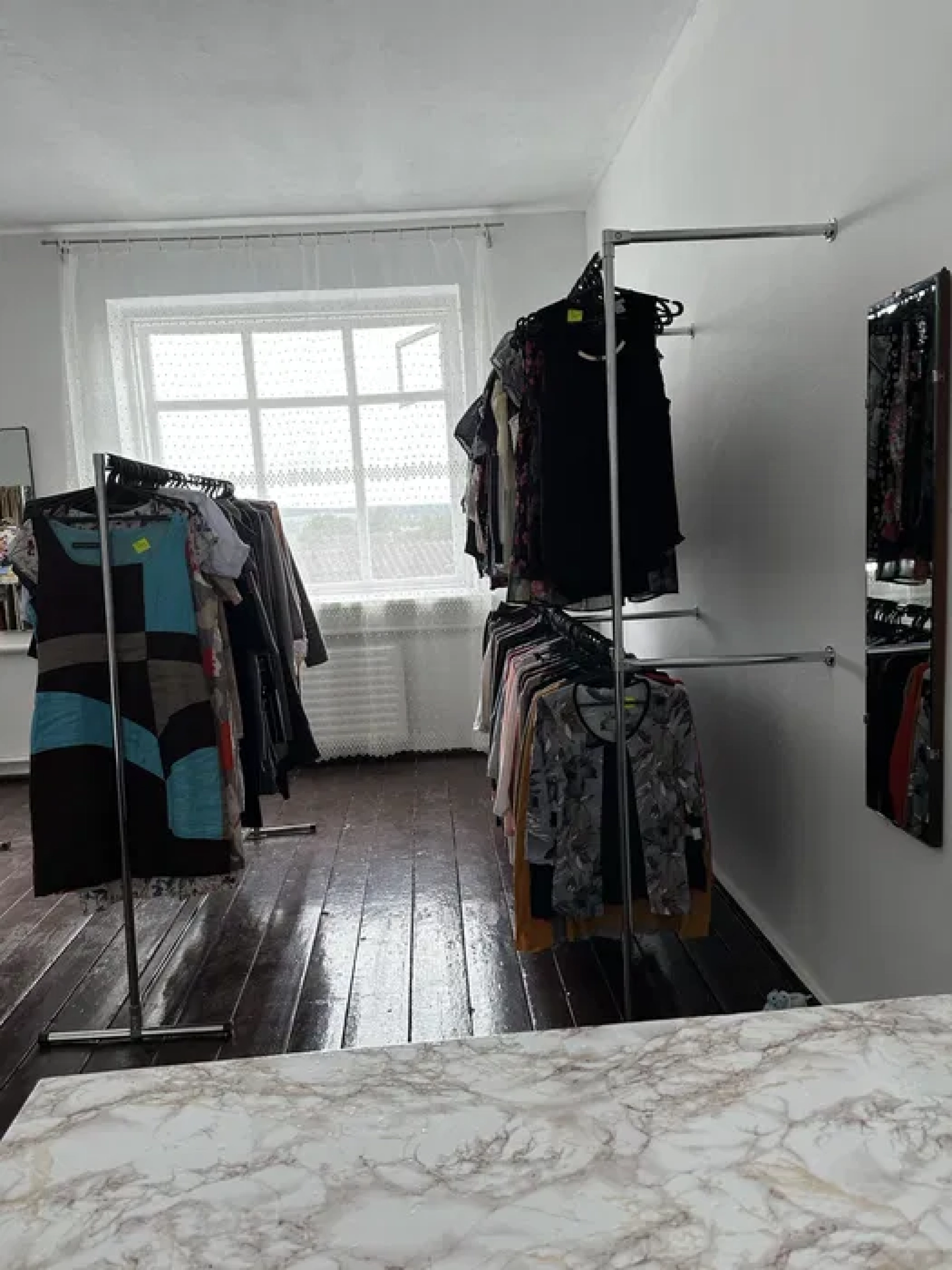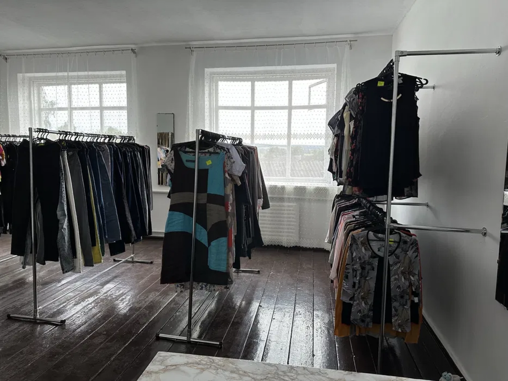 У вартість входить жіночий, чоловічий та чоловічий стоковий одяг та взуття. Як вказують продавці, одяг преміумкласу, без дефектів. З обладнання за вказану вартість ви купуєте приміряльну, настінні стелажі, вішаки, ваги тощо. Приміщення у вартість не входить, його потрібно шукати окремо. Продають через переїзд.