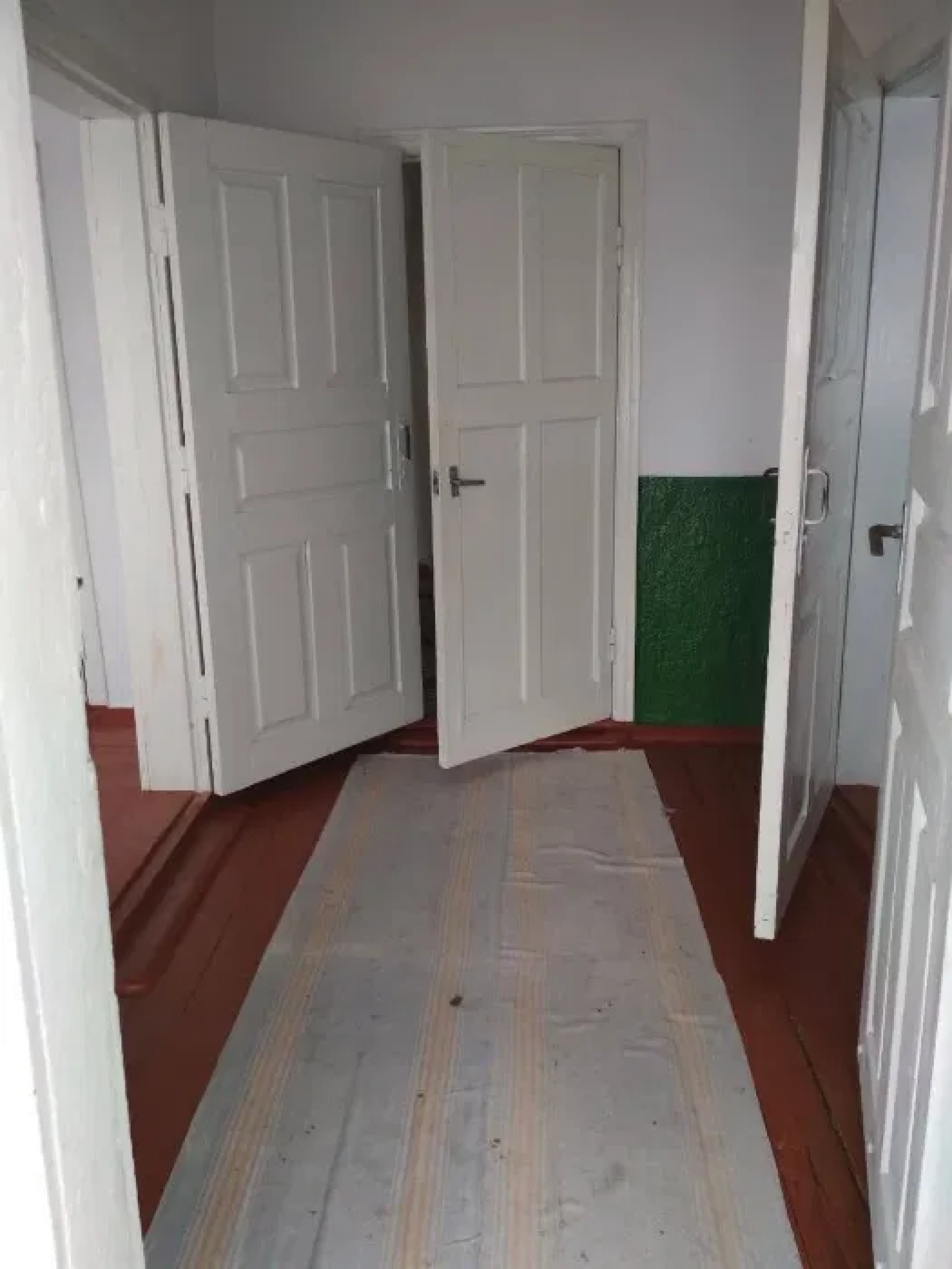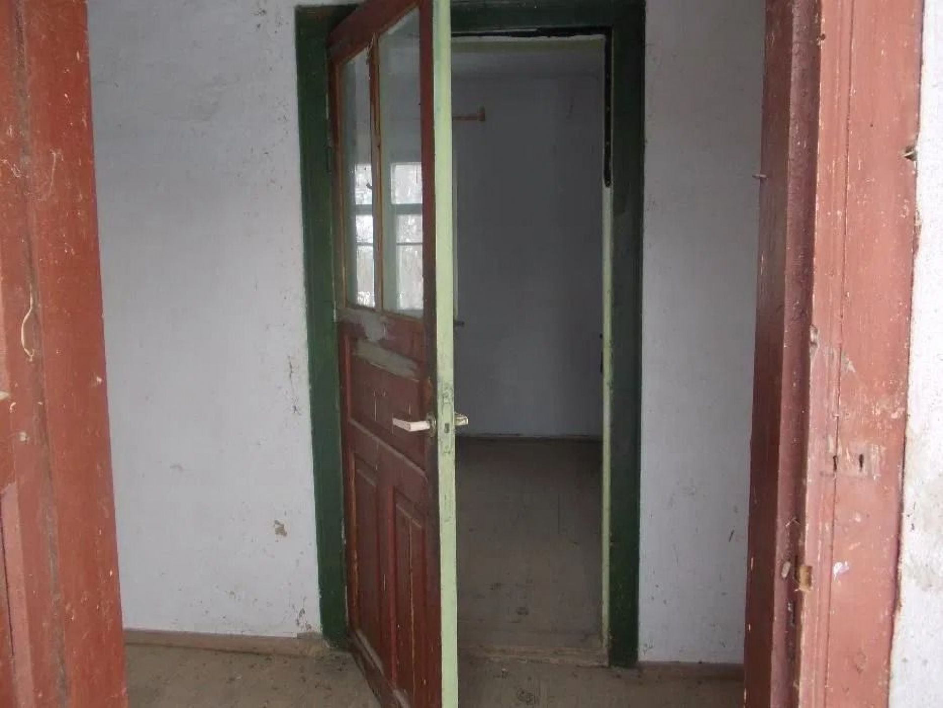 Ще один будинок з Барського району. Хатинка з верандою площею 50 кв.м., земельна ділянка 20 соток. У будинку три кімнати є меблі та піч. Двері та вікна пофарбовані в бірюзовий колір.