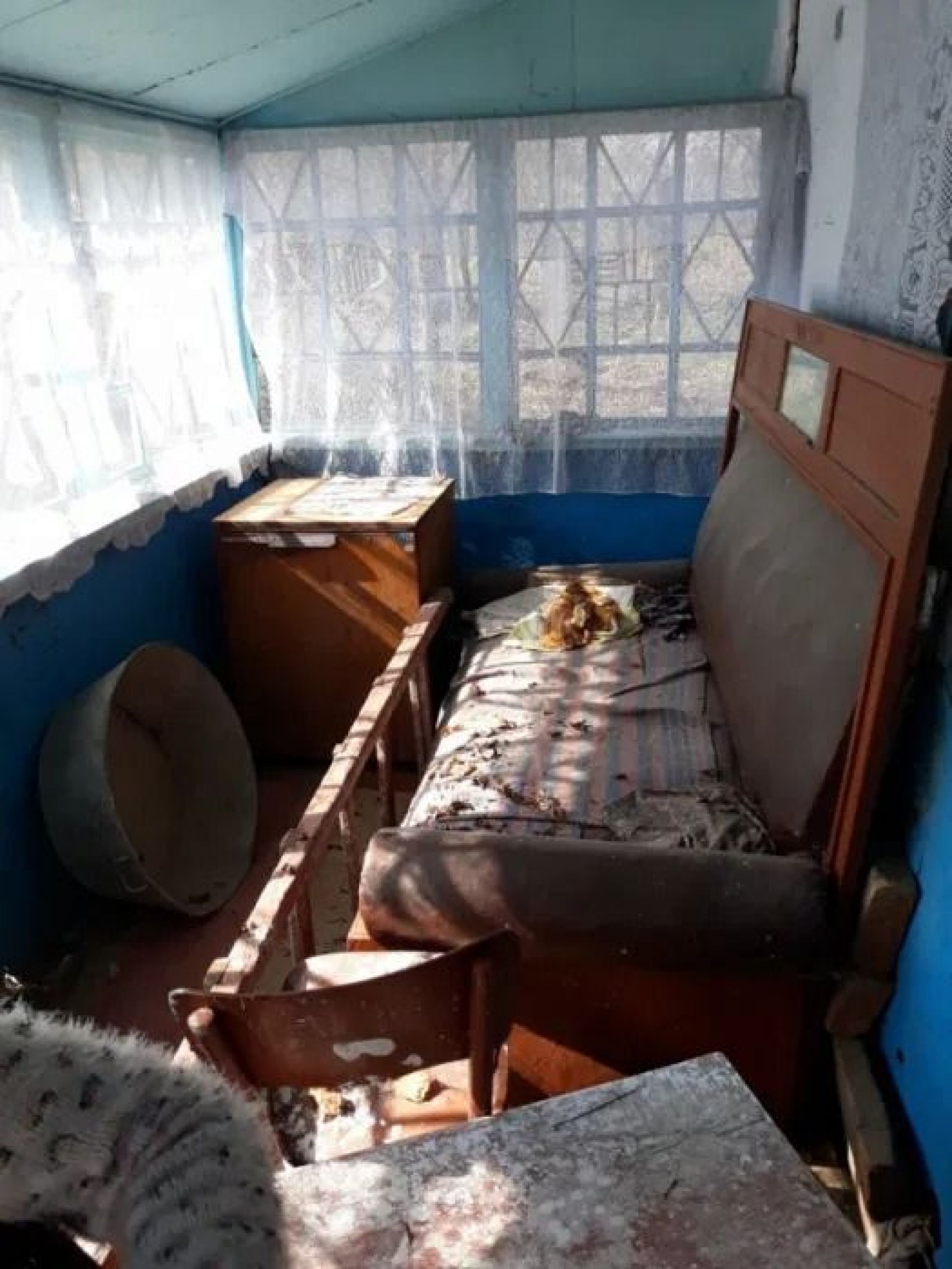 Хата площею 80 кв.м. має дві кімнати з грубою і довгу веранду на весь будинок. Загальна площа ділянки 36 соток. На ній є літня кухня, гараж, сарай та криниця. Груба обкладена плиткою, а на стіні в одній з кімнат є популярний колись килим з оленями.