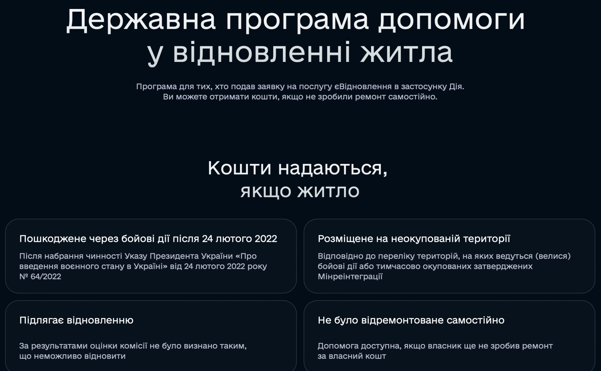 Для зручності у Міністерстві цифрової трансформації, створили окремий сайт з основними поясненнями. З цієї офіційної інформації, ми дізнаємося, що отримати кошти можна, якщо ваше житло: