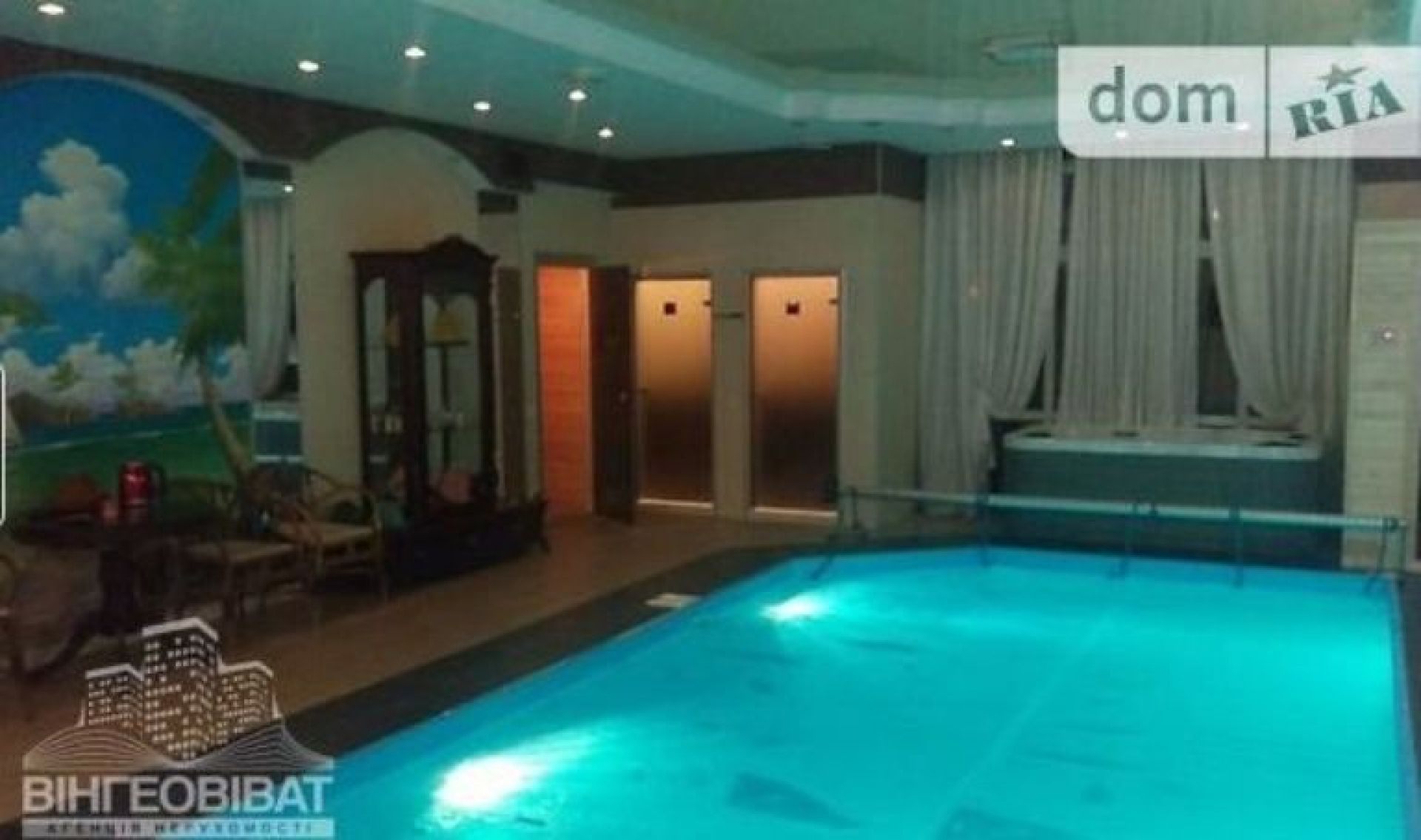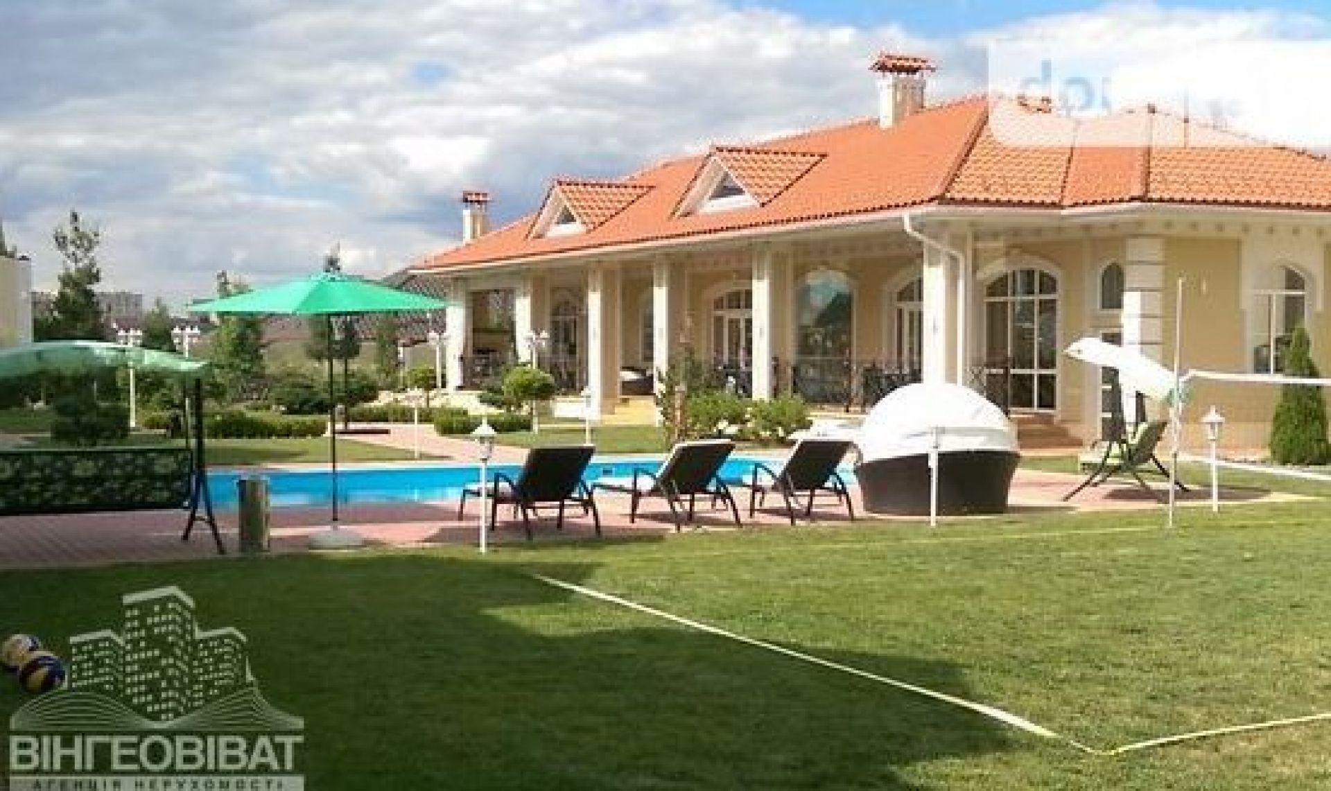 Будинок побудований у 80-х роках. Біля нього є великий садок, басейн, парковка, погреб, город та літній будиночок на 60м2. Останнього разу ремонт робили чотири роки тому. В описі йдеться, що територію можна використати для будівництва житлового комплексу. Фото інтер’єру будинку нажаль немає.