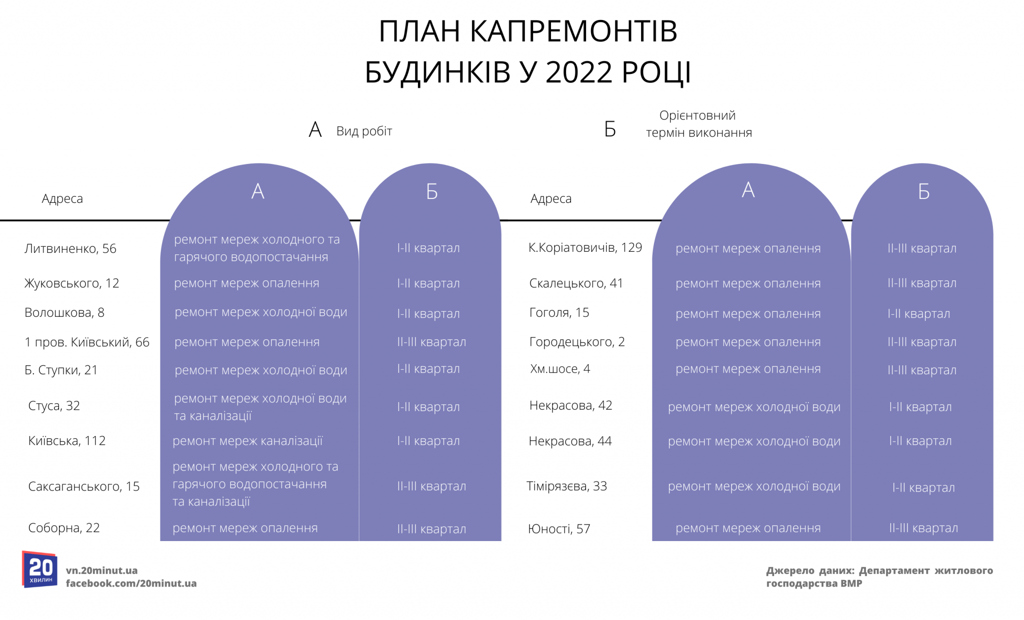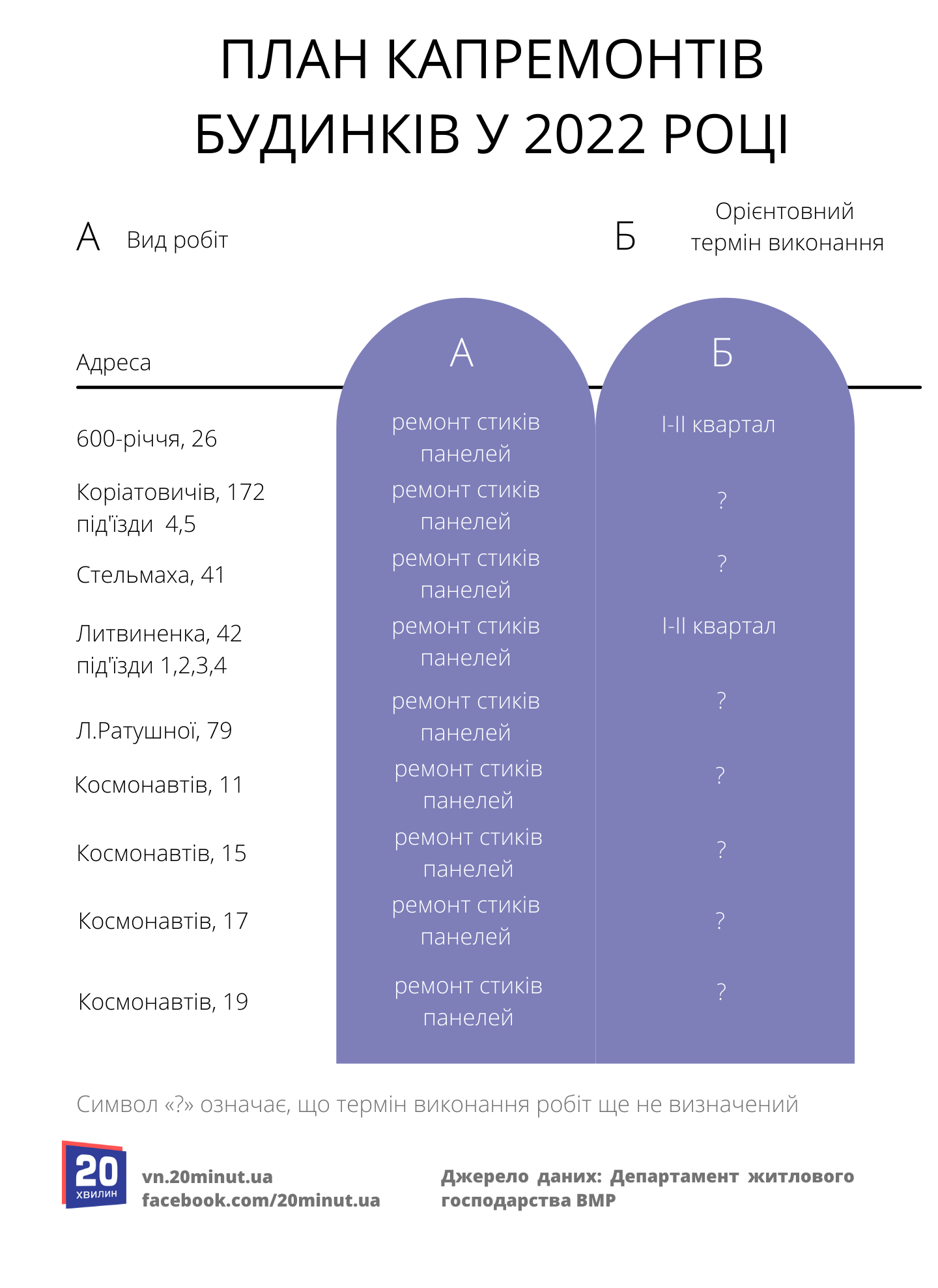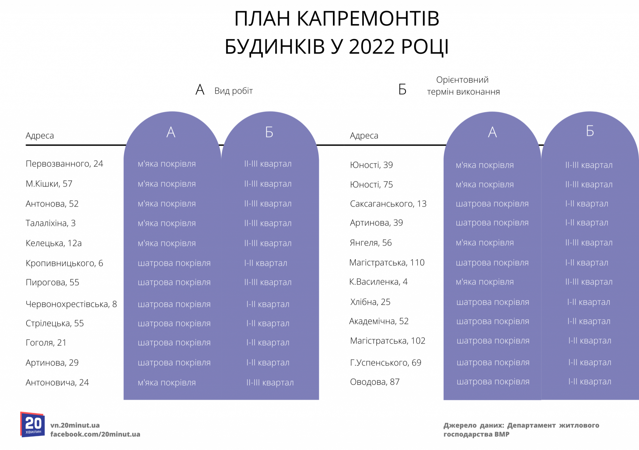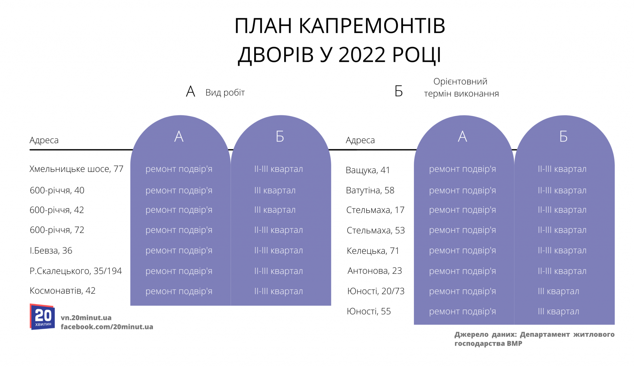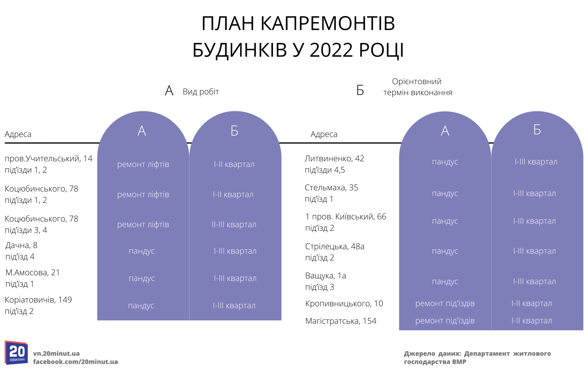 Дані про капремонти вінницьких будинків брали тут, а дані про ремонт дворів — ось тут.