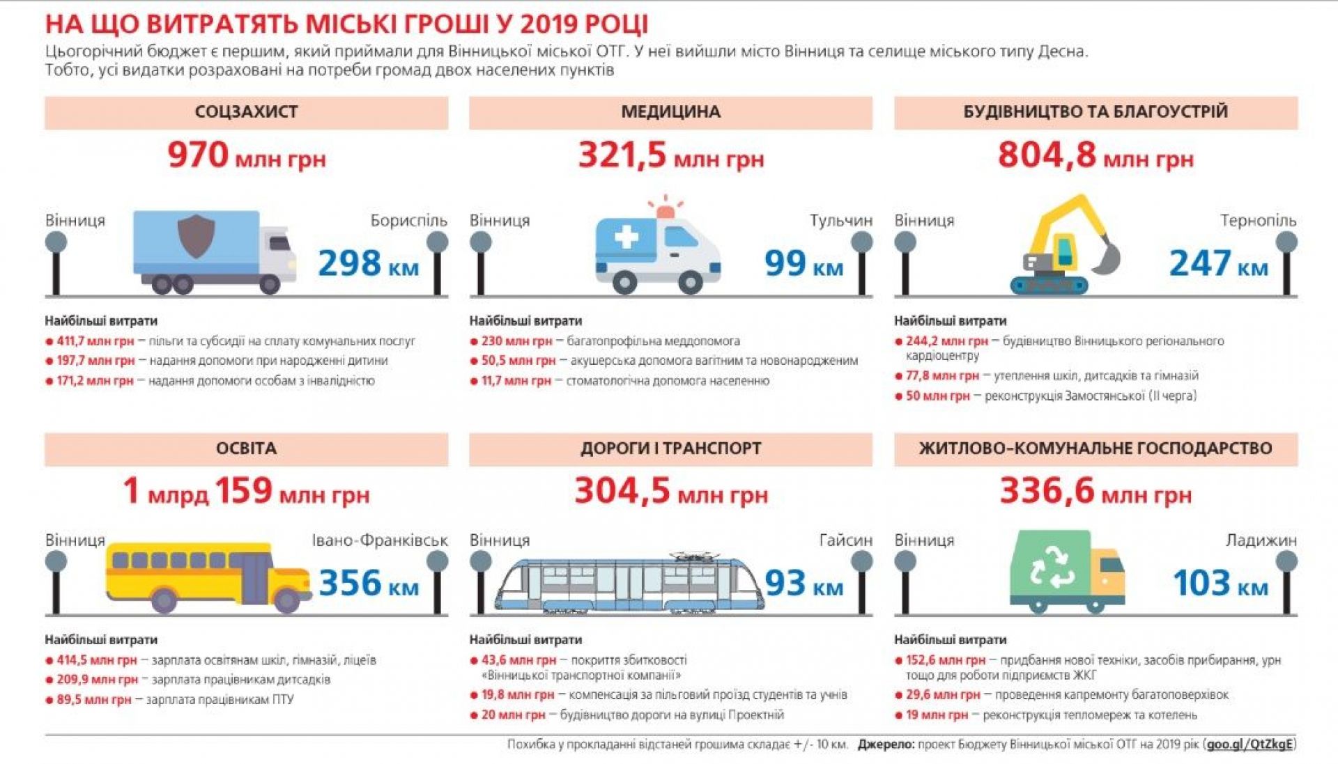 - Майже 70% бюджету Вінниці у 2019 році витратять на освіту, медицину та соцзахист