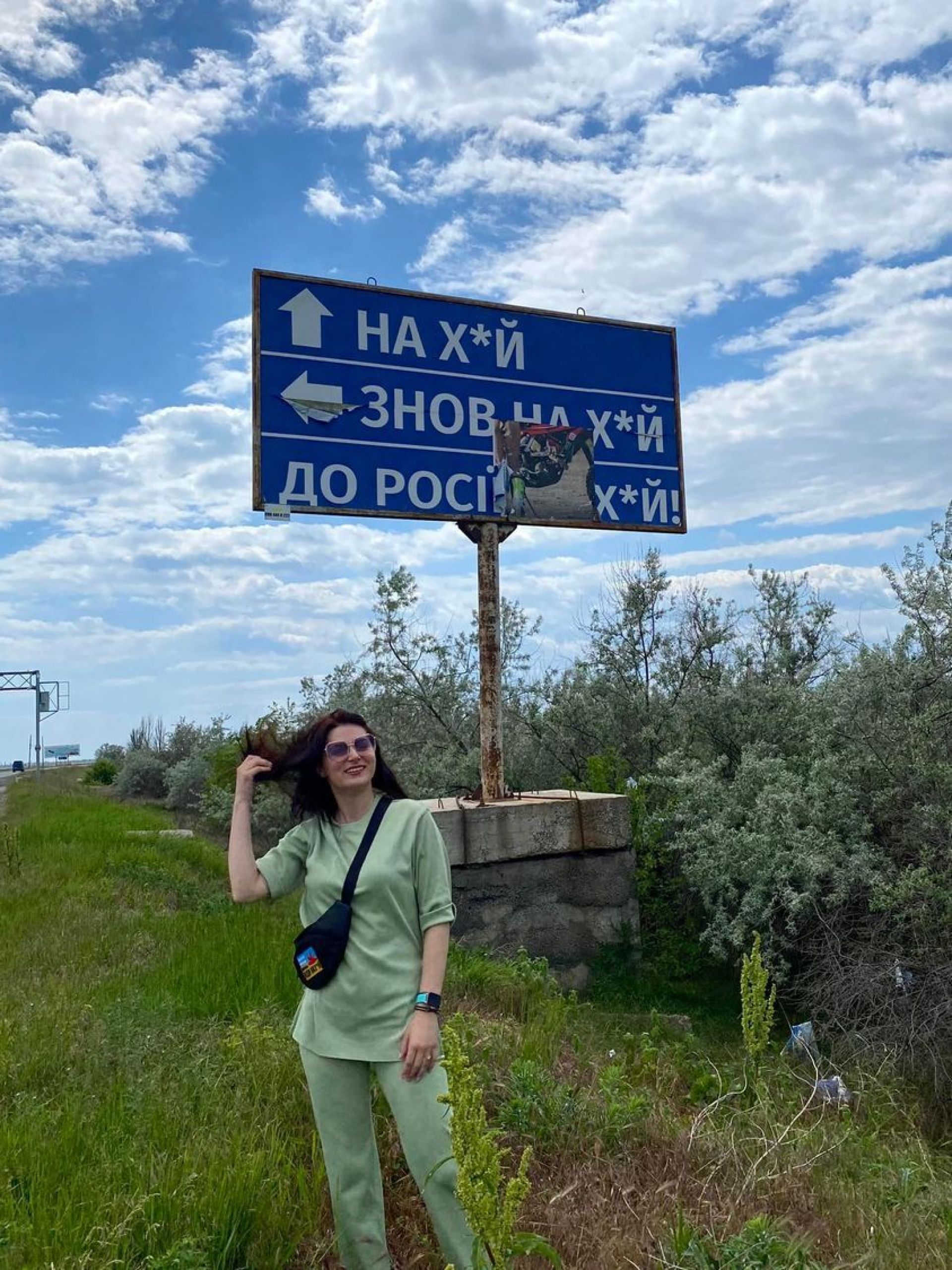 Біля цього знаку була і вінницька волонтерка Діана Подолянчук. Дівчина на сторінці у фейсбук поділилася світлинами: