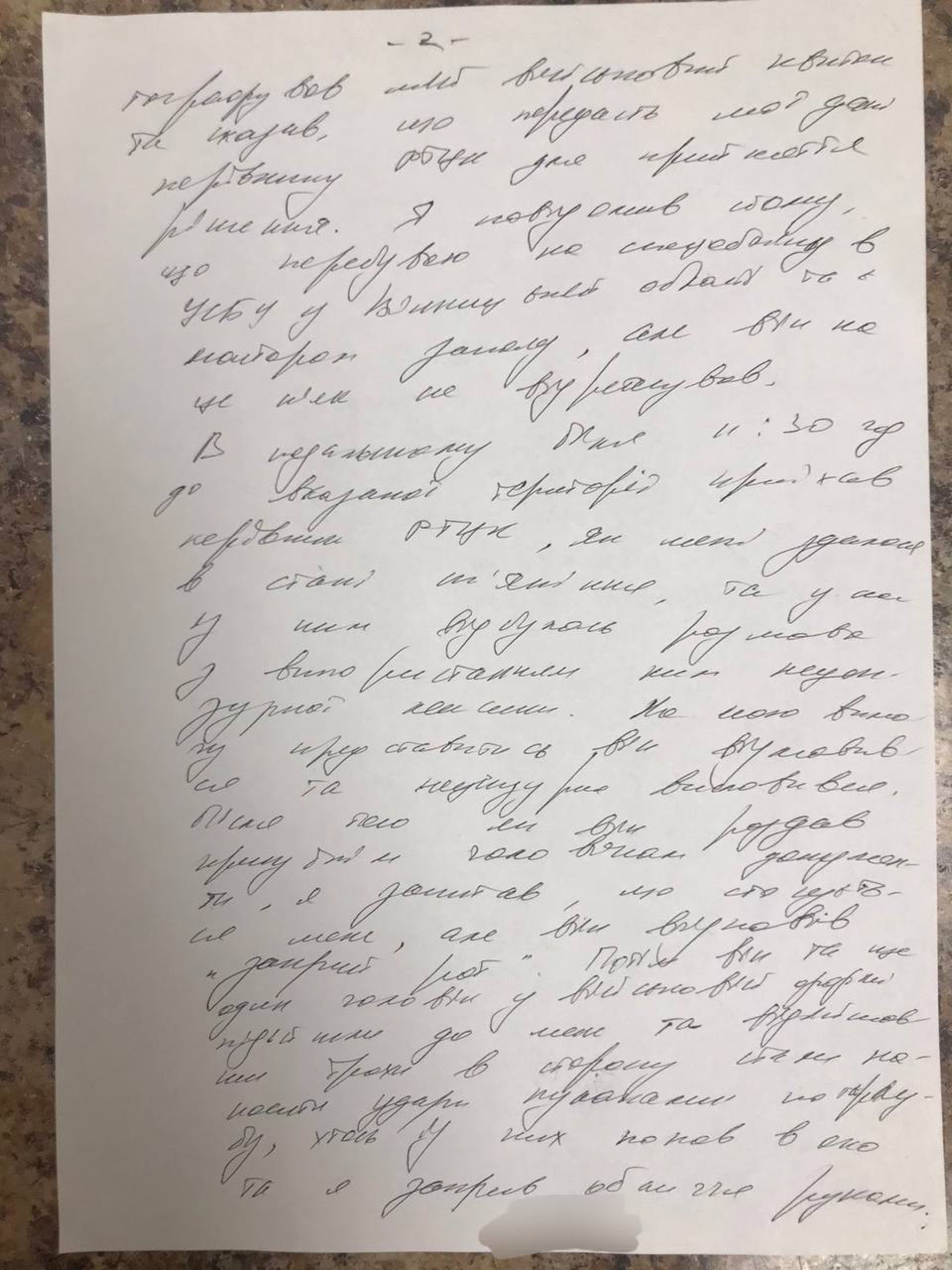 — Один б’є справа, другий — зліва. Удар за ударом. Той, що в спортивному, — видно, йому зручніше, без форми. А я відходжу — аж поки не впираюсь у стіну. Там, здається, була їдальня, харчоблок. Хтось штовхнув — я сів. Ну як сів… упав на стілець. І тоді почалося справжнє побиття: руками, ногами, по тілу, по голові. Я навіть не міг порахувати, скільки їх було, — пригадує потерпілий.