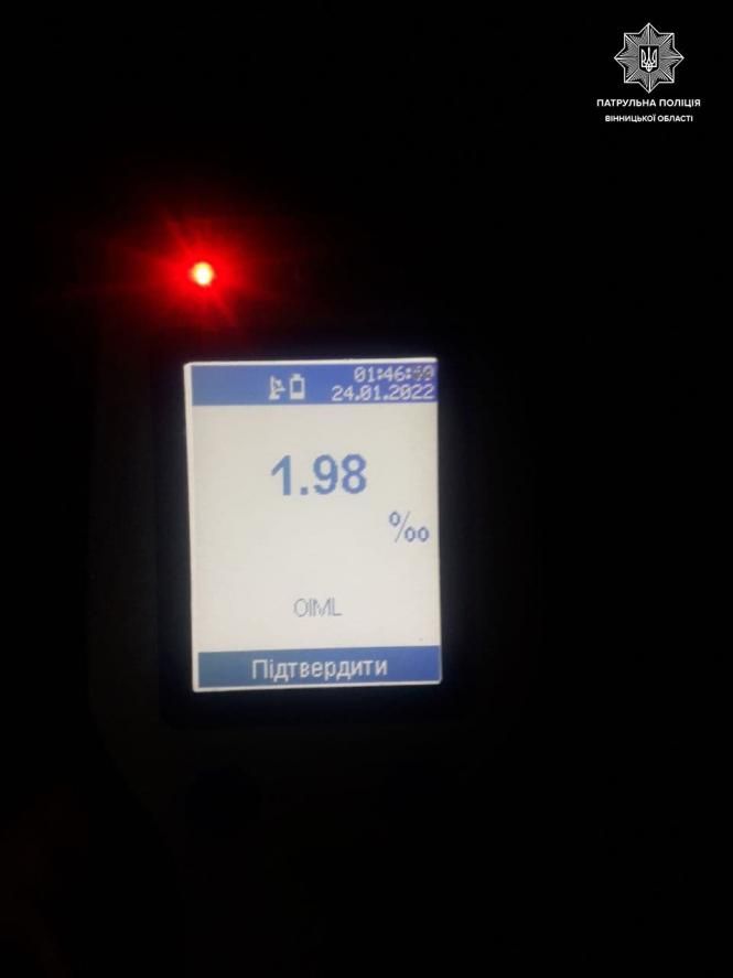 Зазначимо, що 1,98 проміле — це майже у 10 разів перевищення допустимої норми алкоголю в організмі.