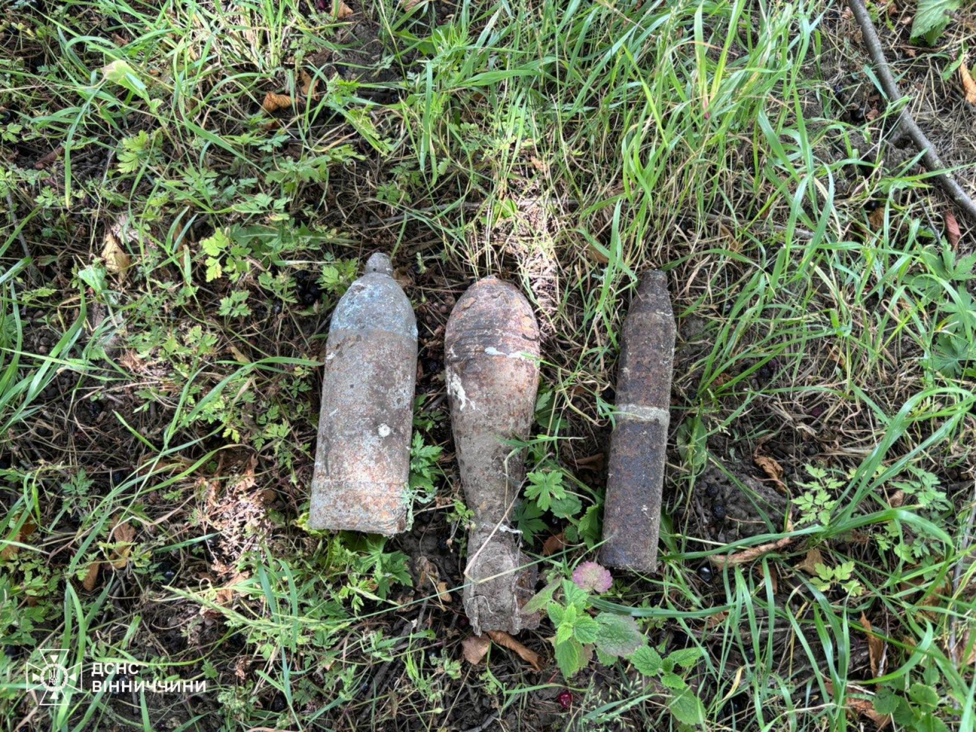 - Ще три небезпечні знахідки — мінометну міну та два артилерійські снаряди — виявили у селі Мирне Калинівської громади.