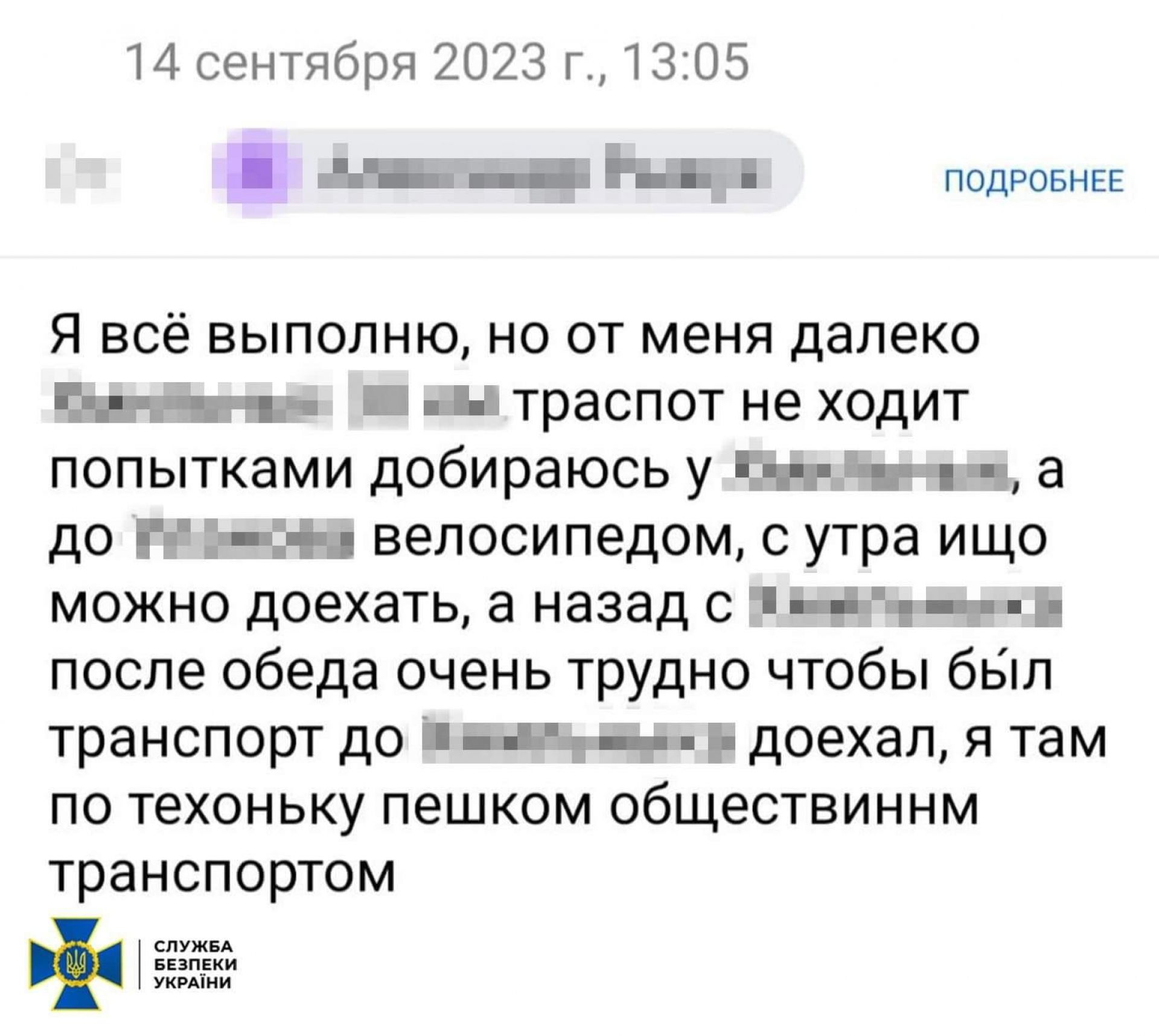 Також зловмисник намагався визначити розташування ключових електропідстанцій регіону та отримати інформацію про їхній технічний стан. Одержані розвіддані він мав передати своєму «куратору» з фсб через анонімну поштову скриньку. «Звіт» передбачав точні координати та фото українських об’єктів з прив’язкою до місцевості й текстовими роз’ясненнями.
